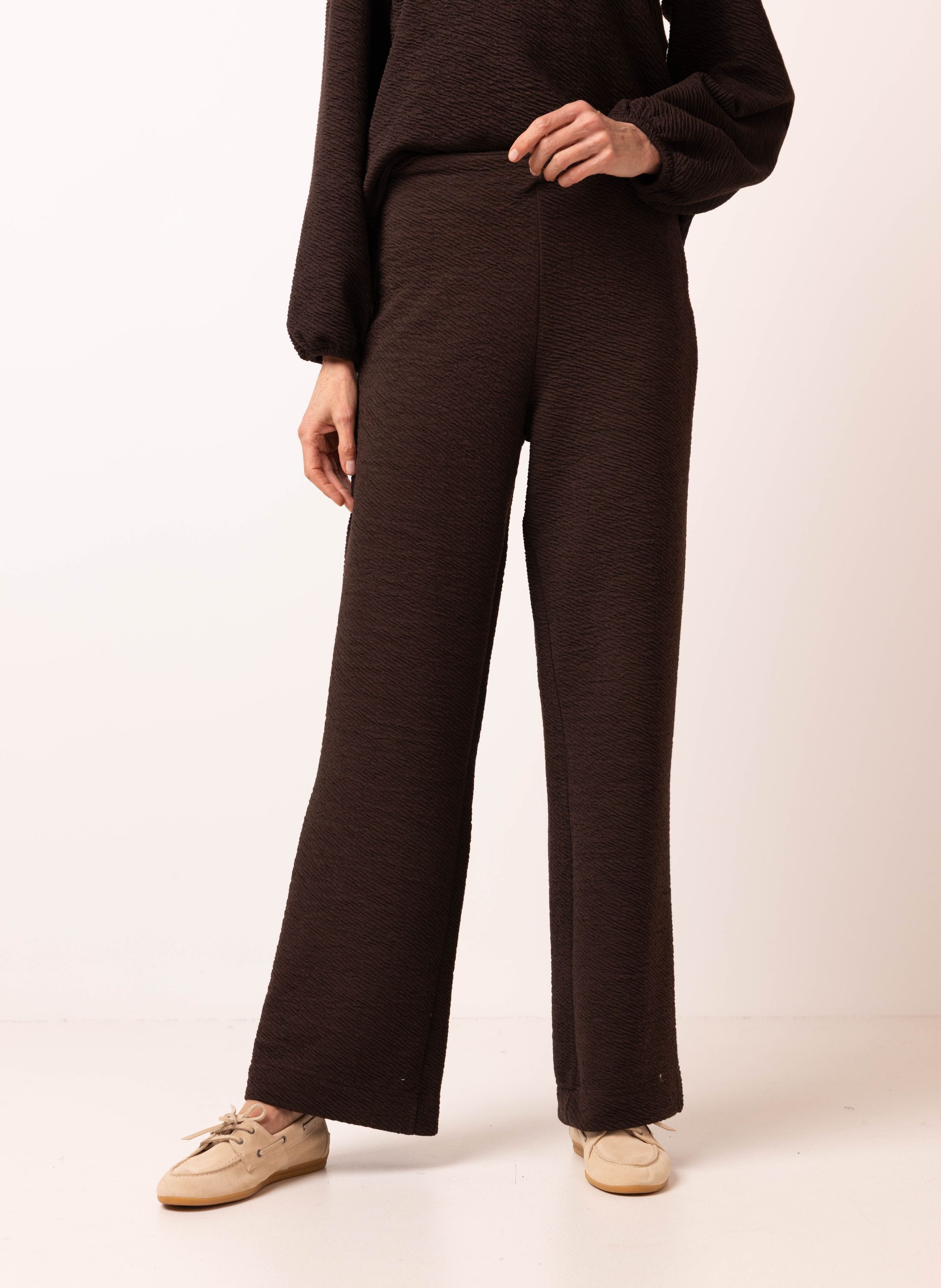 Deze high waist straight fit broek met elastische tailleband heeft een comfortabele pasvorm.
