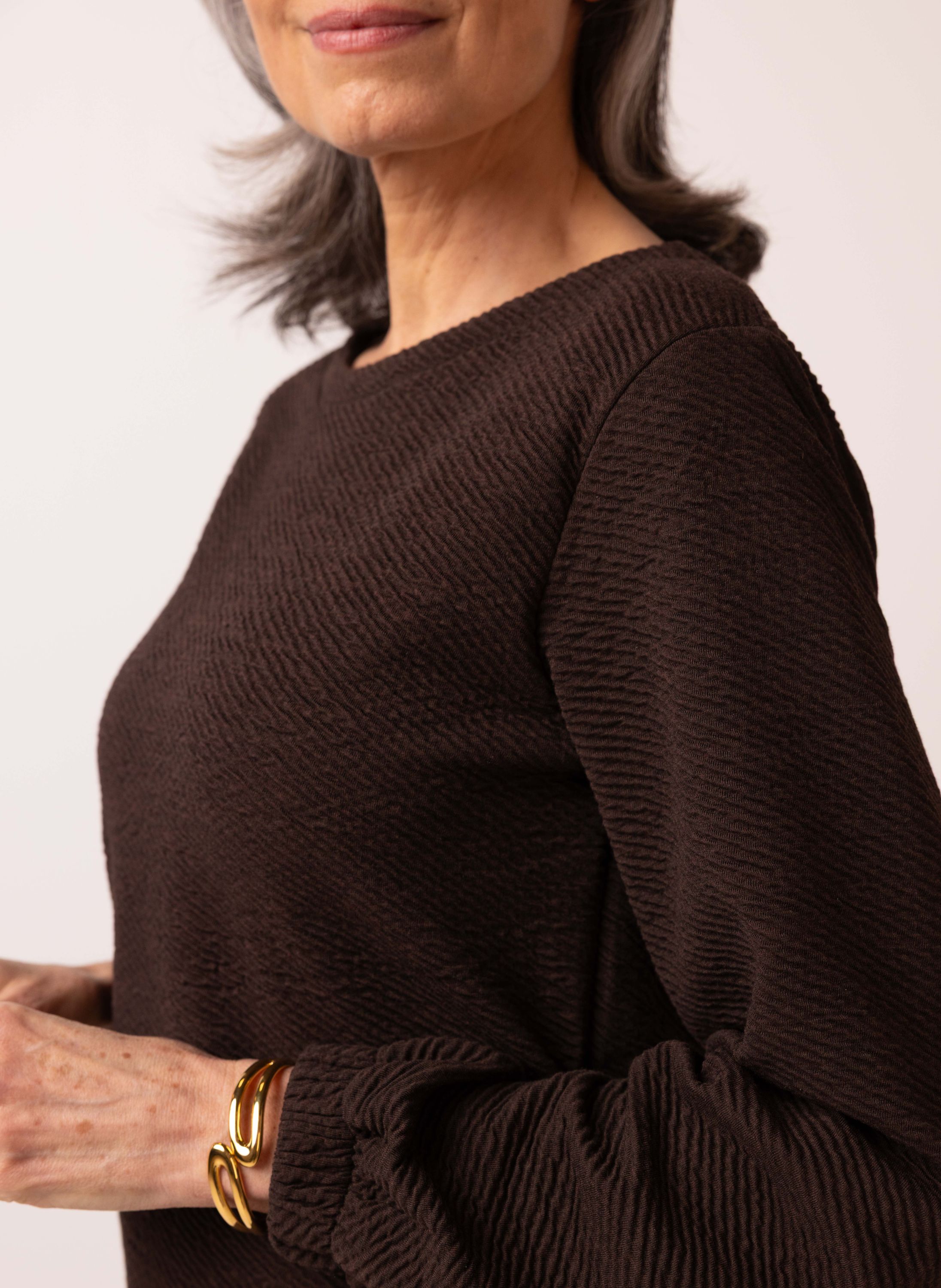 Deze sweater met ronde hals en halflange mouwen is een comfortabel item voor elk seizoen.