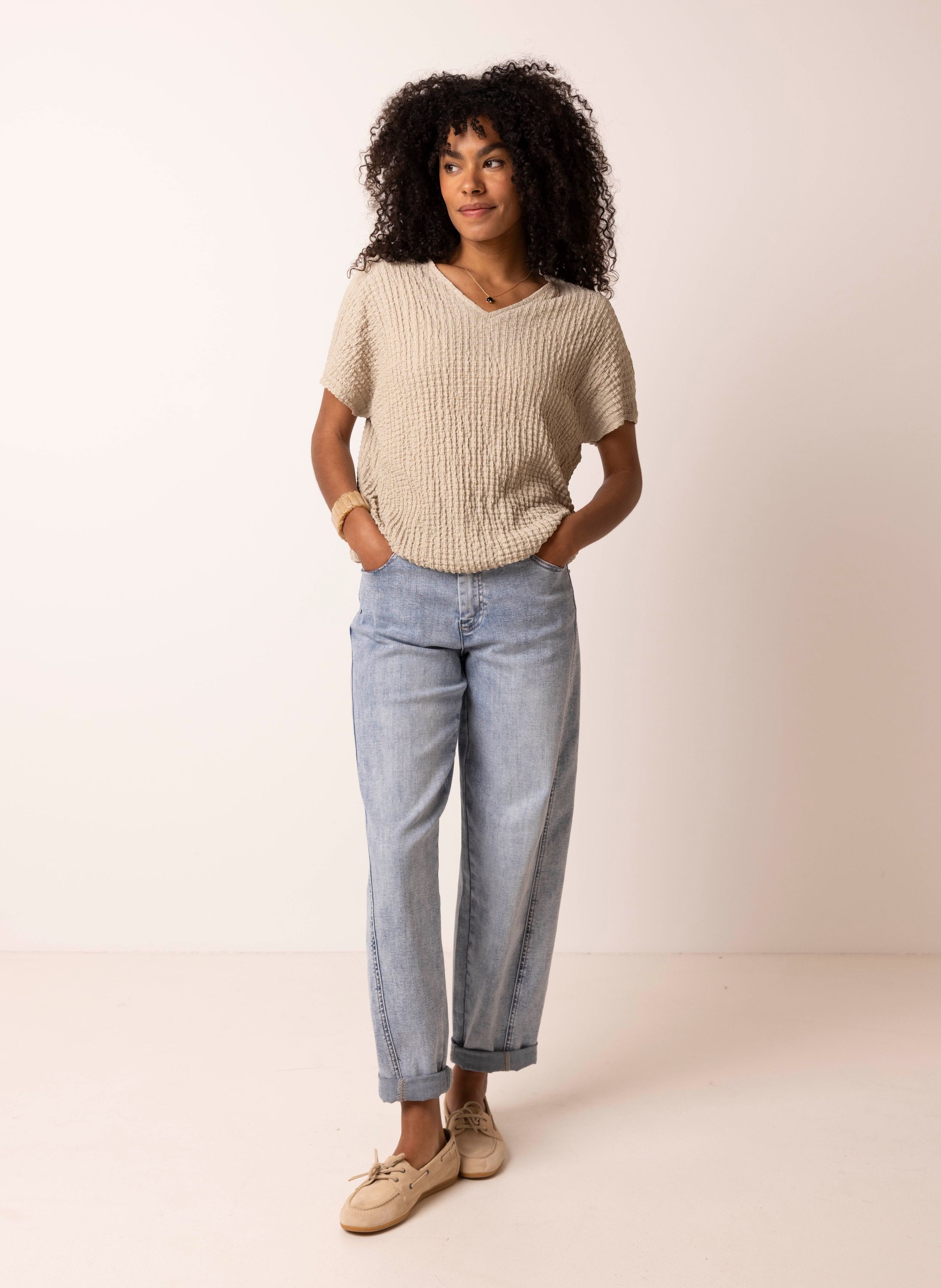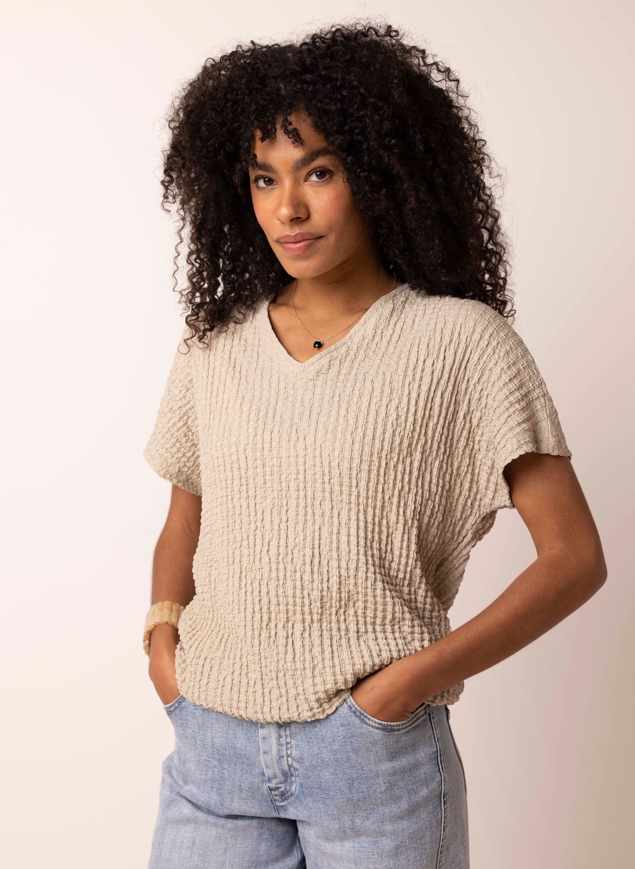 Champagnekleurig shirt met structuur