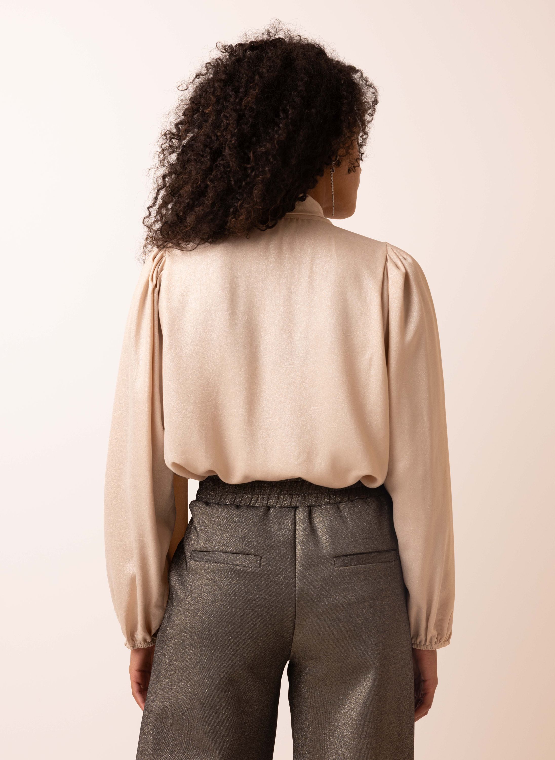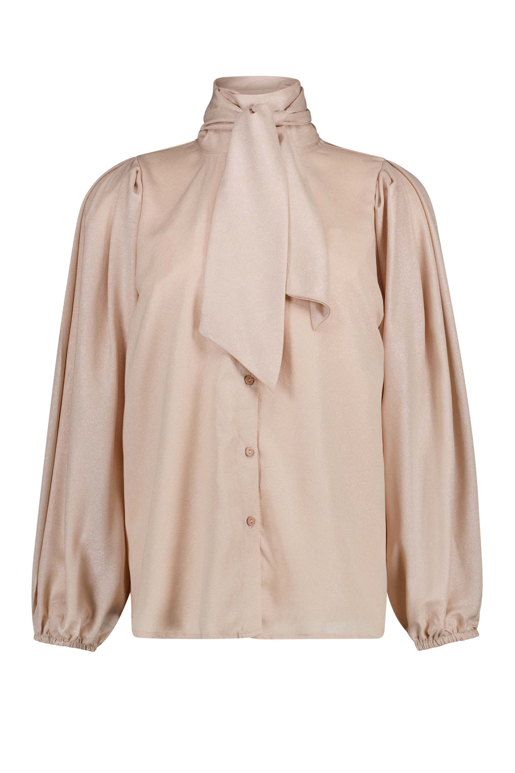 Champagnekleurige blouse met strik