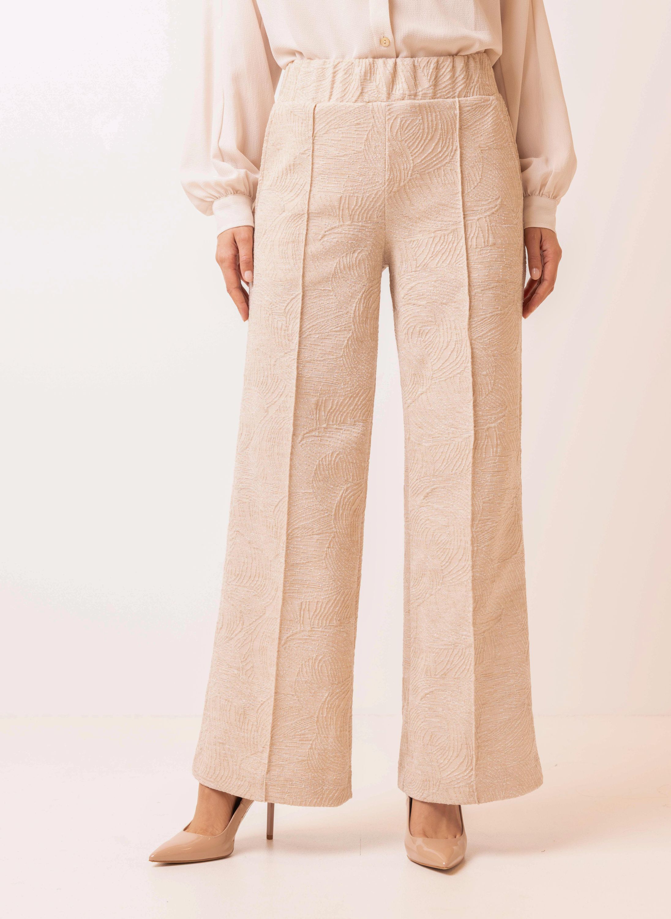 Deze high waist straight fit broek met elastische tailleband, steekzakken en een naad op de pijpen heeft een flatterende pasvorm.
