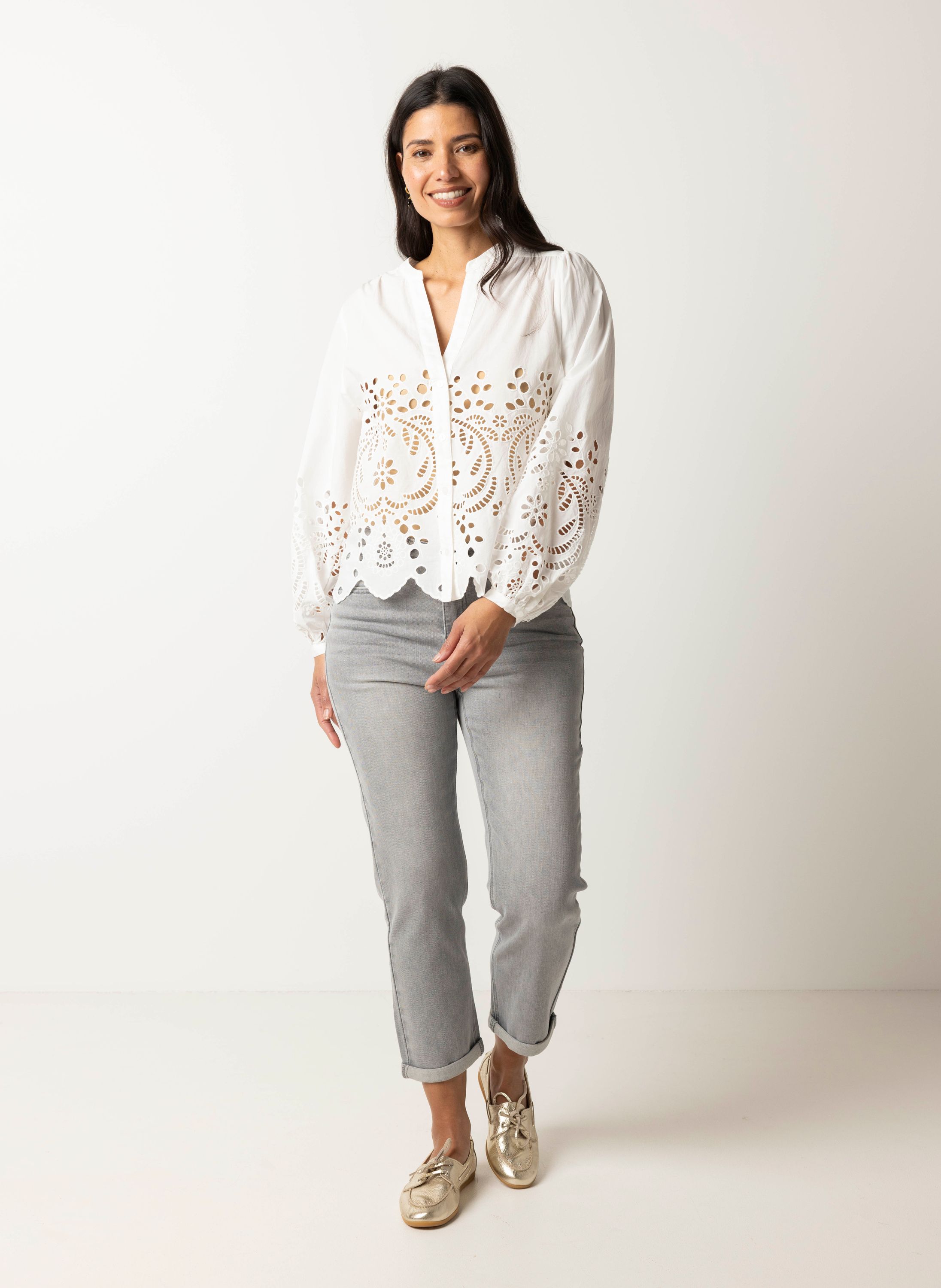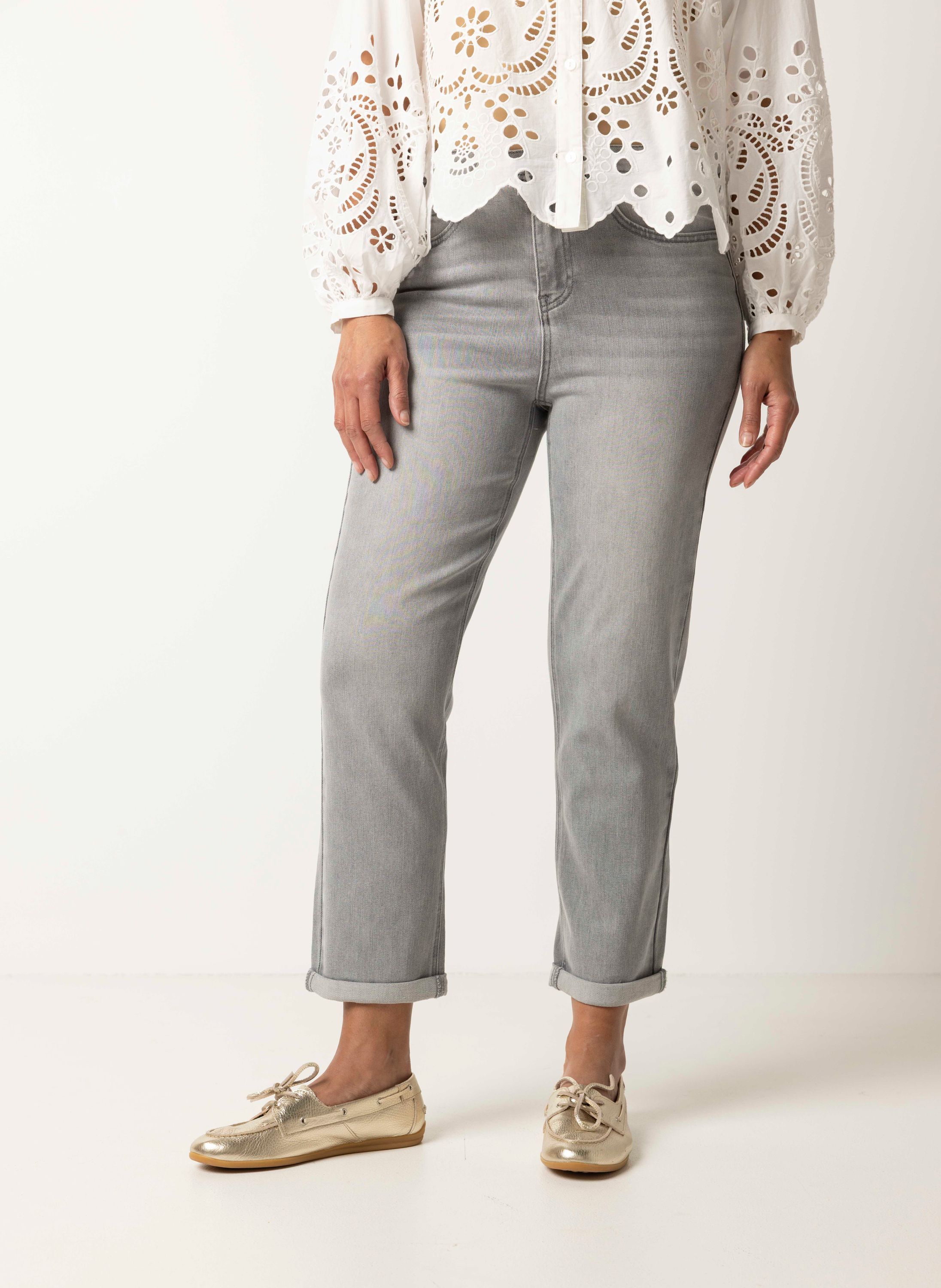 Deze high waist 5-pocket mom fit jeans heeft een rits- en knoopsluiting en een comfortabele pasvorm.