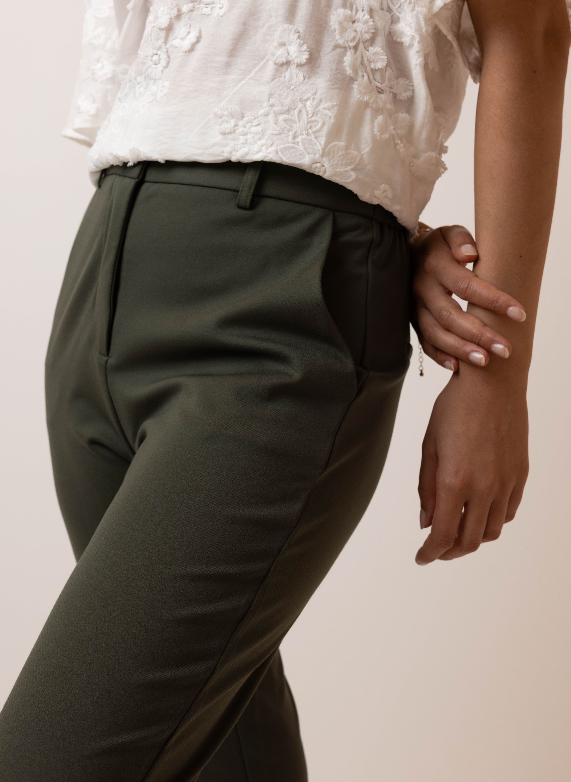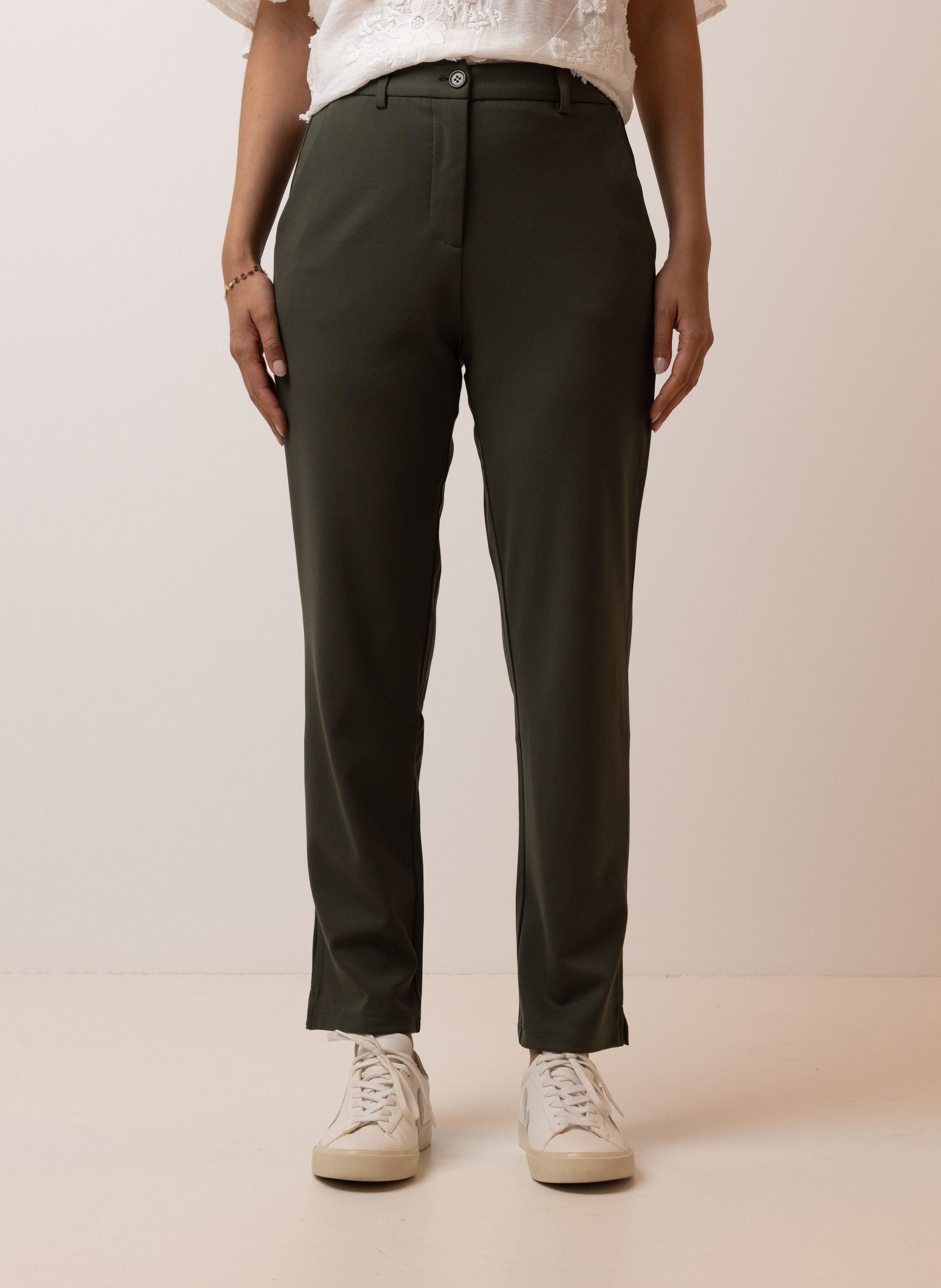 Deze high waist skinny fit broek heeft een rits- en knoopsluiting, elastische tailleband, steekzakken en paspelzakken. De broek bevat veel stretch en is ideaal voor je dagelijkse outfit.