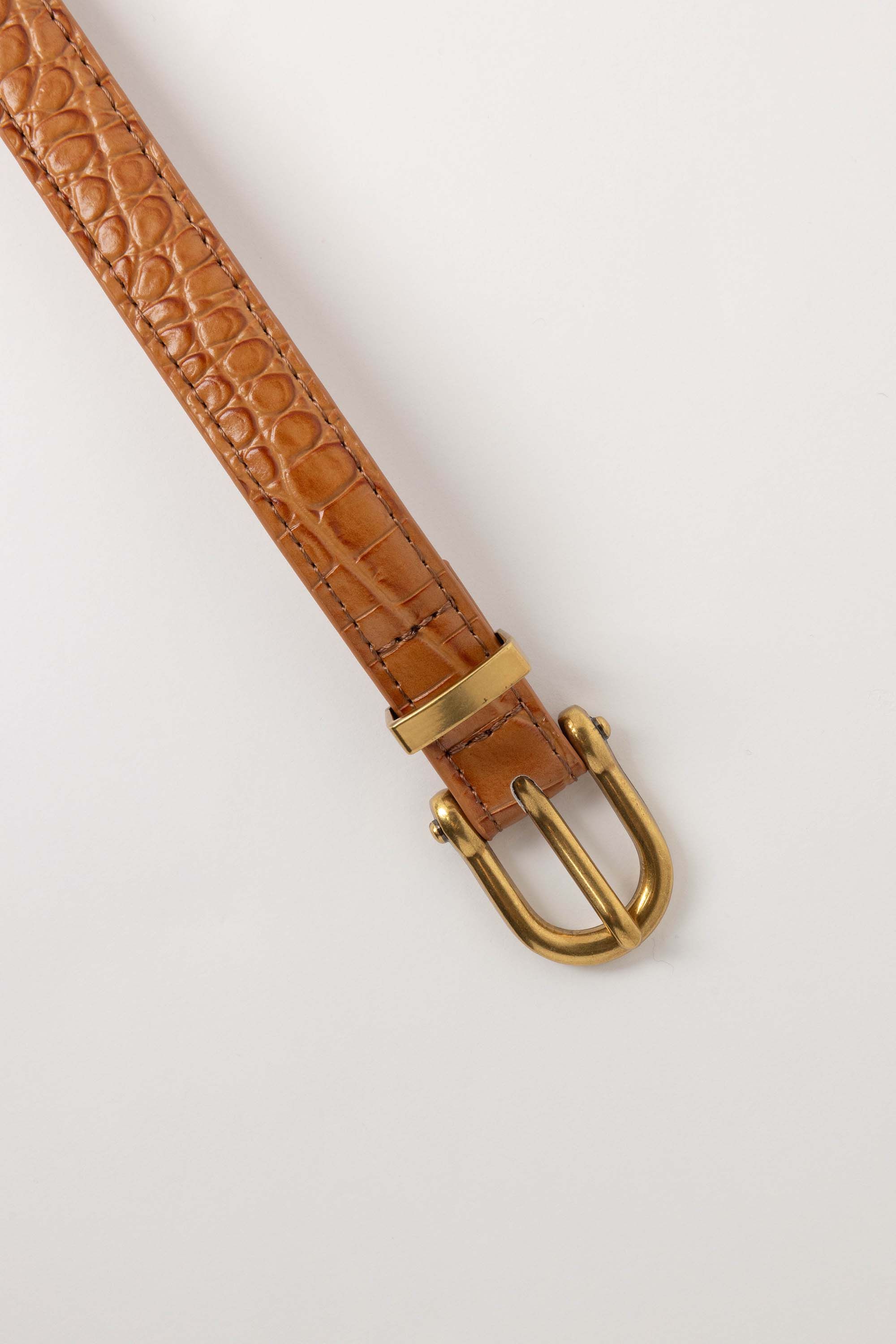 Deze riem met goudkleurige gesp is een tijdloze accessoire. Afmeting: S: 95 cm, M: 105 cm, L: 115 cm, XL: 125 cm.