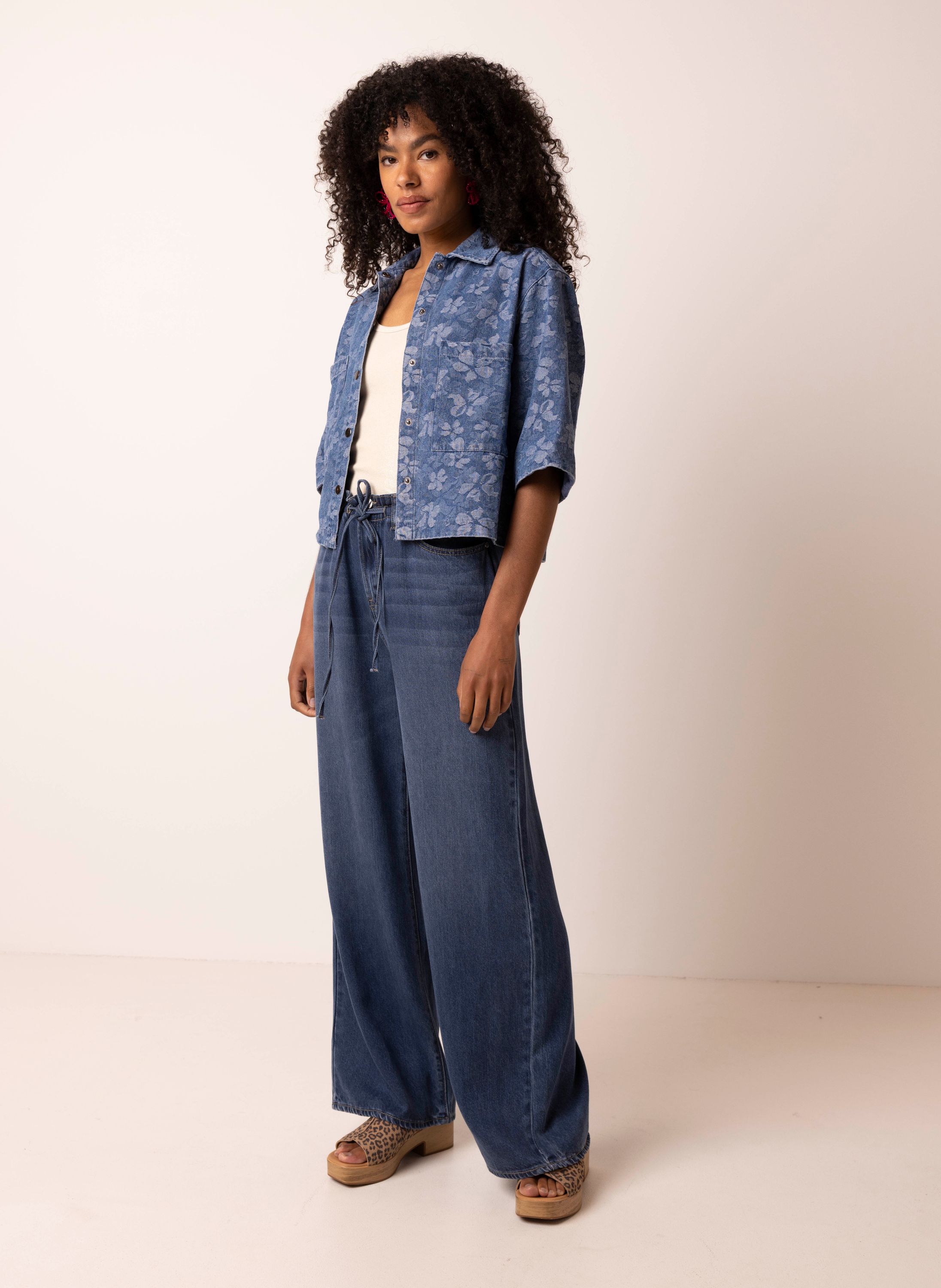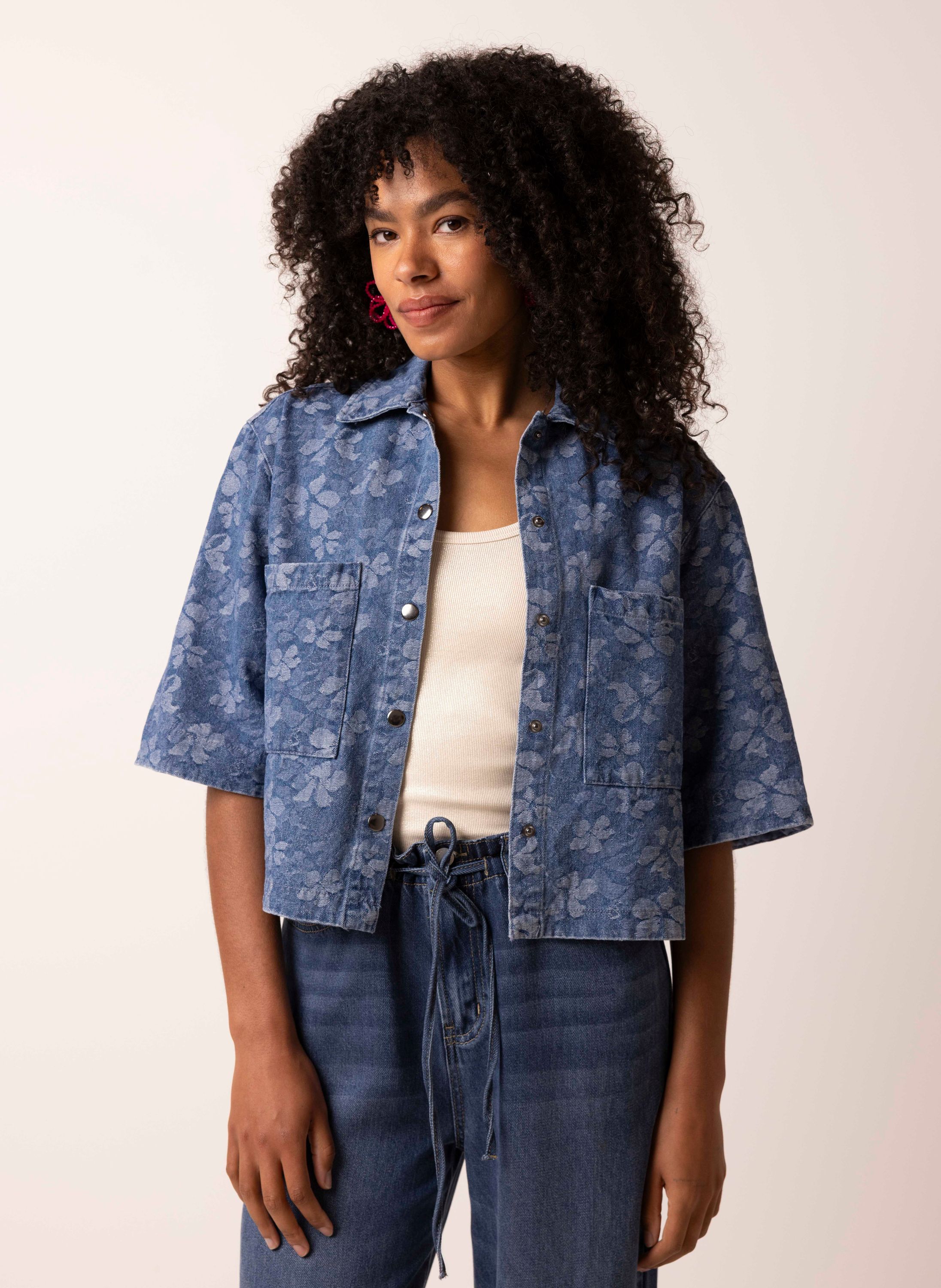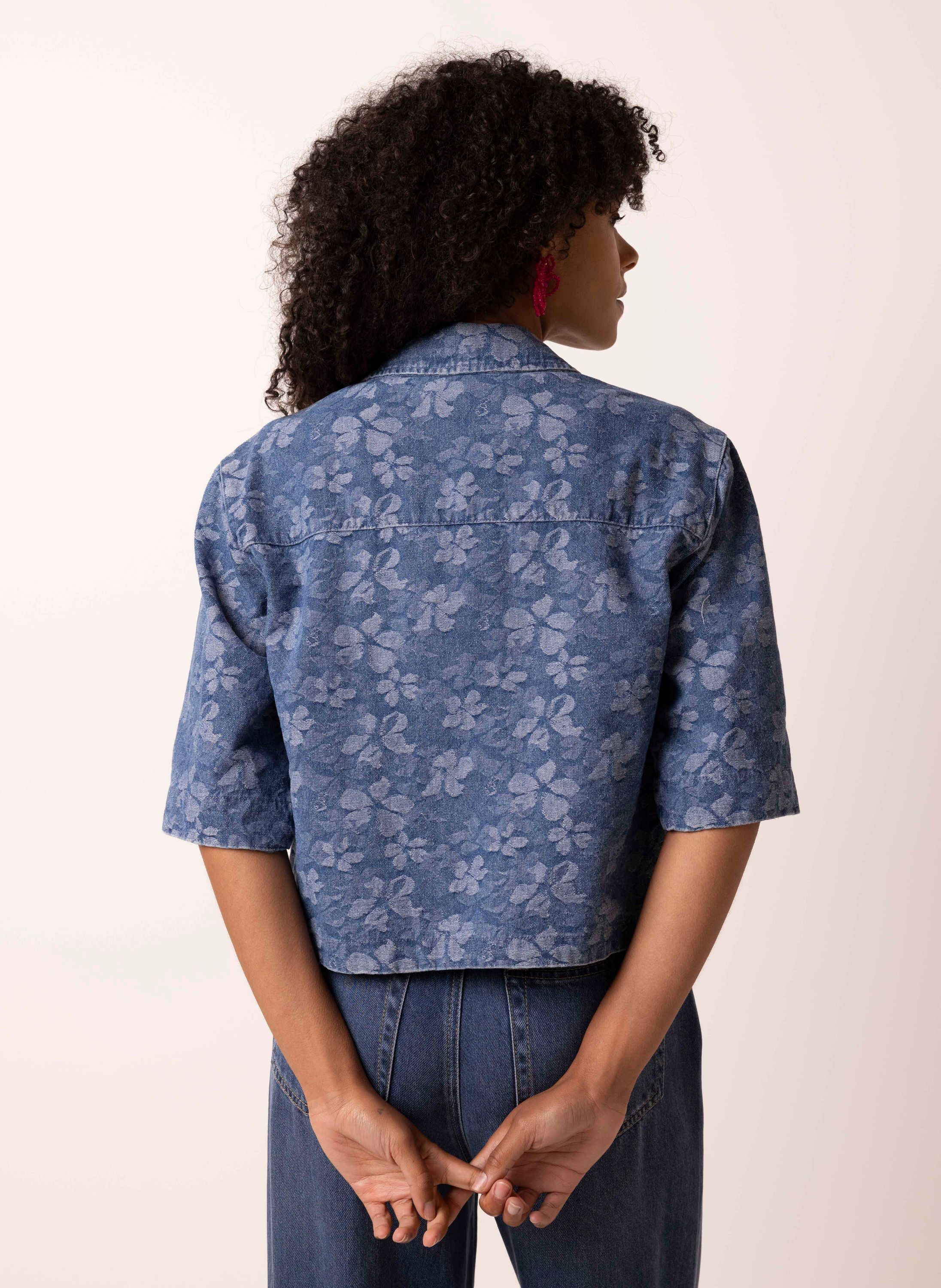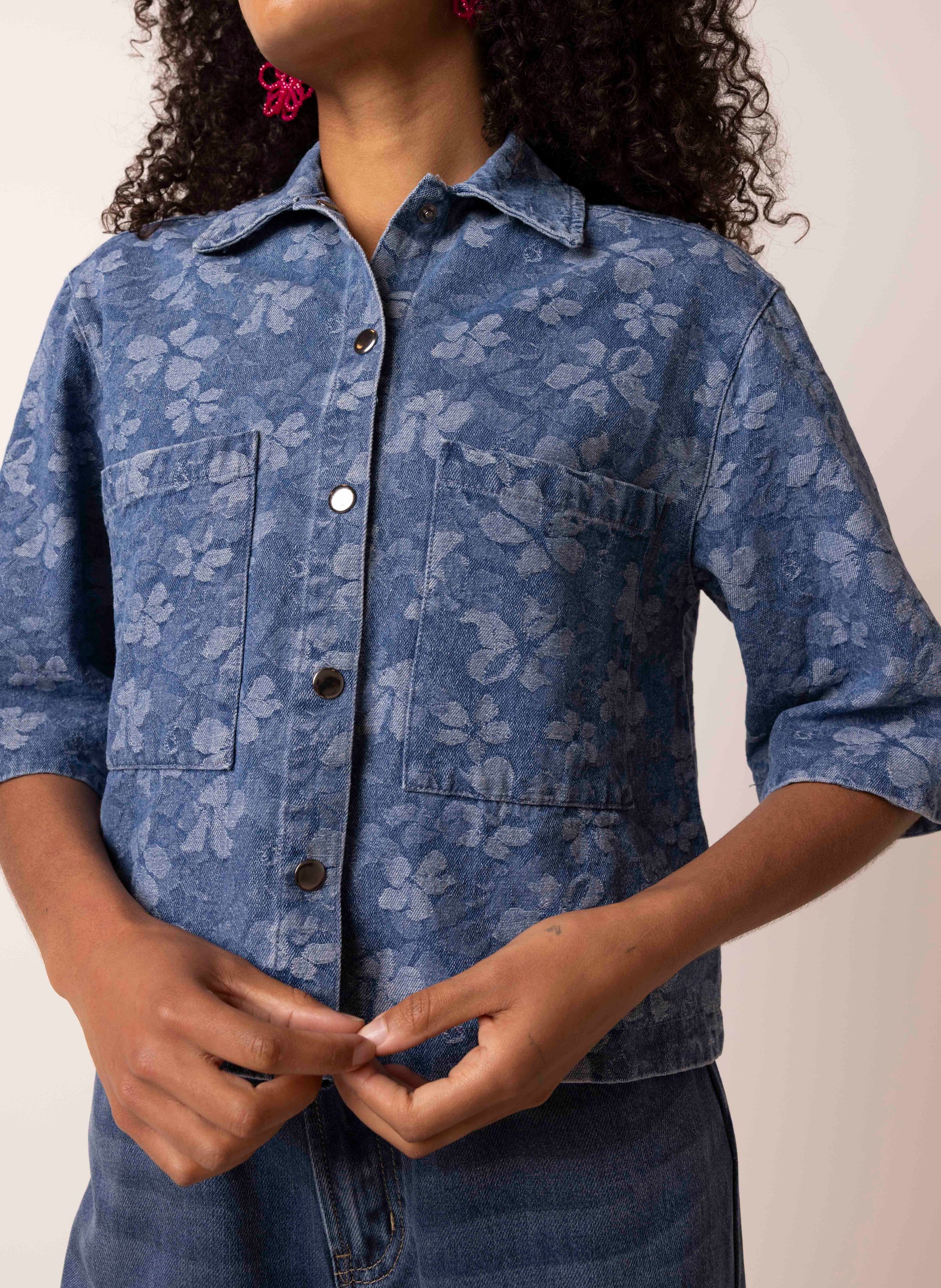 Denim blouse met bloemen