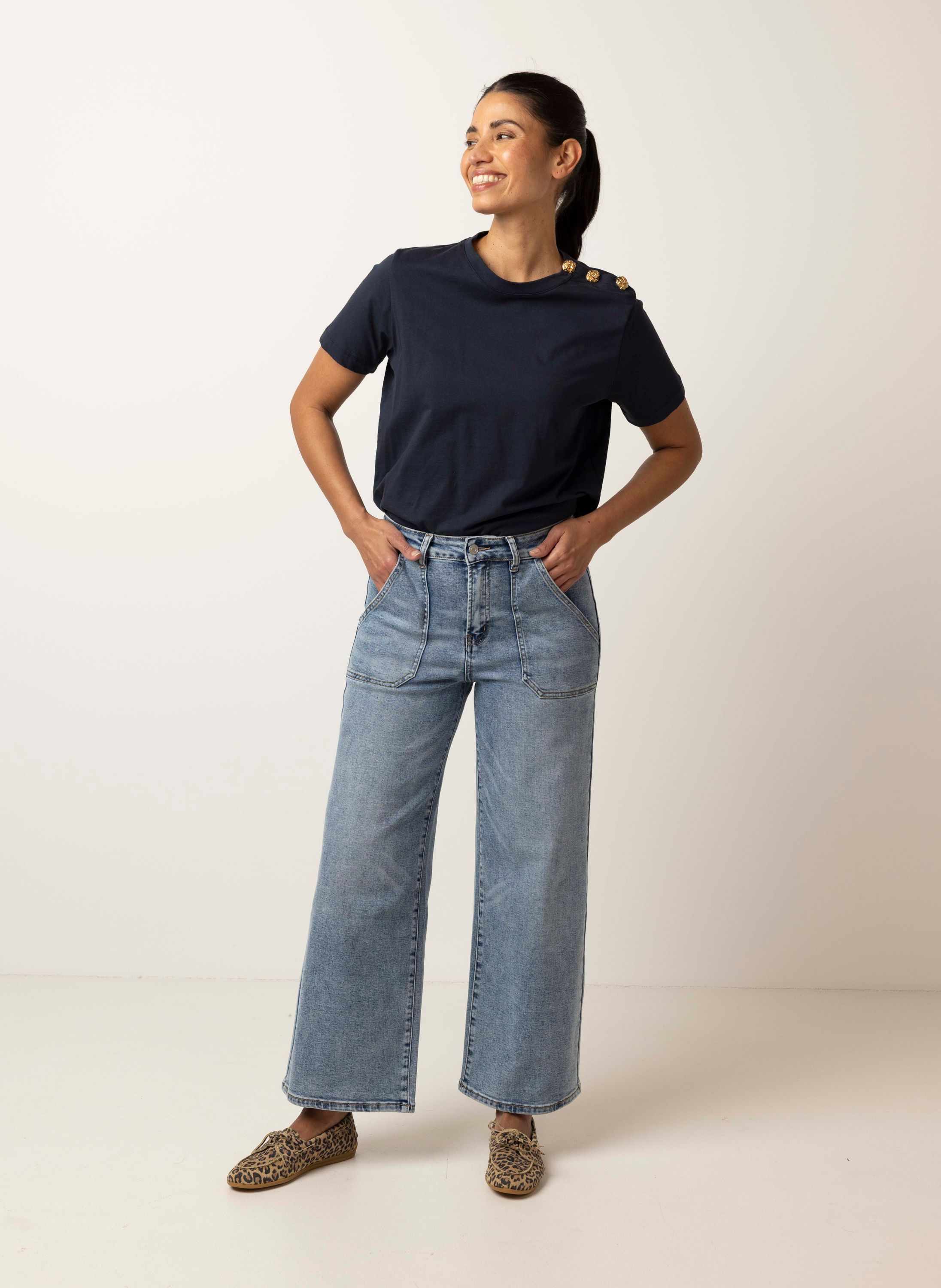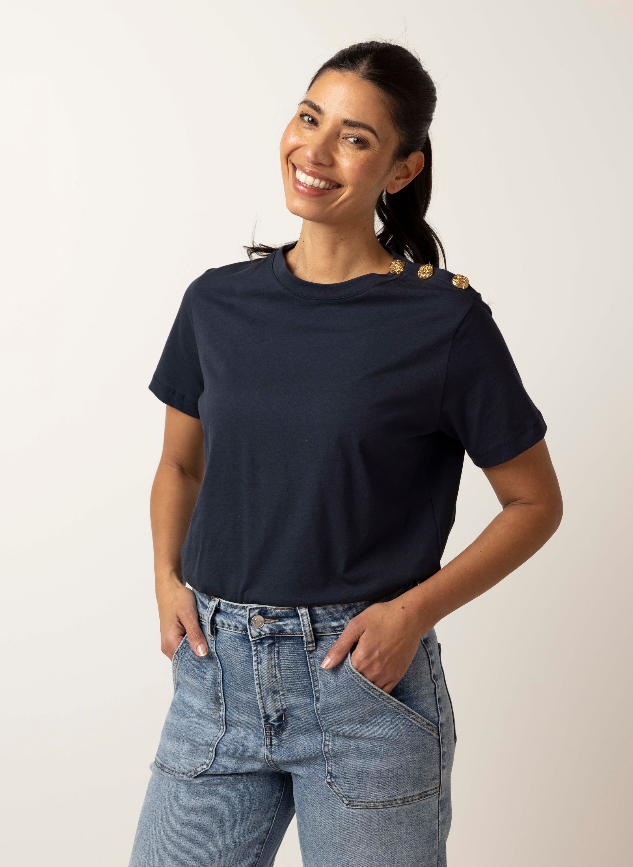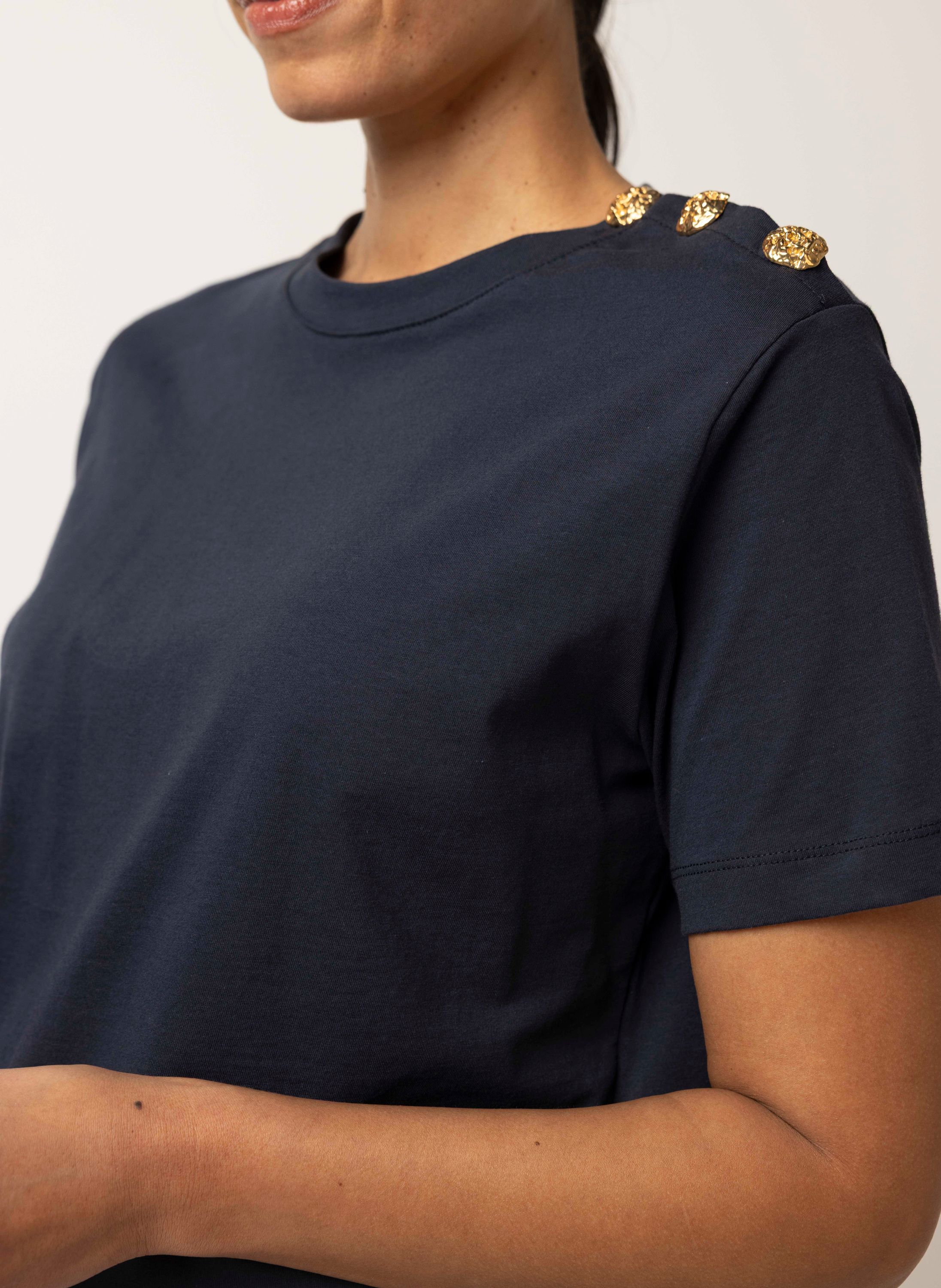 Donkerblauw shirt met knoopdetails
