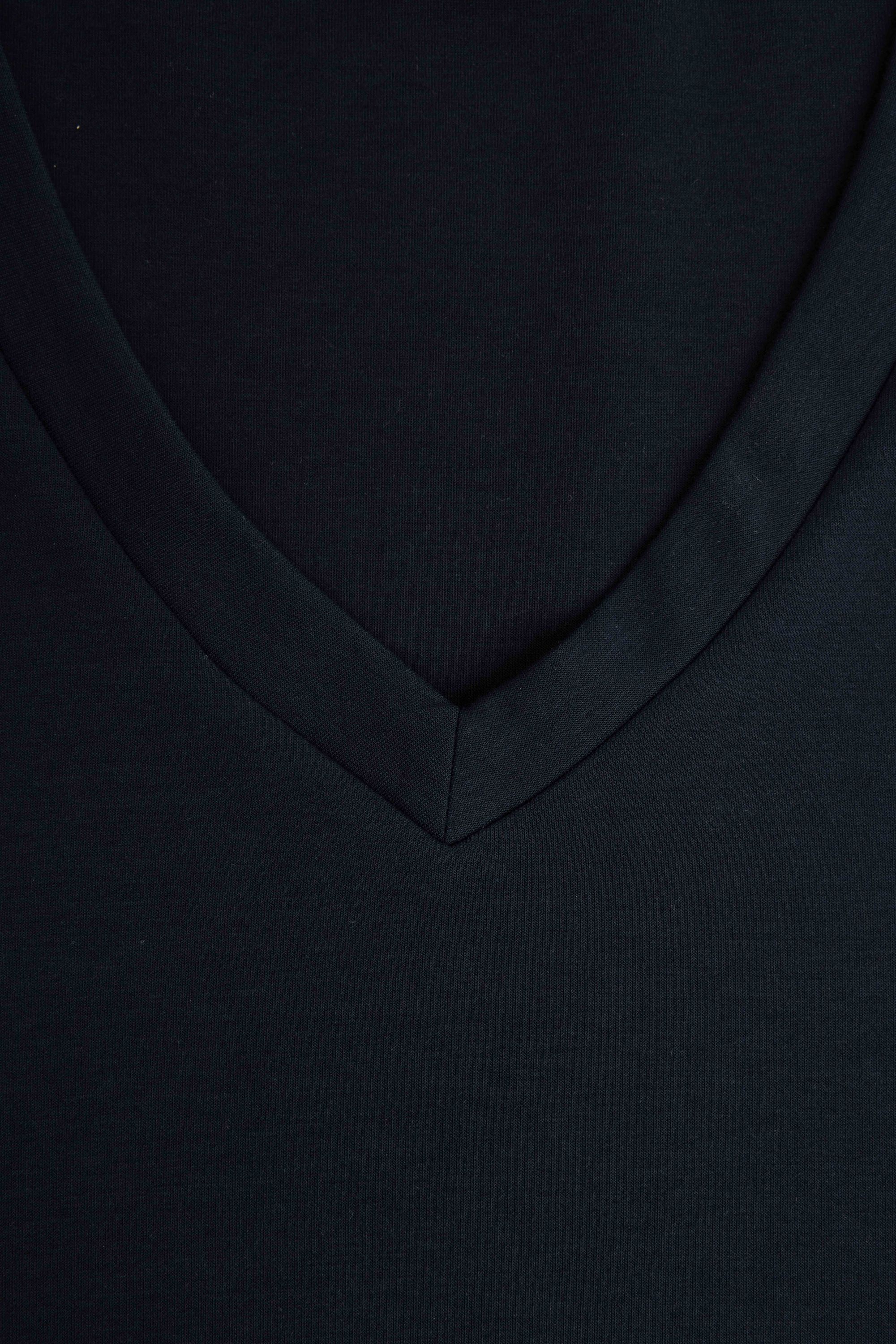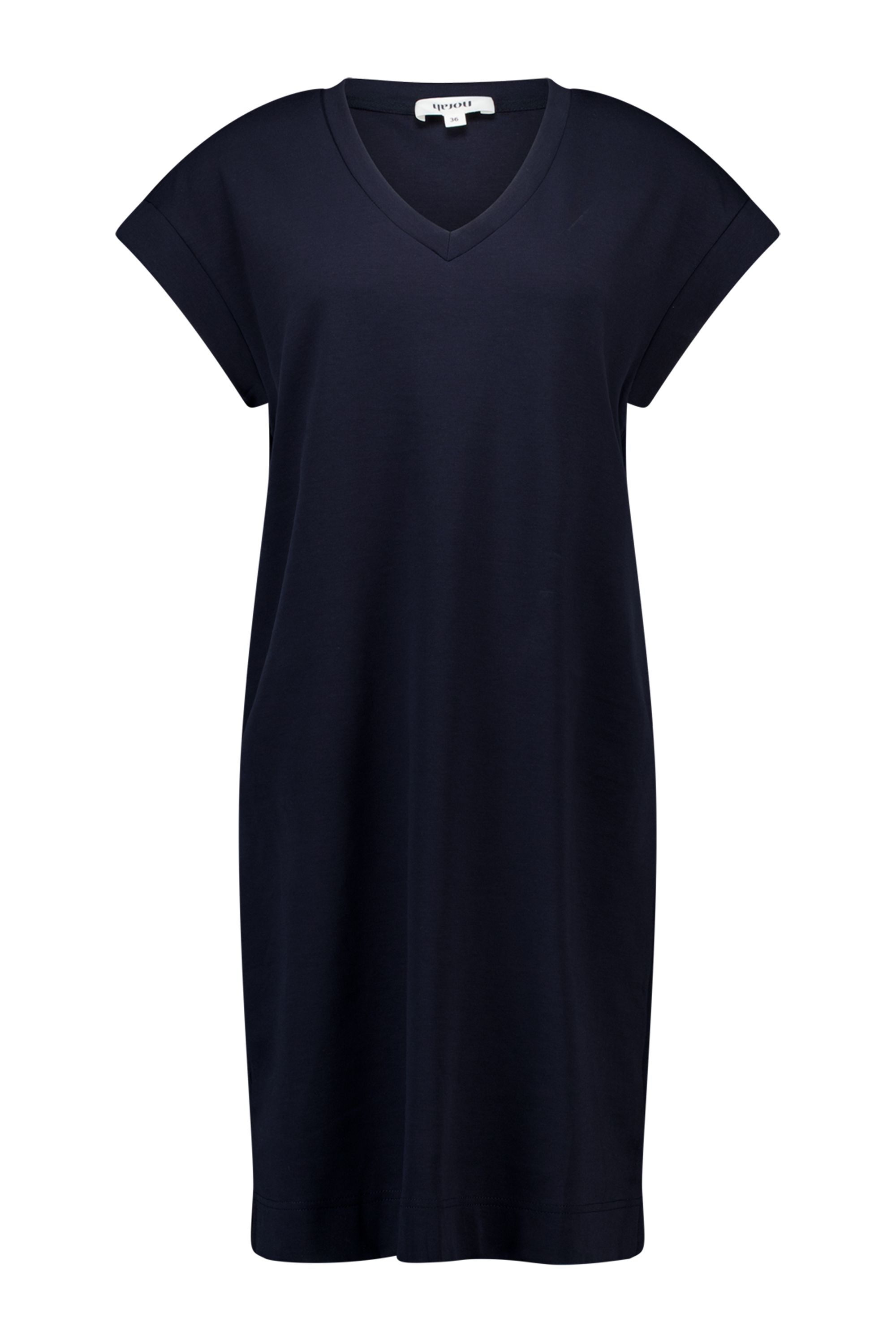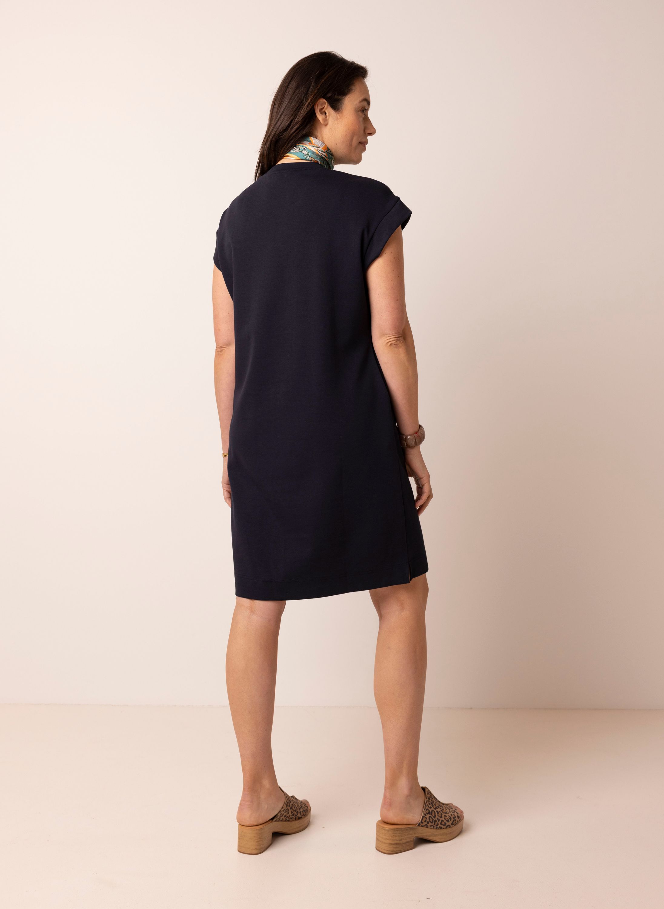 Deze midi jurk met V-hals en korte mouwen heeft een vrouwelijke uitstraling.