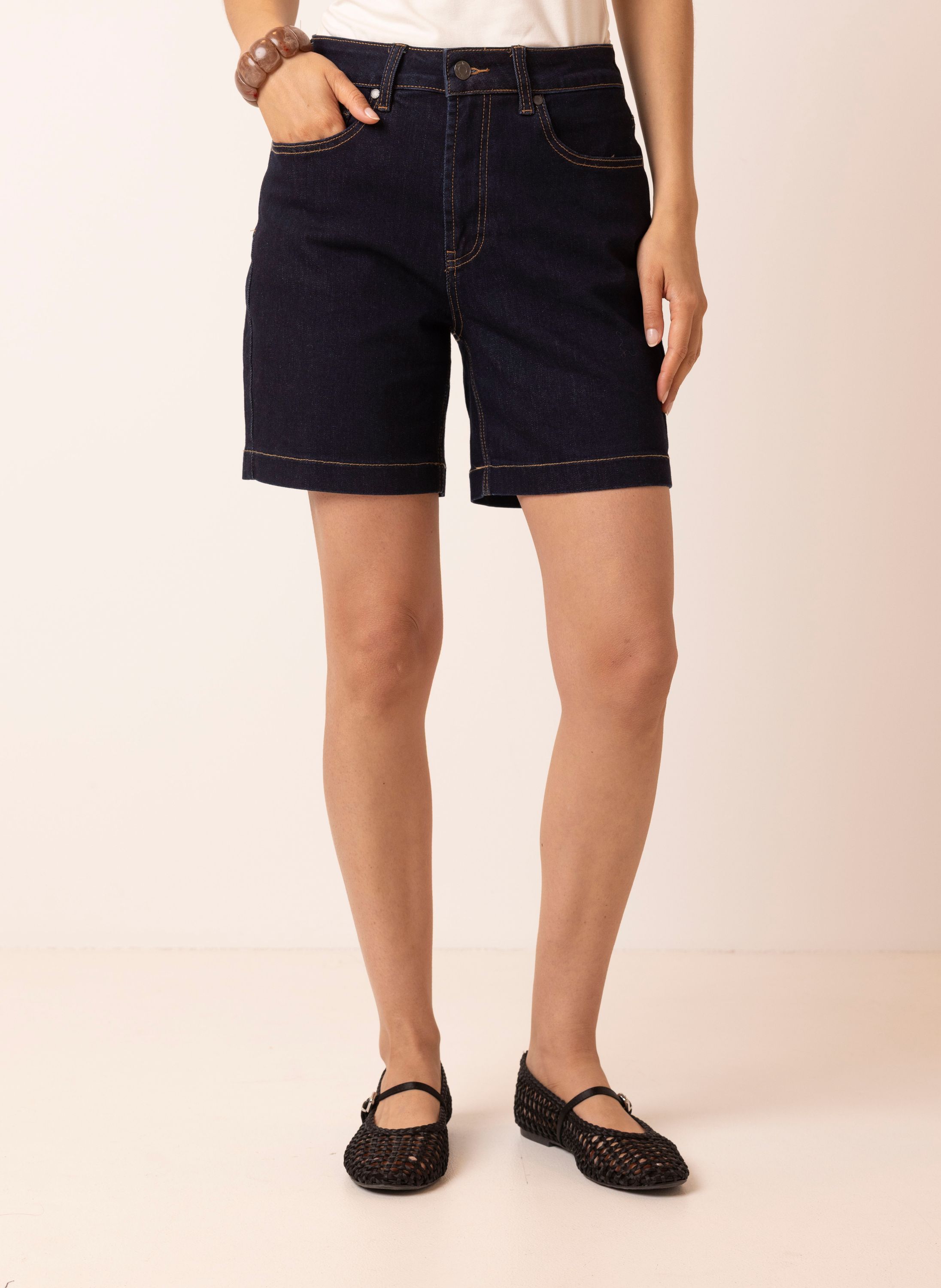 Deze denim korte broek met rits- en knoopsluiting heeft steekzakken aan de voorzijde en open zakken aan de achterzijde.
