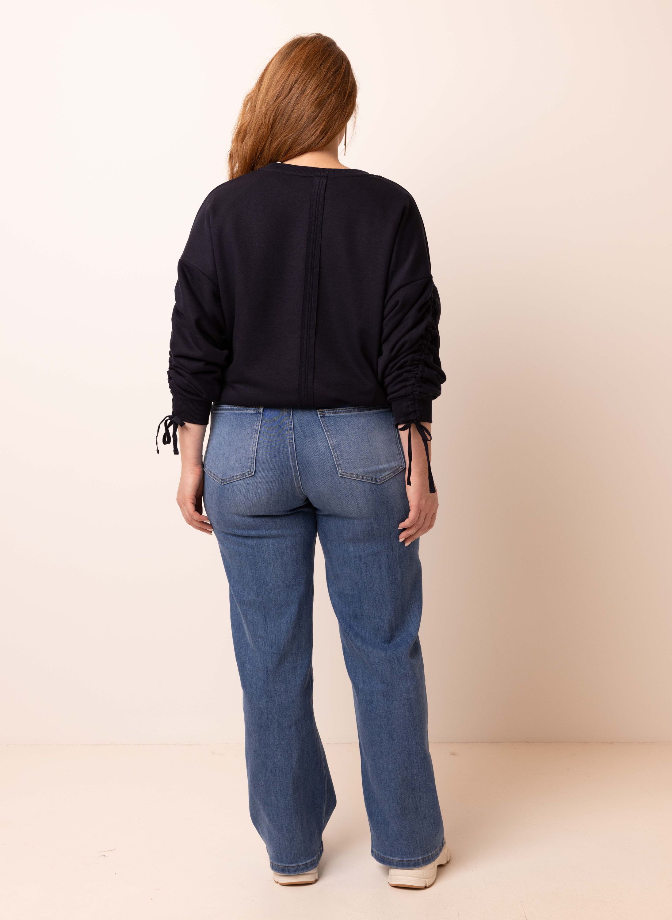 Deze sweater met ronde hals heeft lange mouwen en trekkoorden voor een sportieve look.