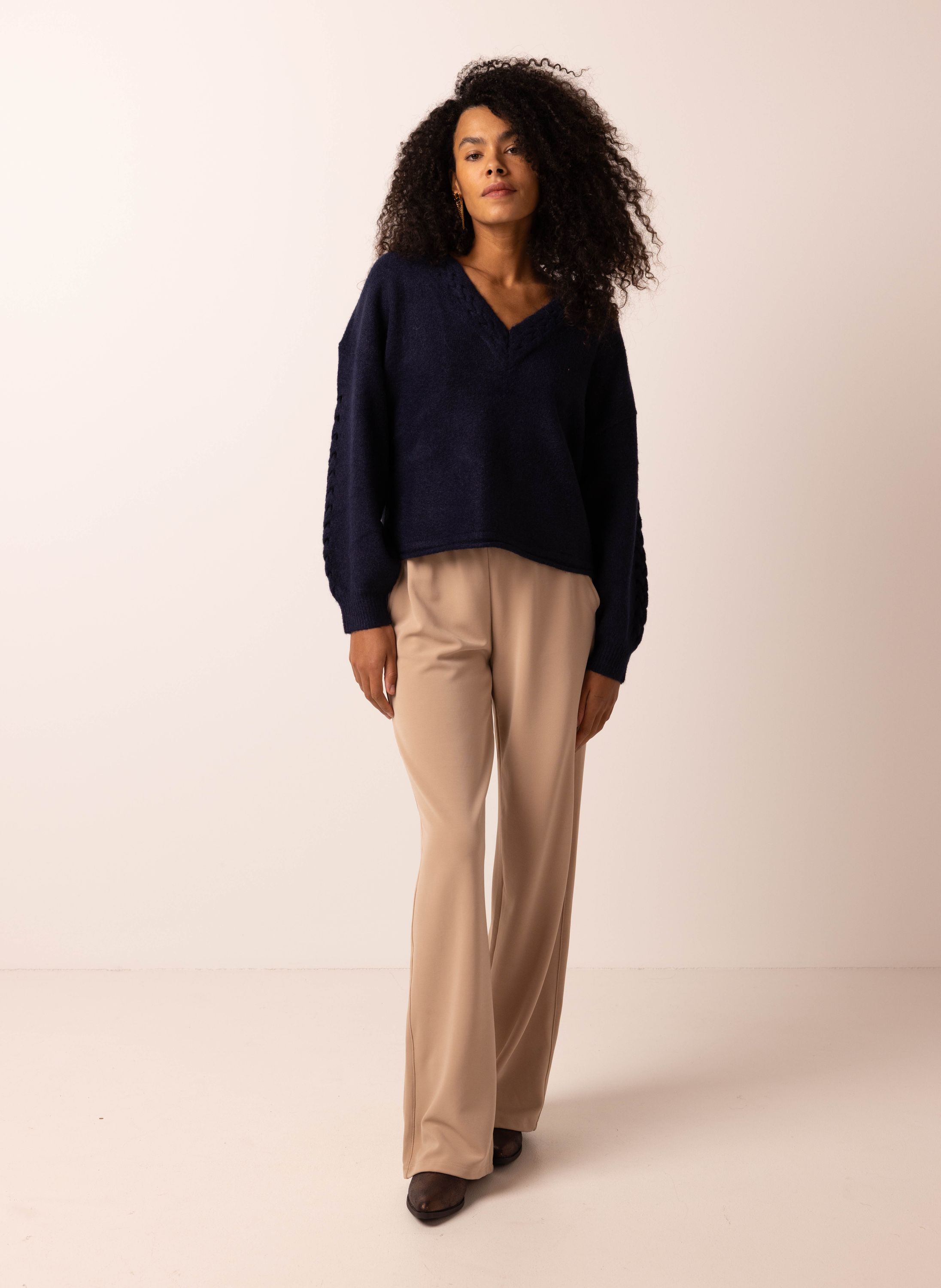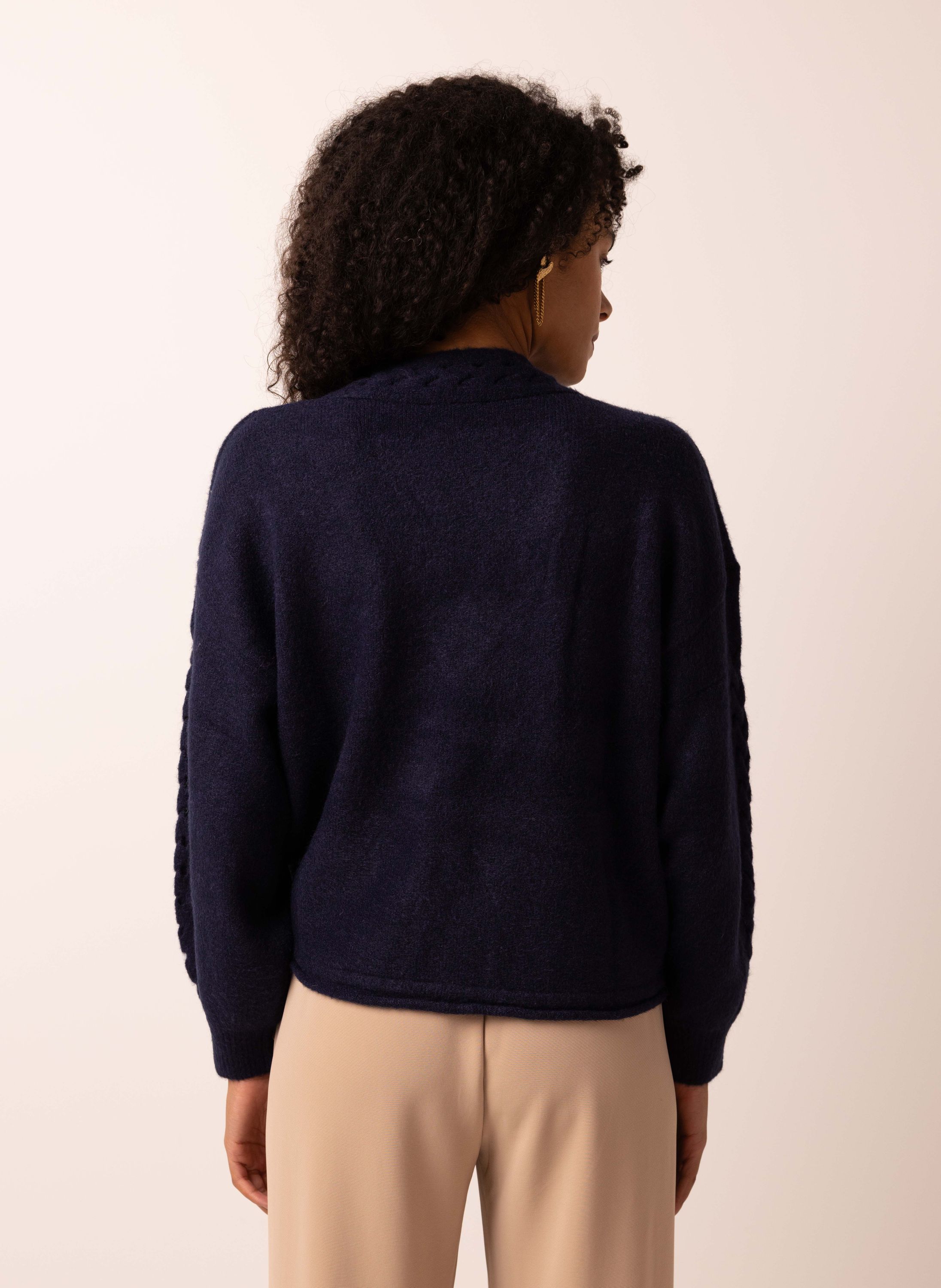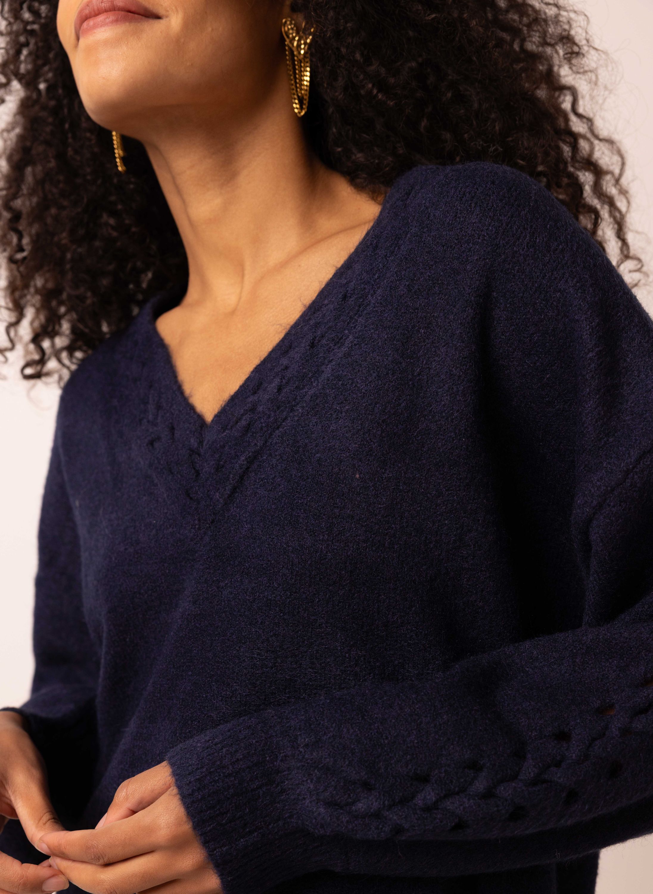 Donkerblauwe trui met gevlochten detail