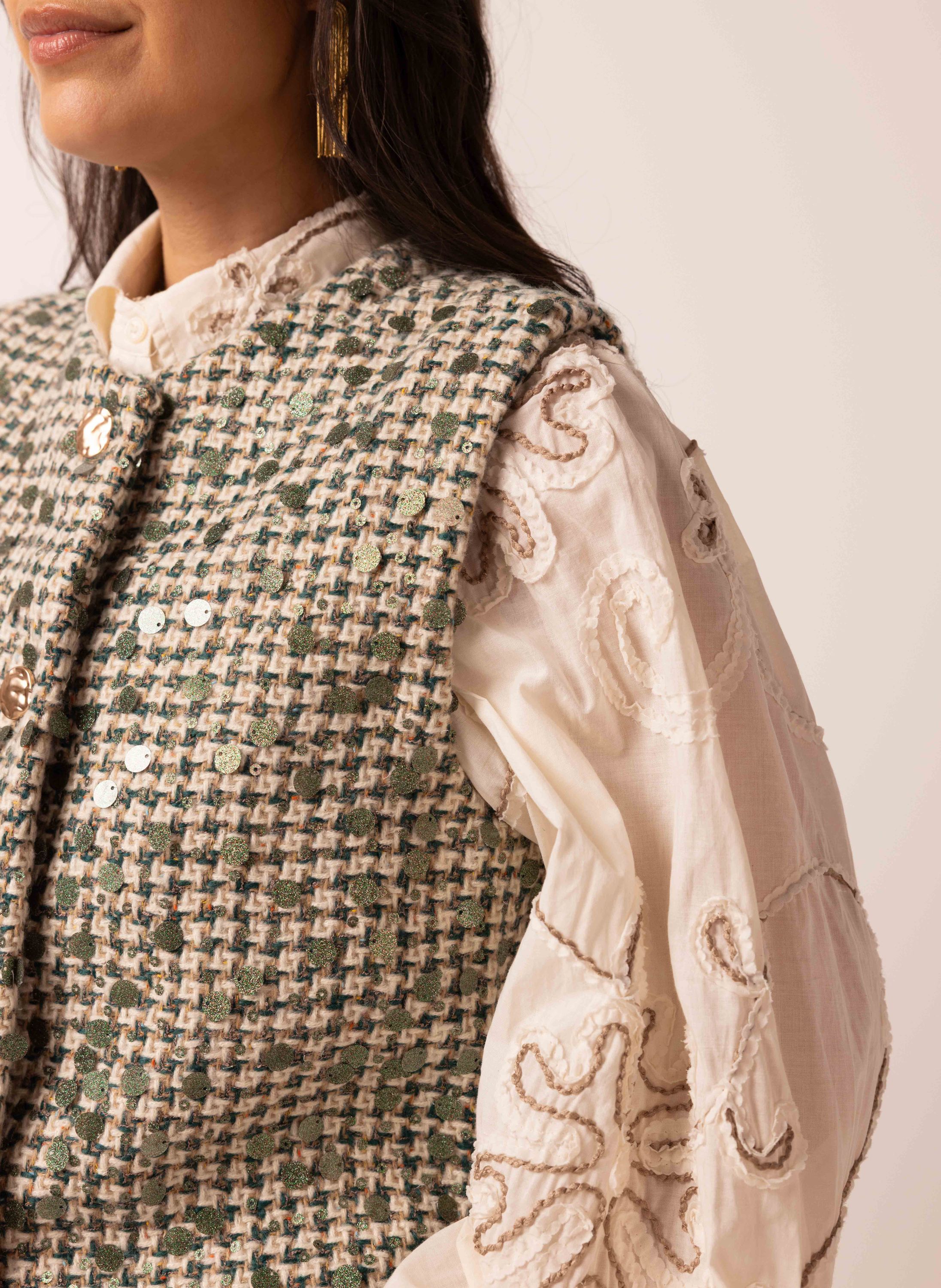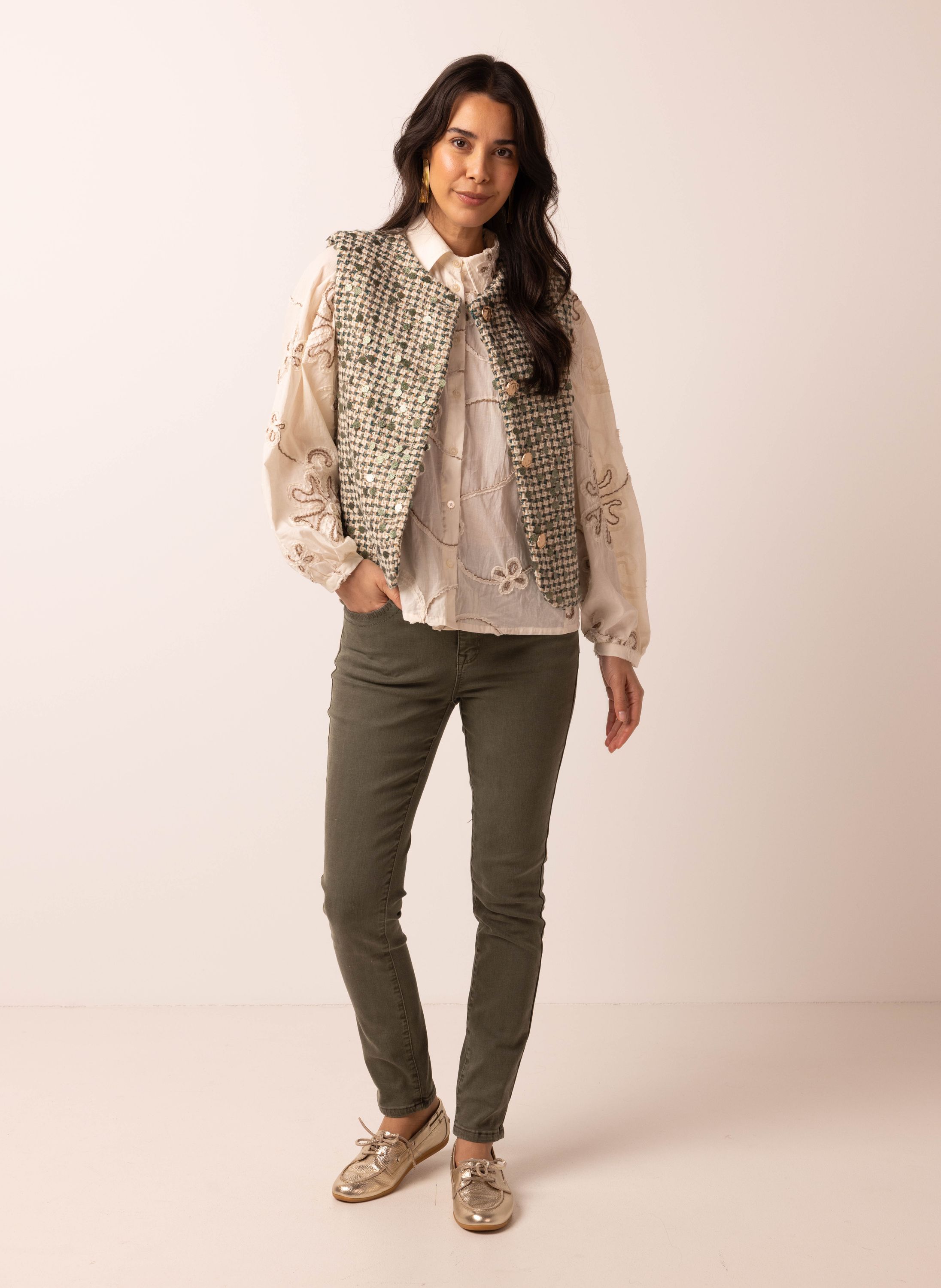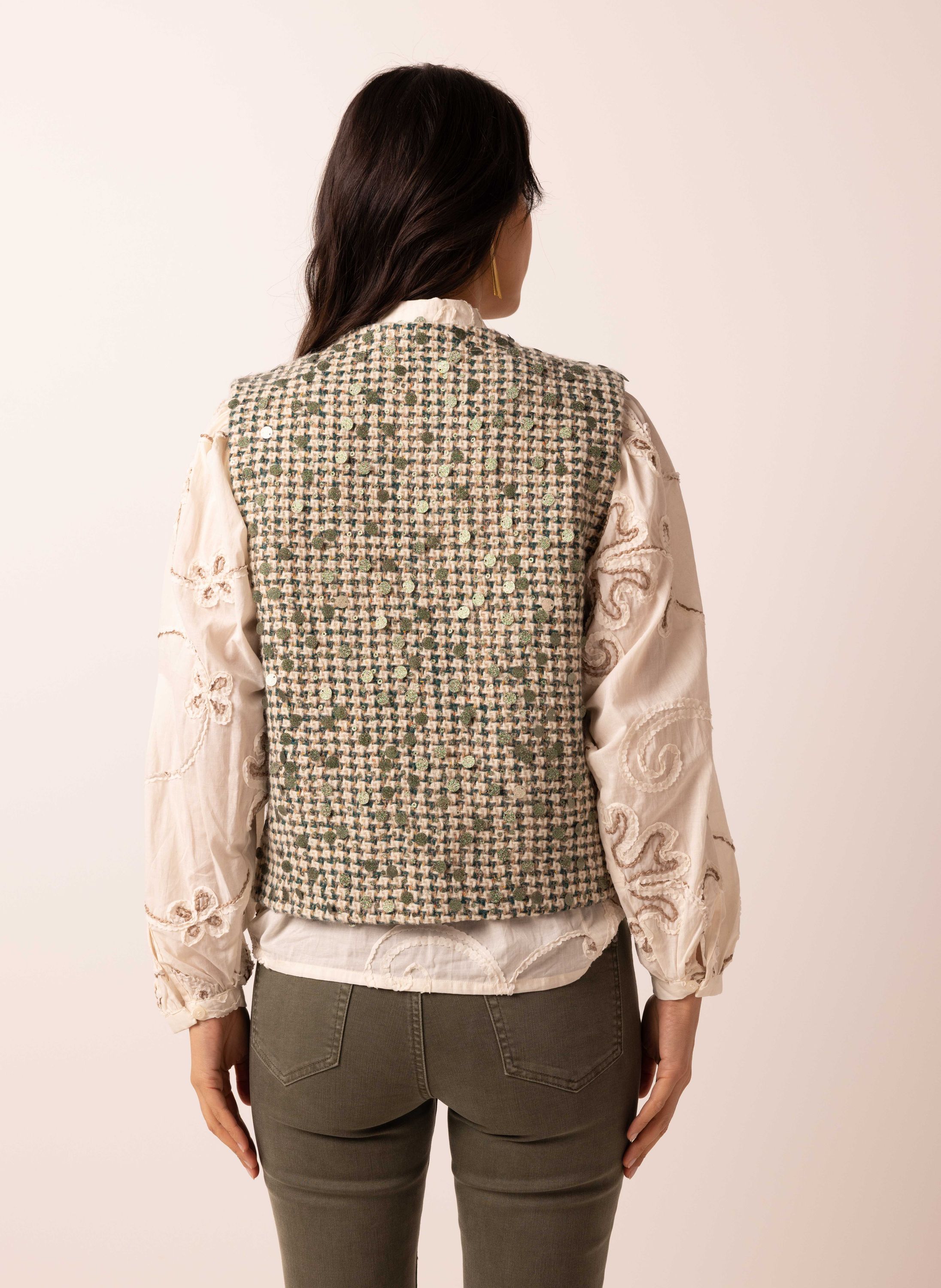 Donkergroen gilet van geweven stof