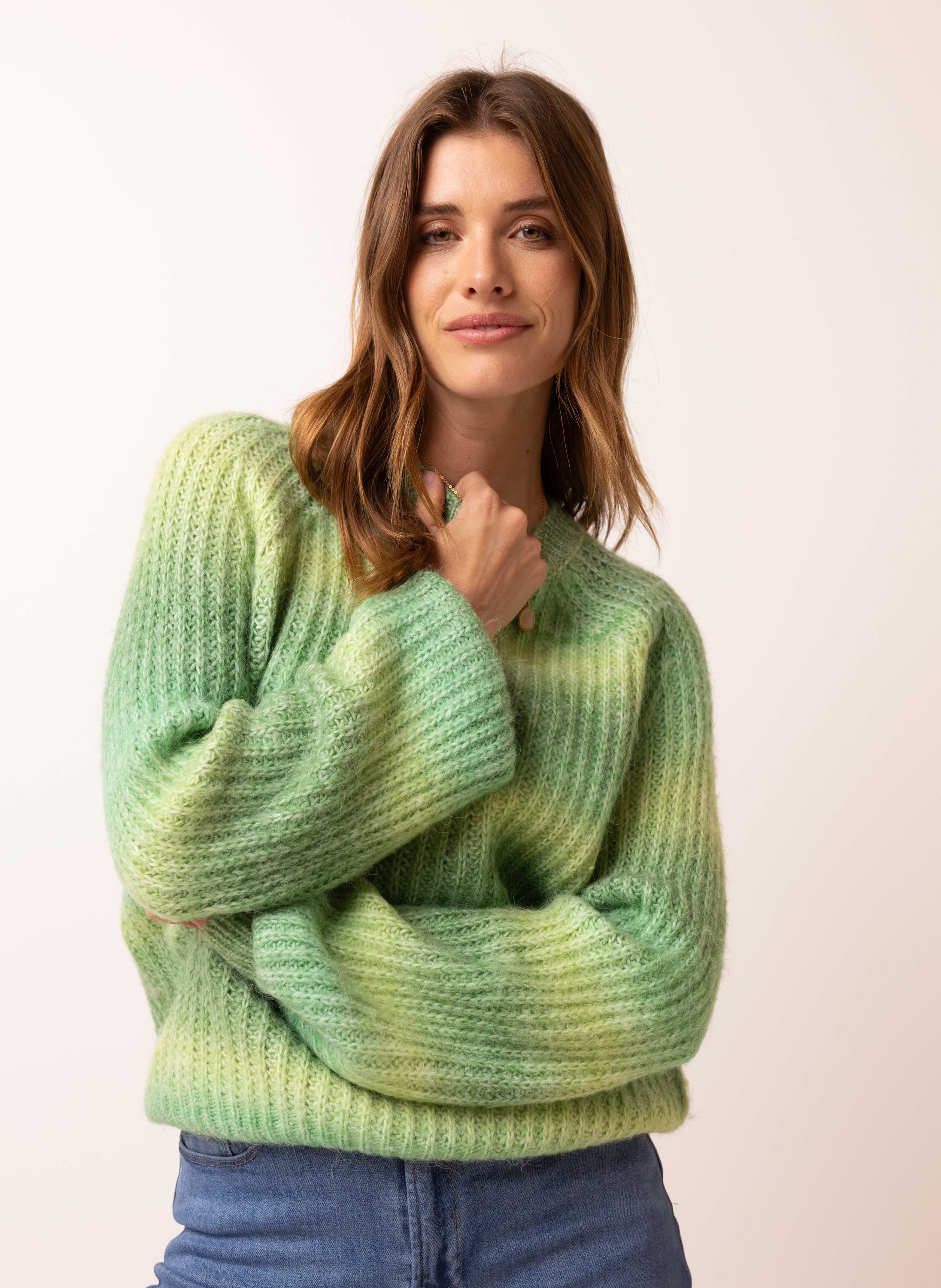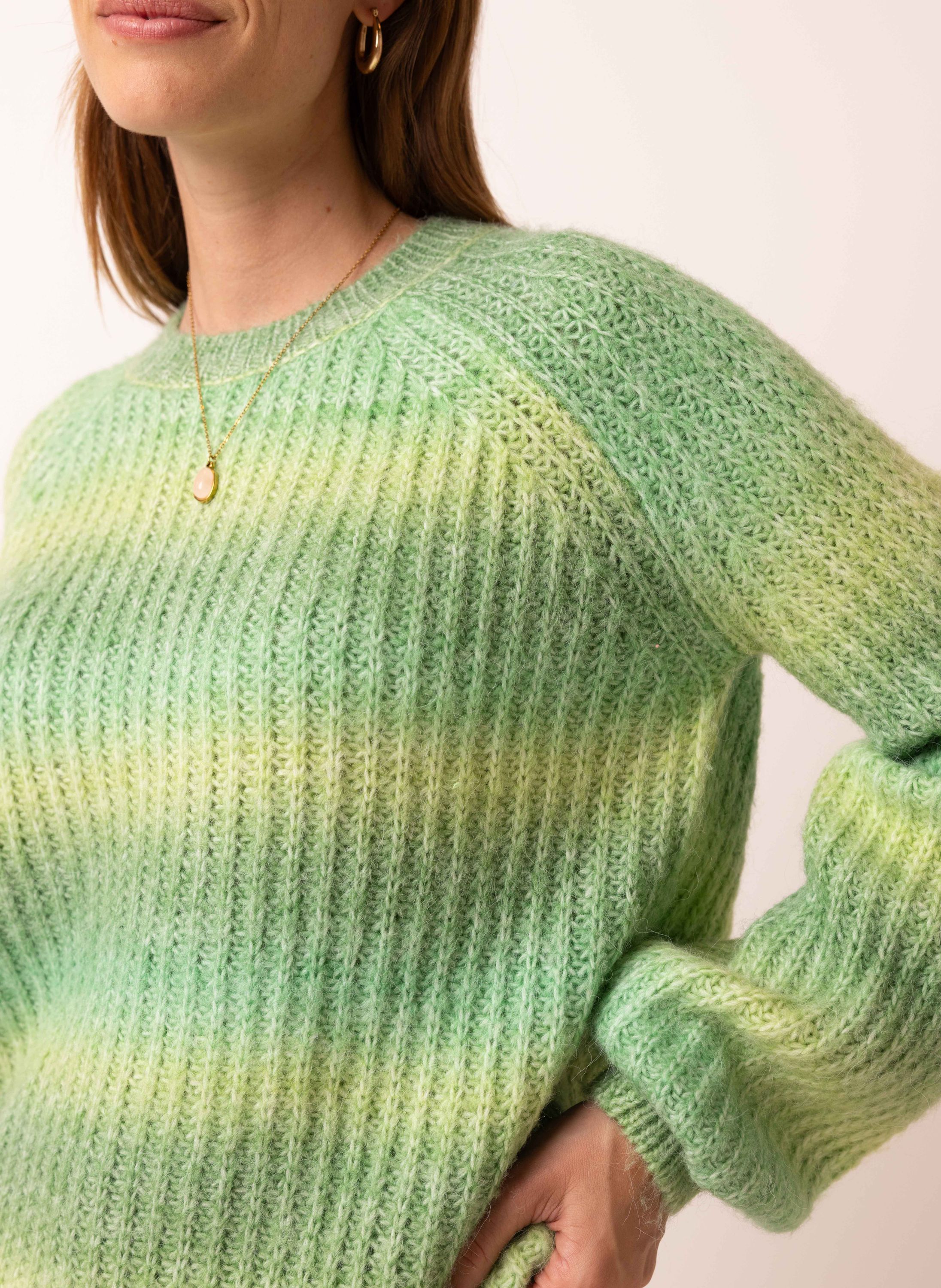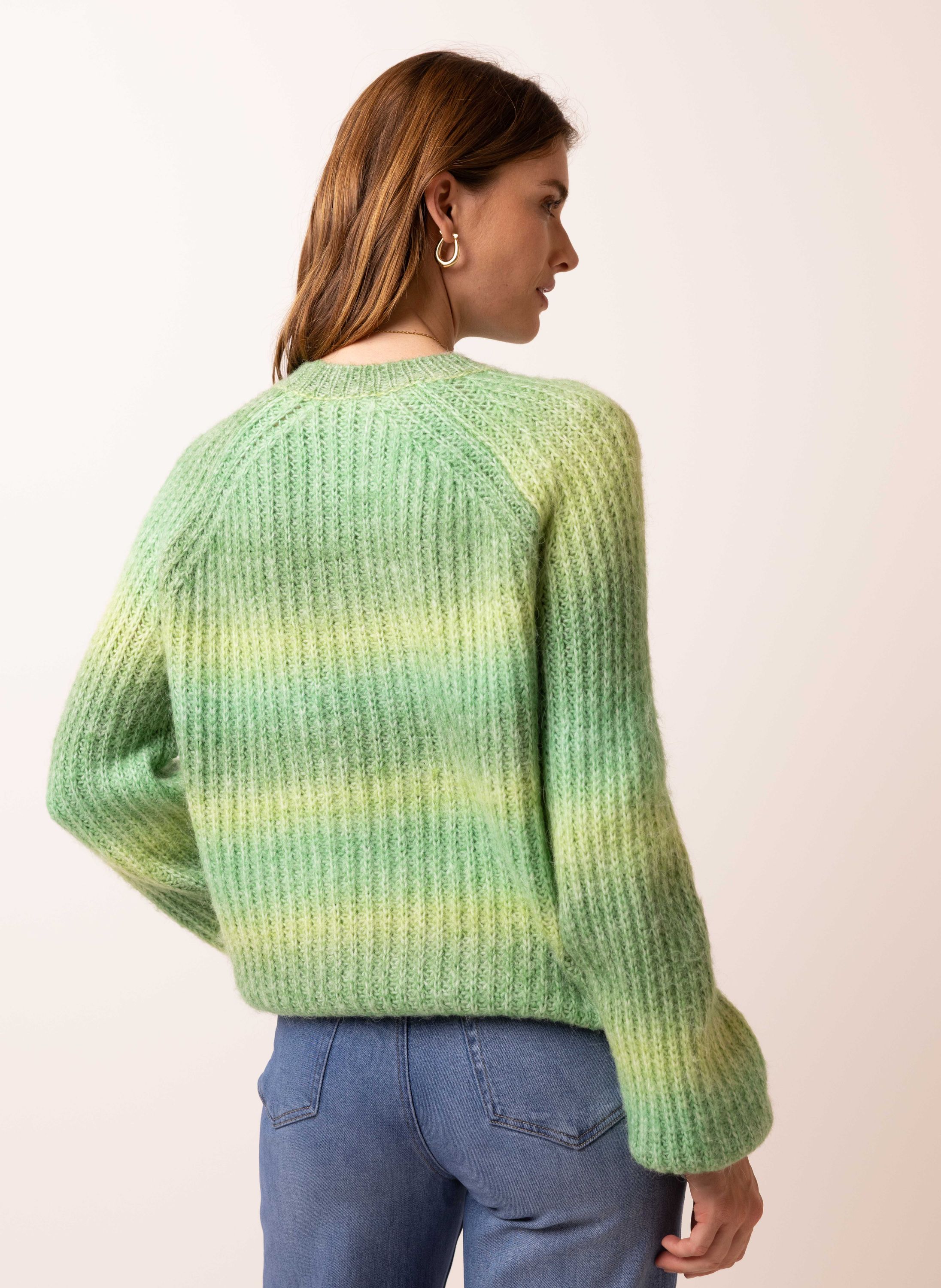 Donkergroene trui met gekleurde strepen