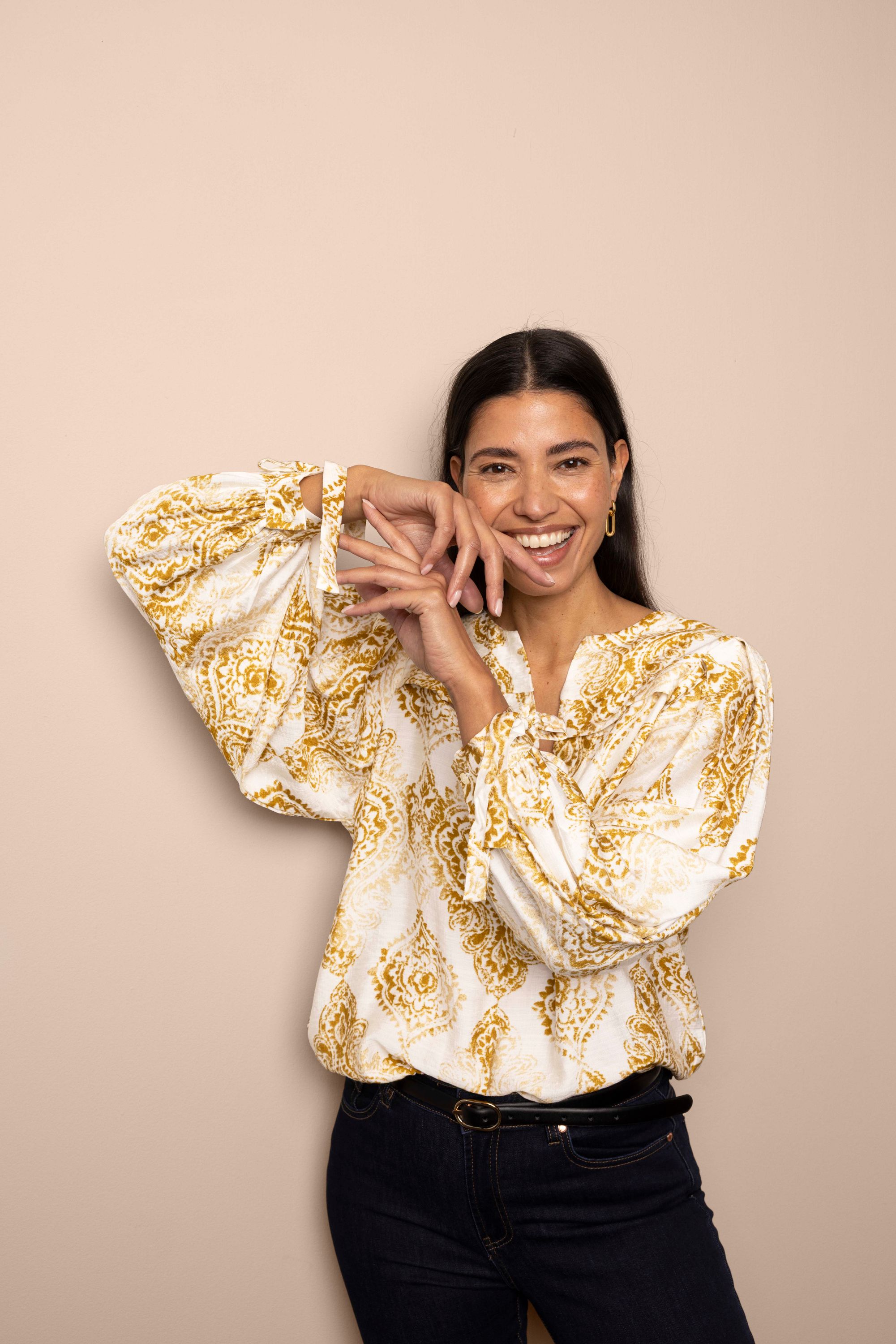 Ecru blouse blouse met sierlijke print