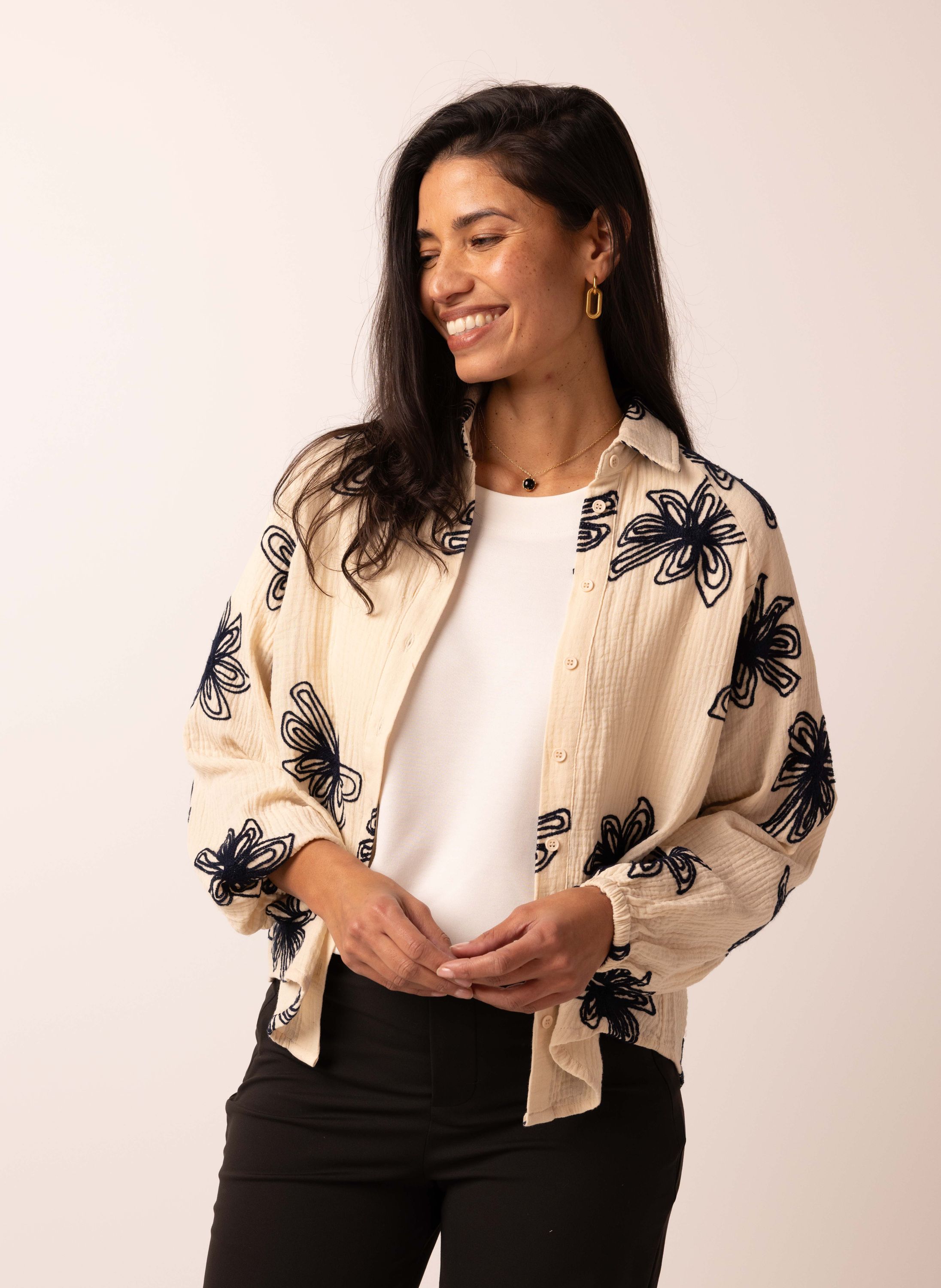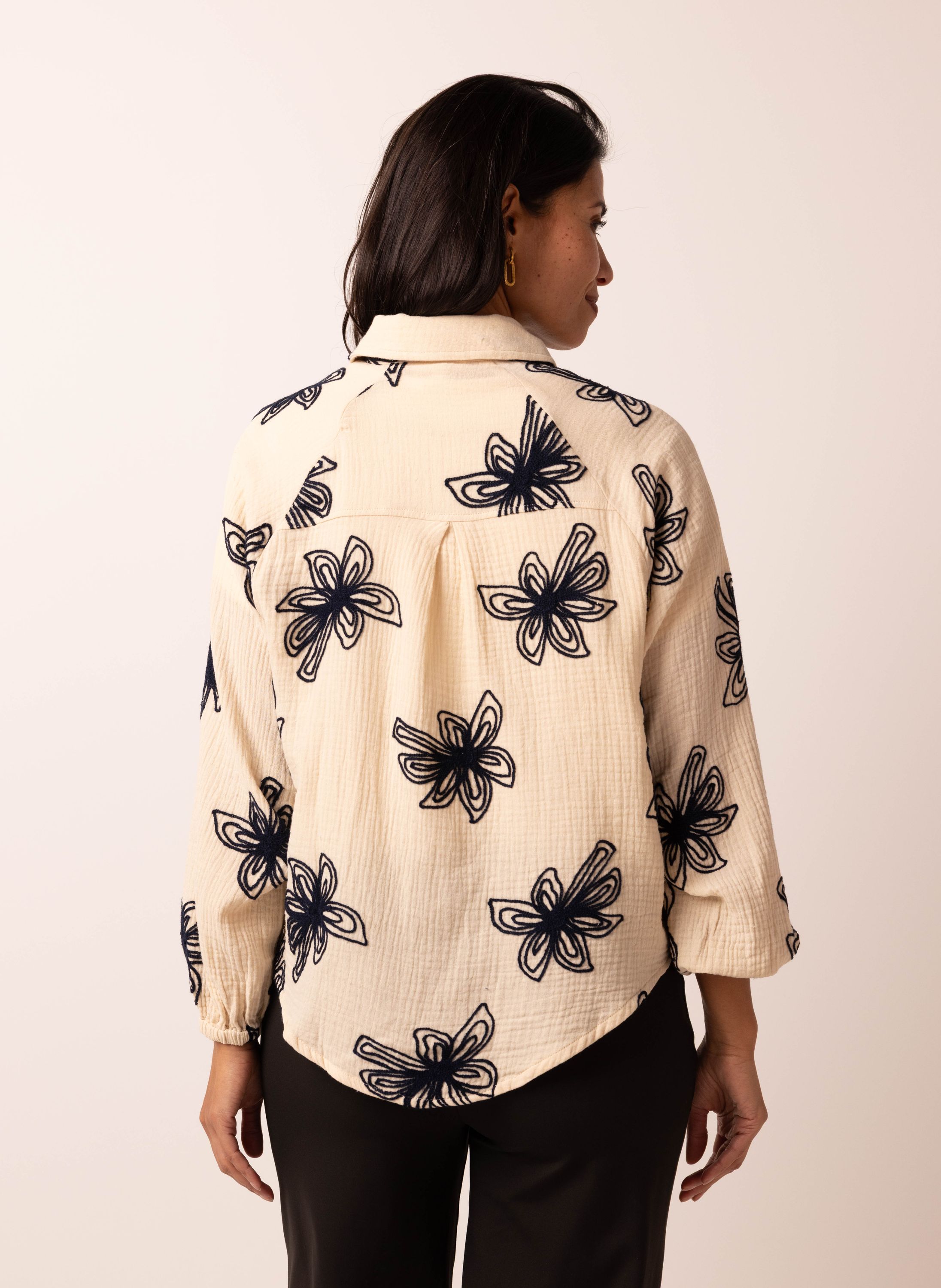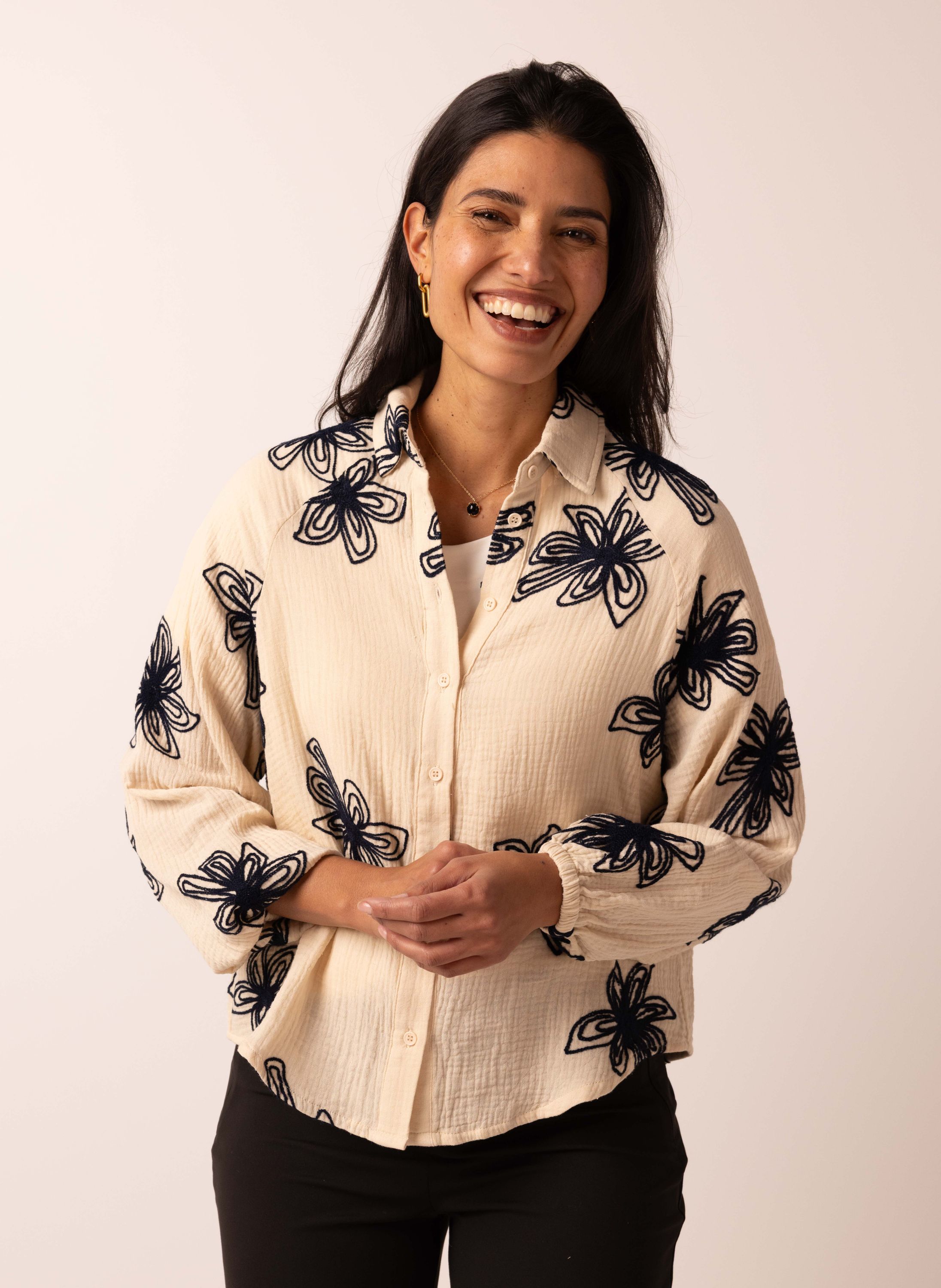 Deze katoenen blouse heeft een klassieke kraag, knoopsluiting en lange mouwen.