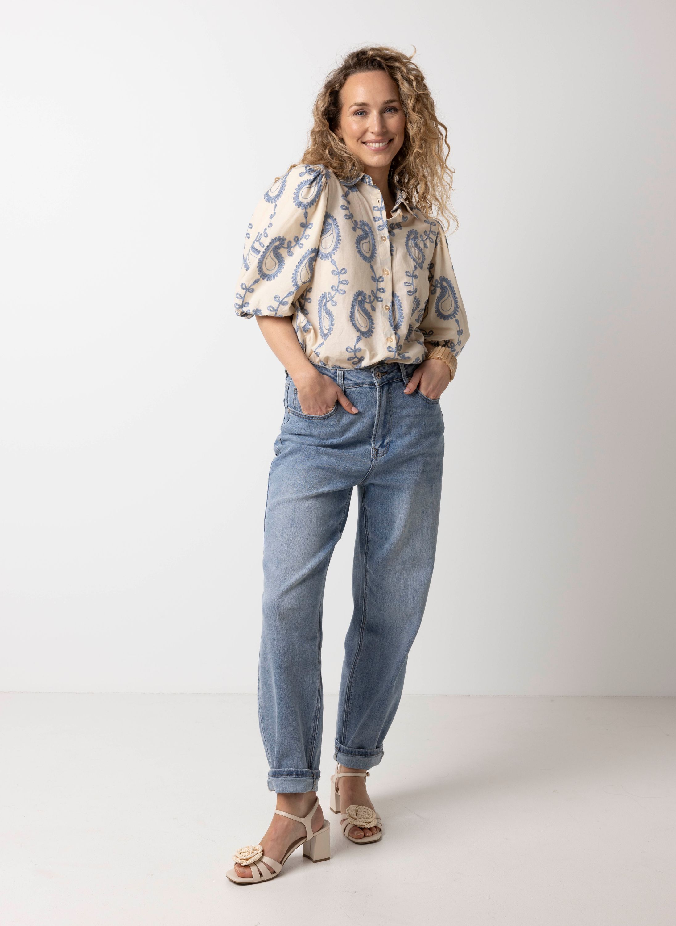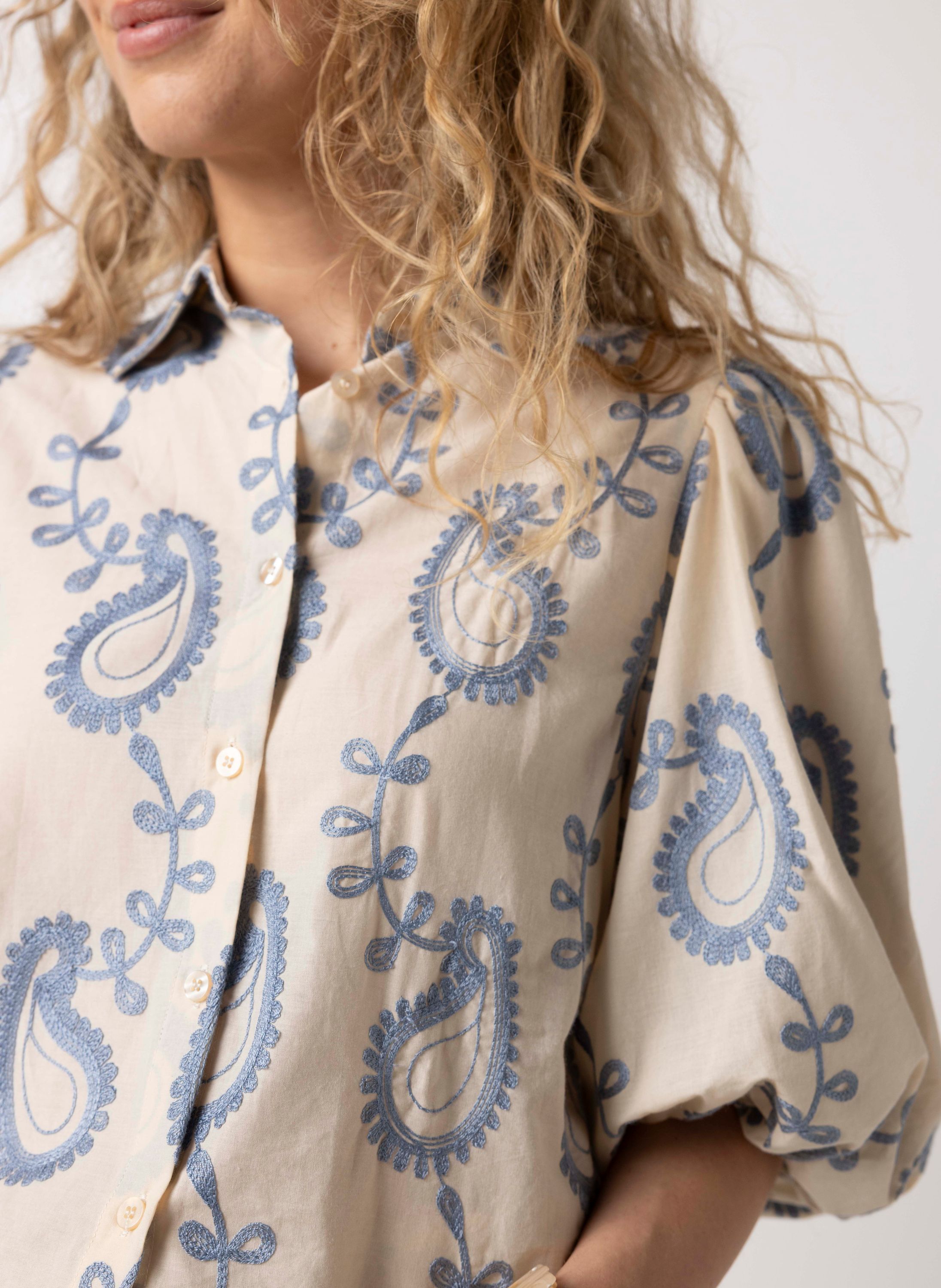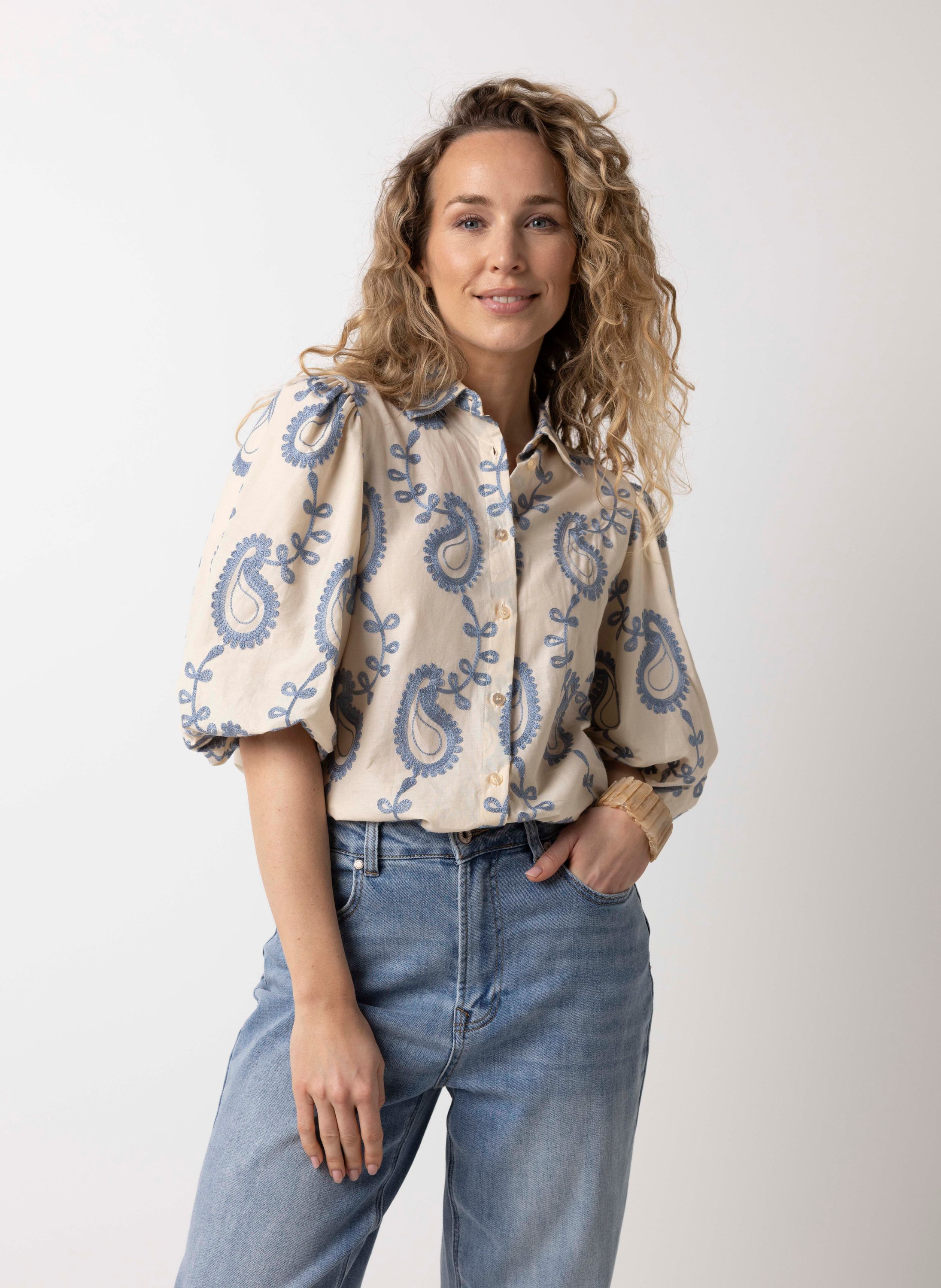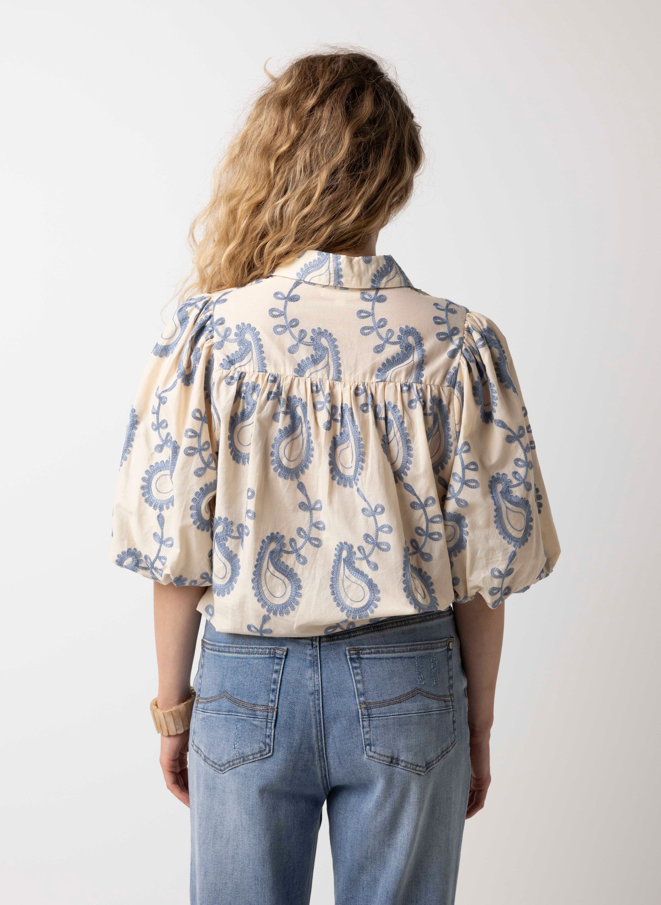Deze katoenen blouse met klassieke kraag, knoopsluiting en halflange pofmouwen heeft een vrouwelijke uitstraling.