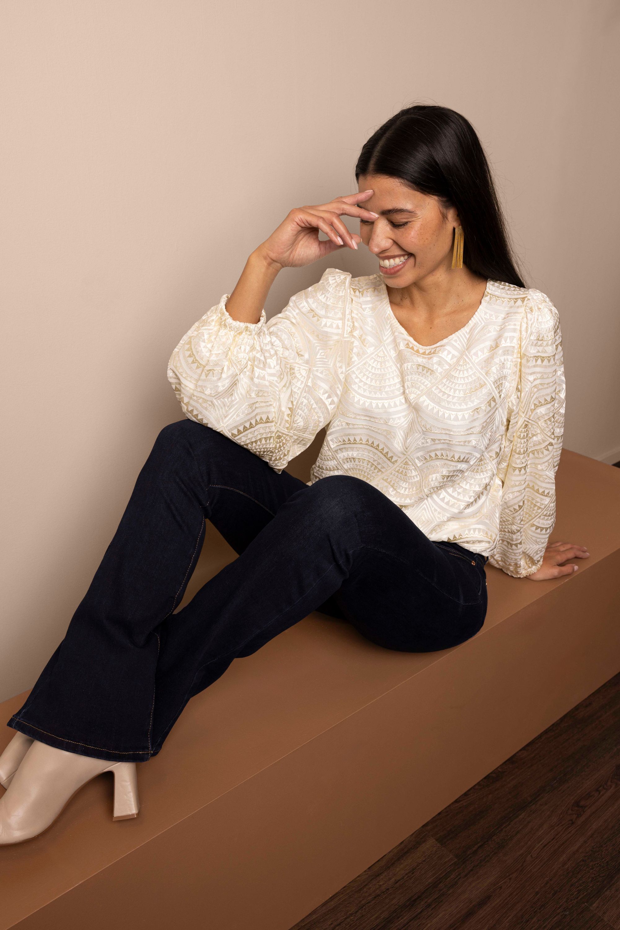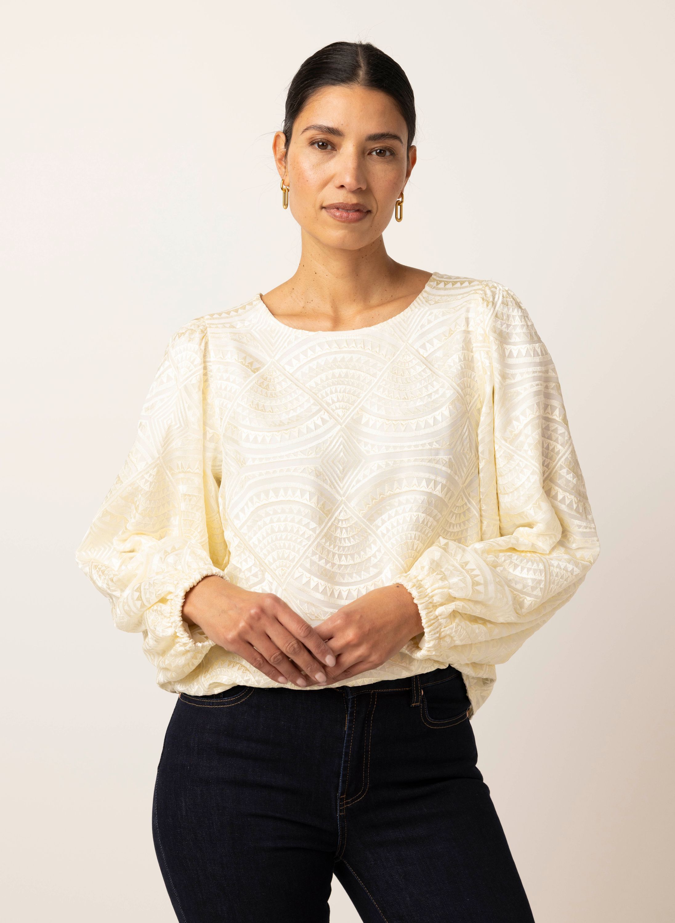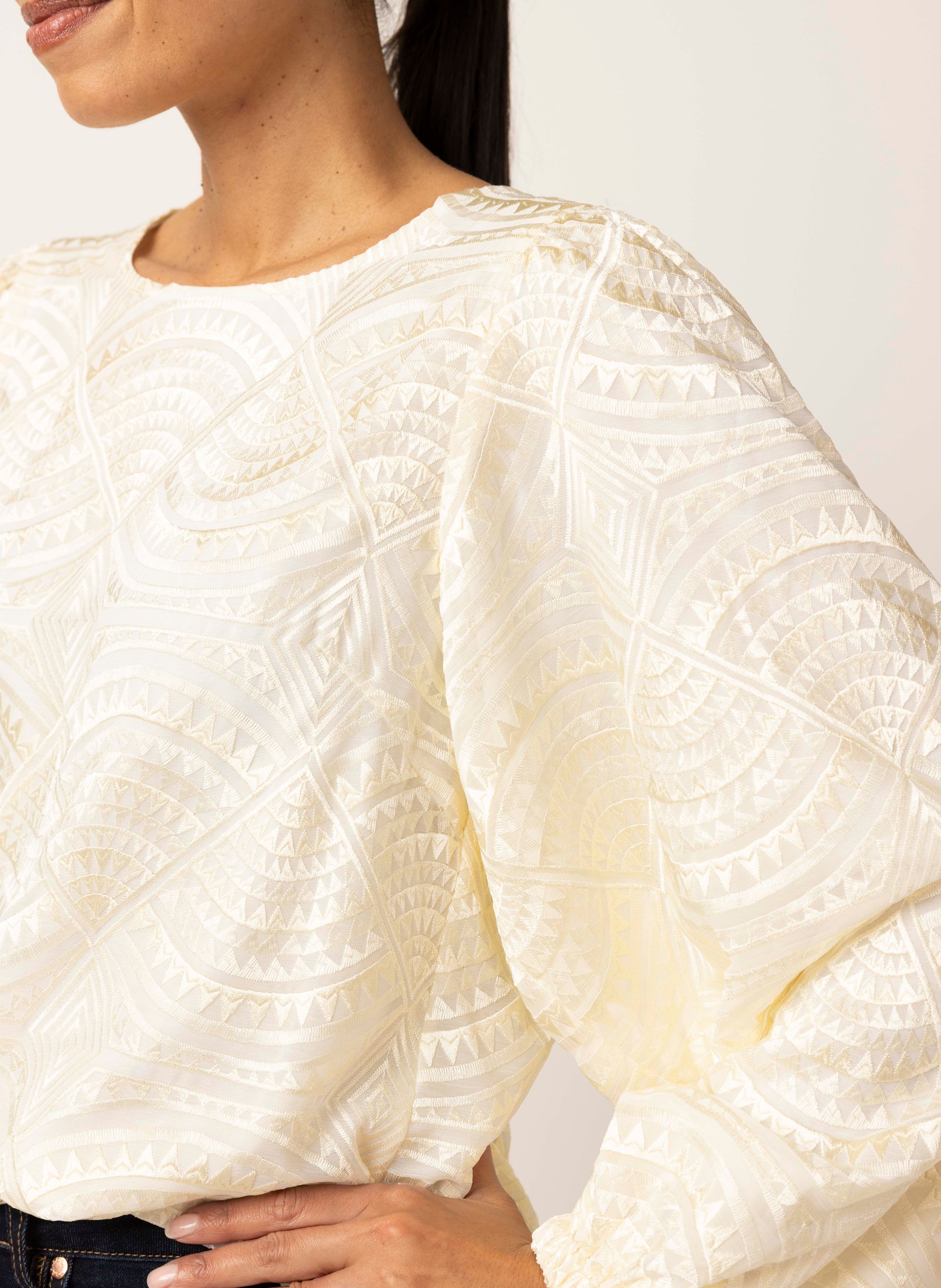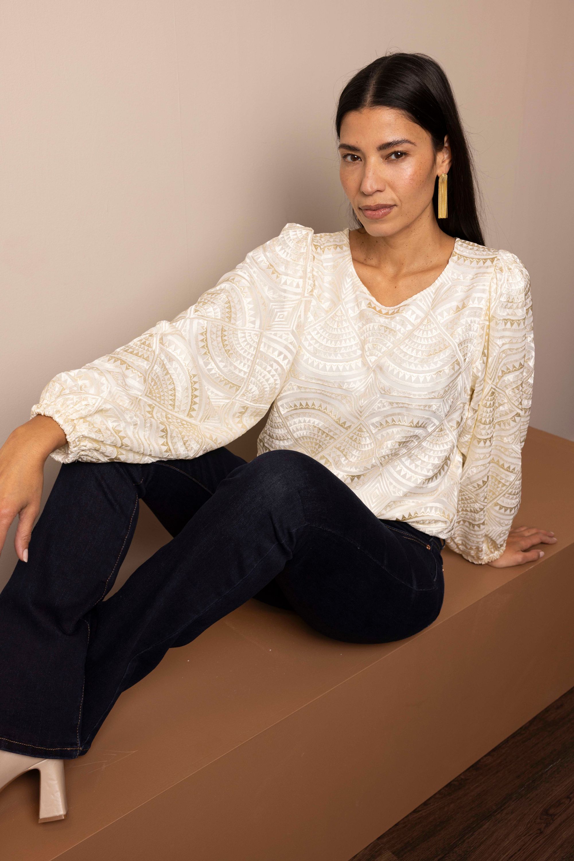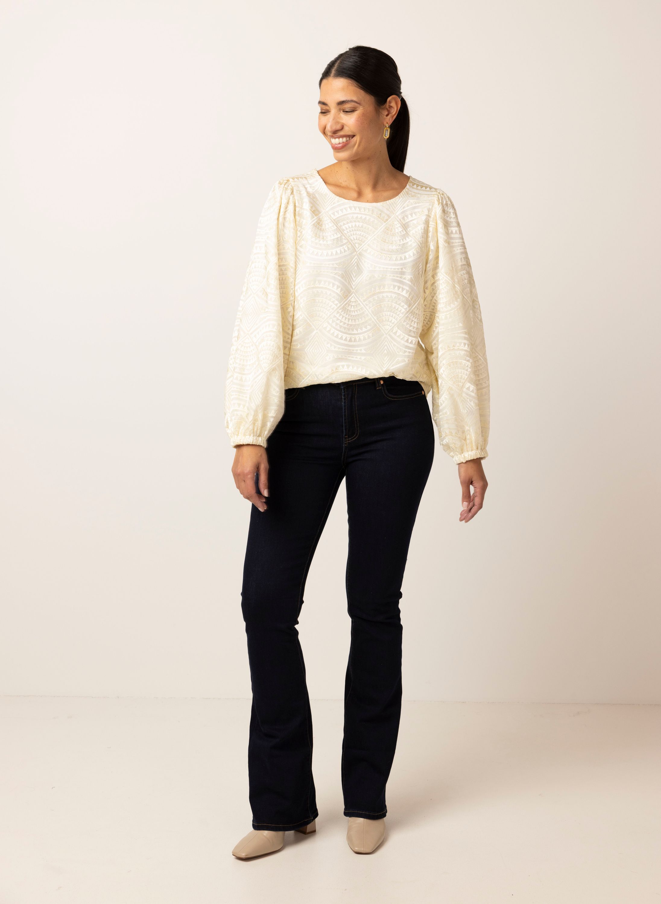 Deze blouse met ronde hals heeft lange mouwen met elastische boorden en een comfortabele fit.
