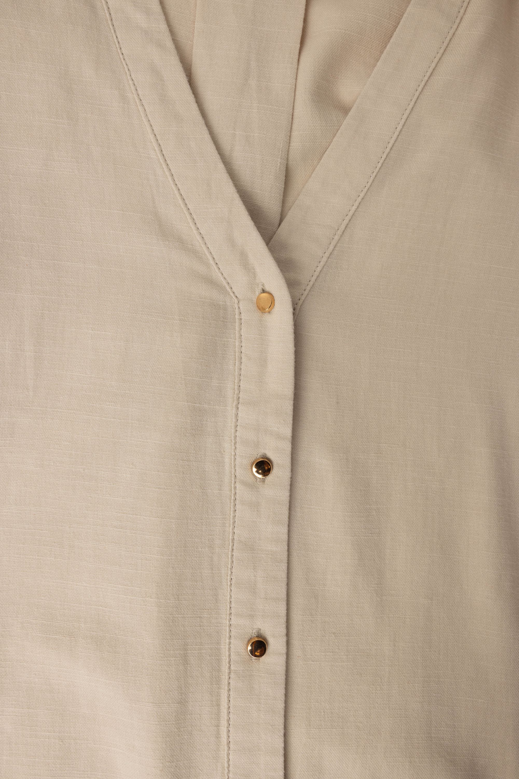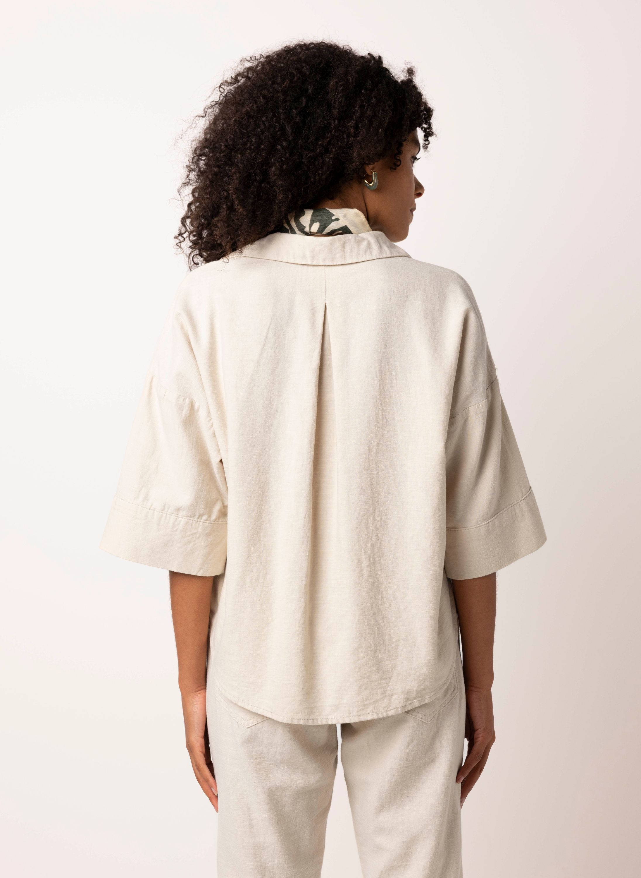 Deze blouse met klassieke kraag, knoopsluiting en halflange mouwen is een tijdloos item.