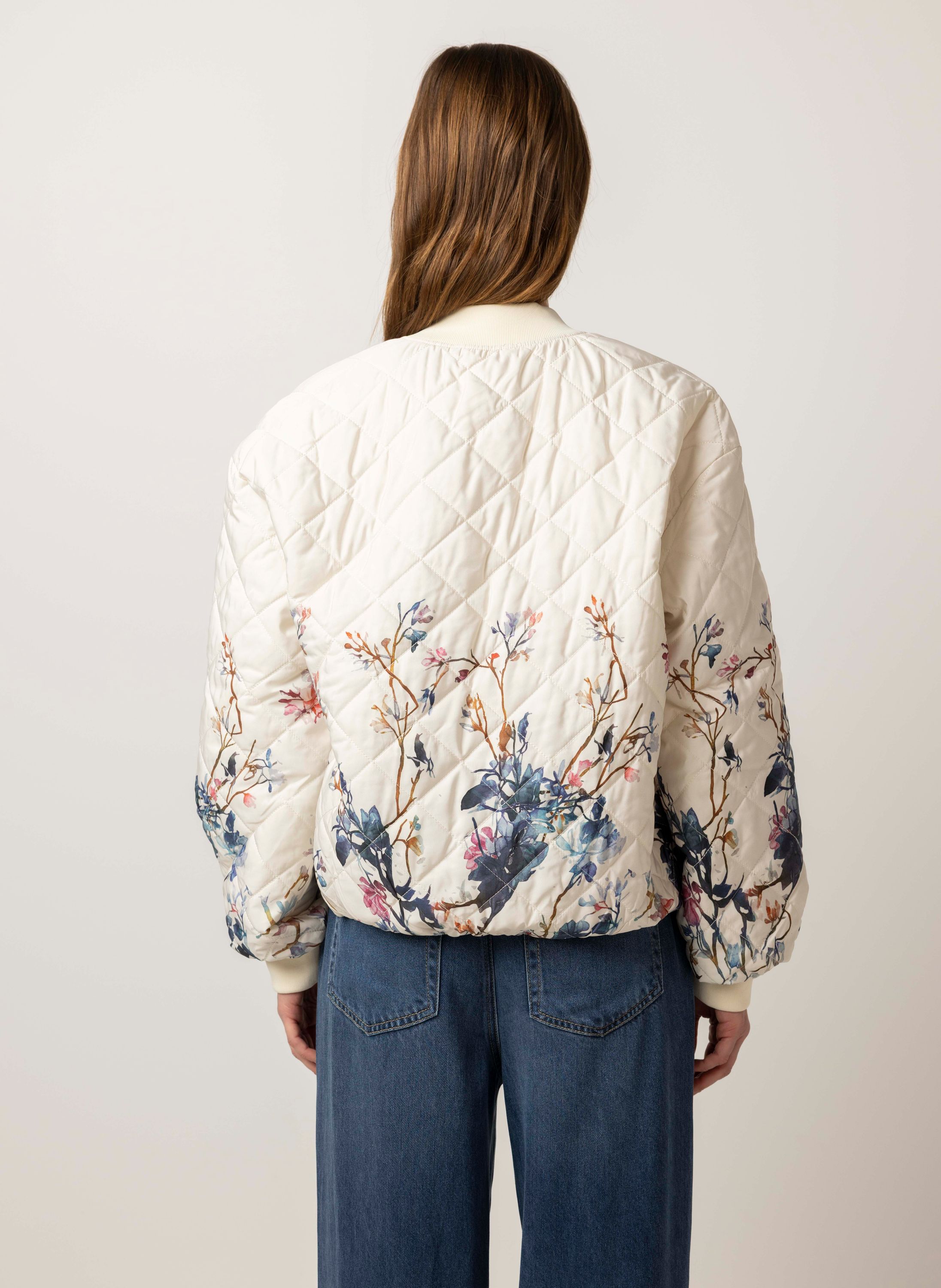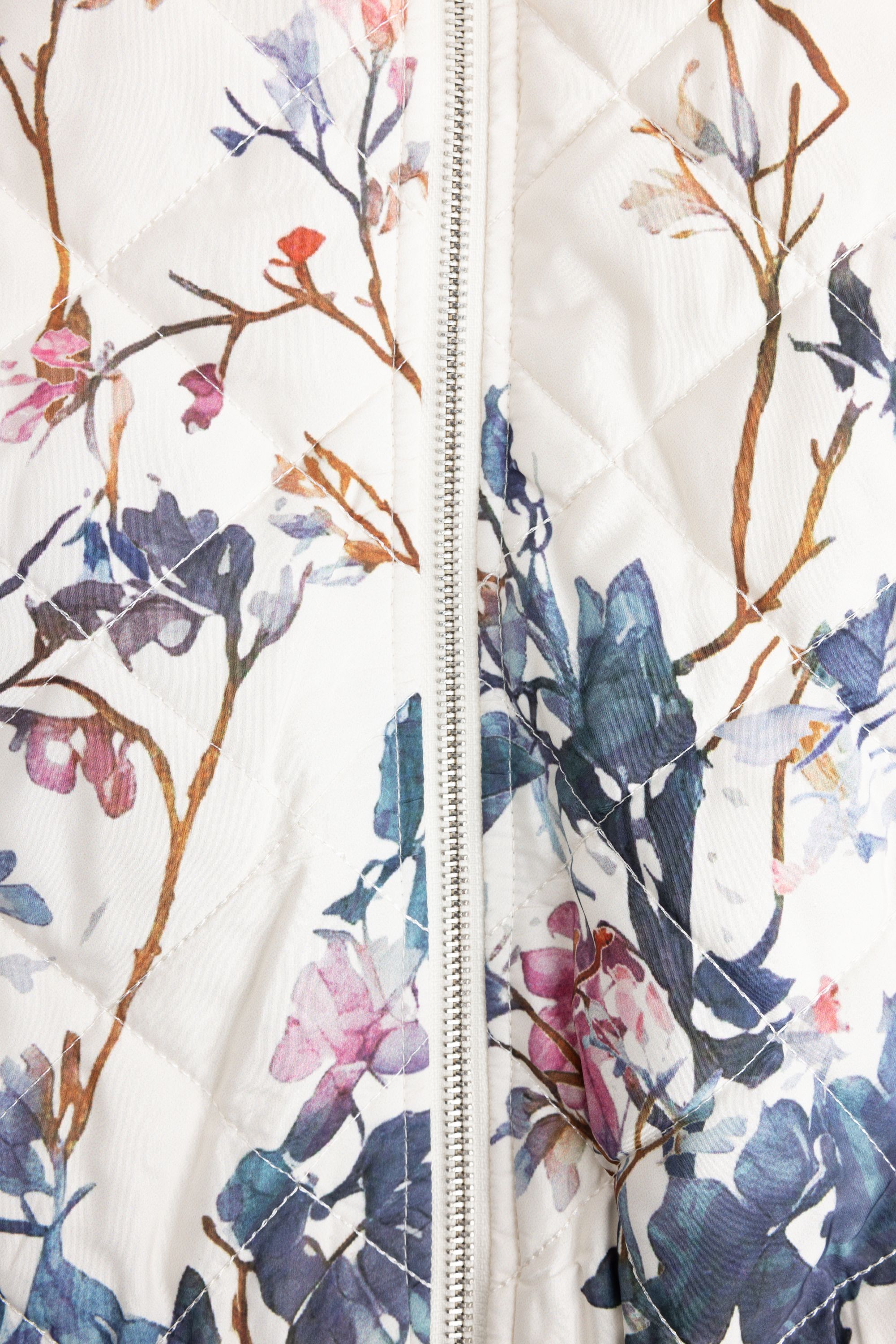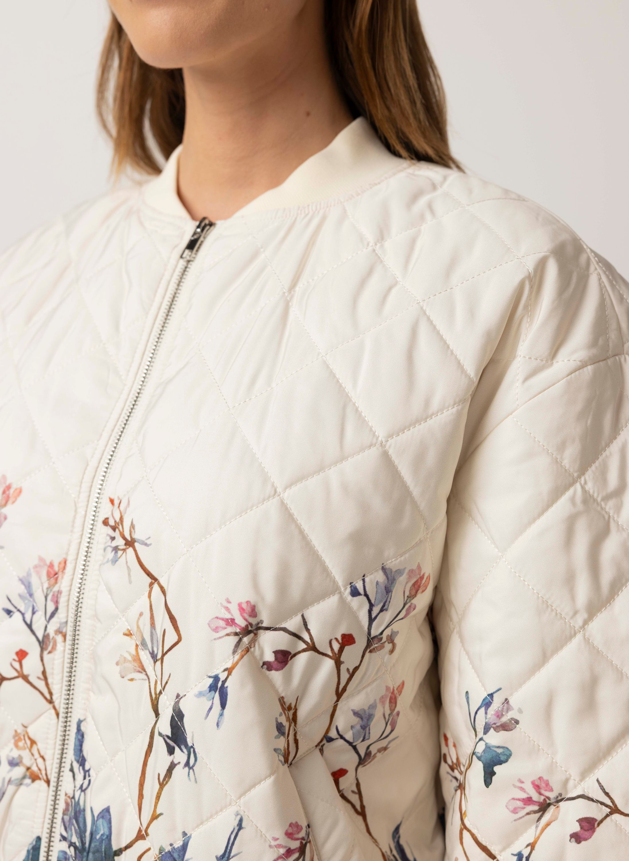 Deze bomberjas heeft een subtiele bloemenprint voor een vrouwelijke uitstraling. De ronde hals, ritssluiting, steekzakken en boorden aan de mouwen en onderzijde zorgen voor een comfortabele pasvorm. Ideaal als stijlvol tussenjasje voor het seizoen.