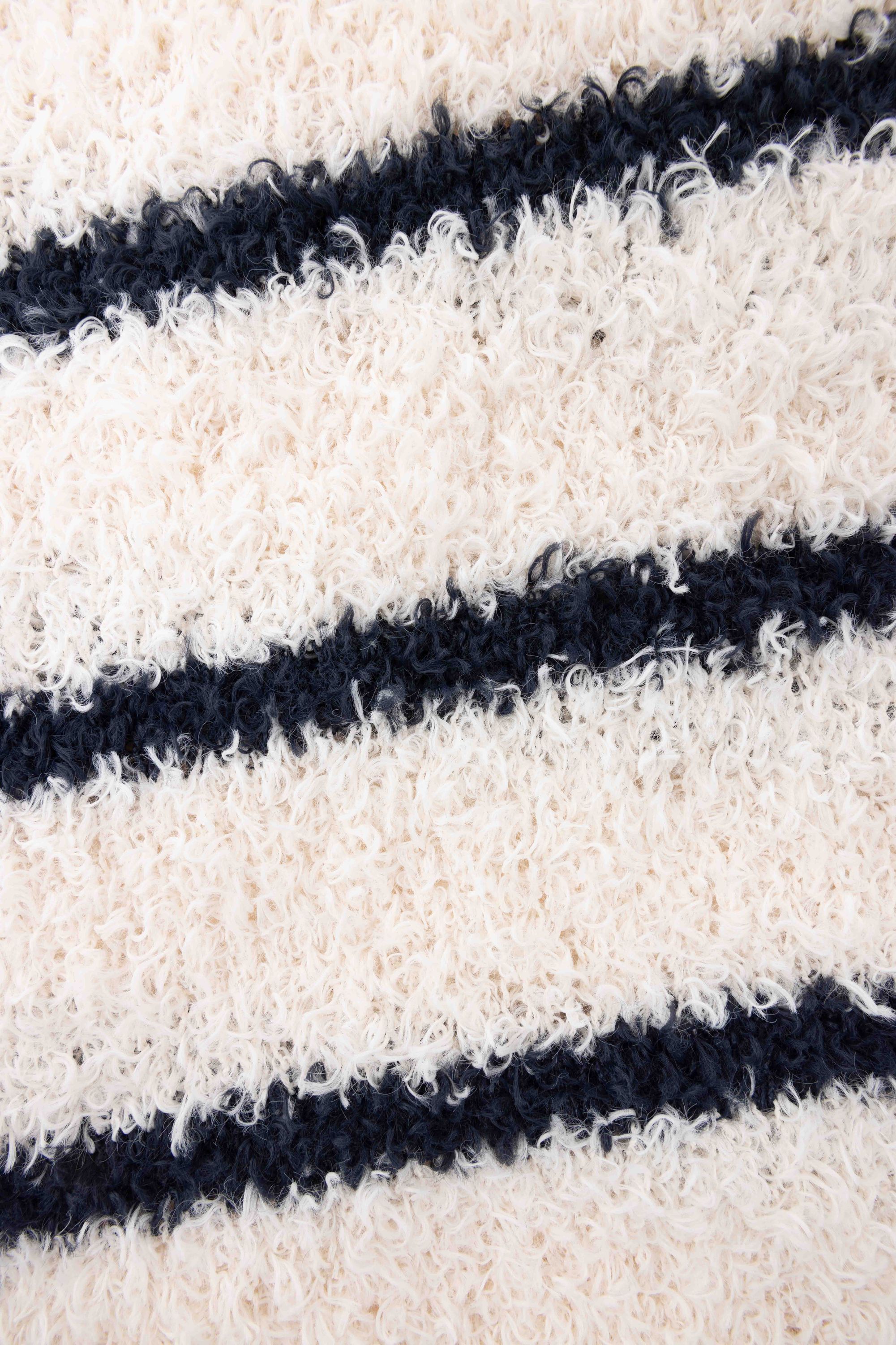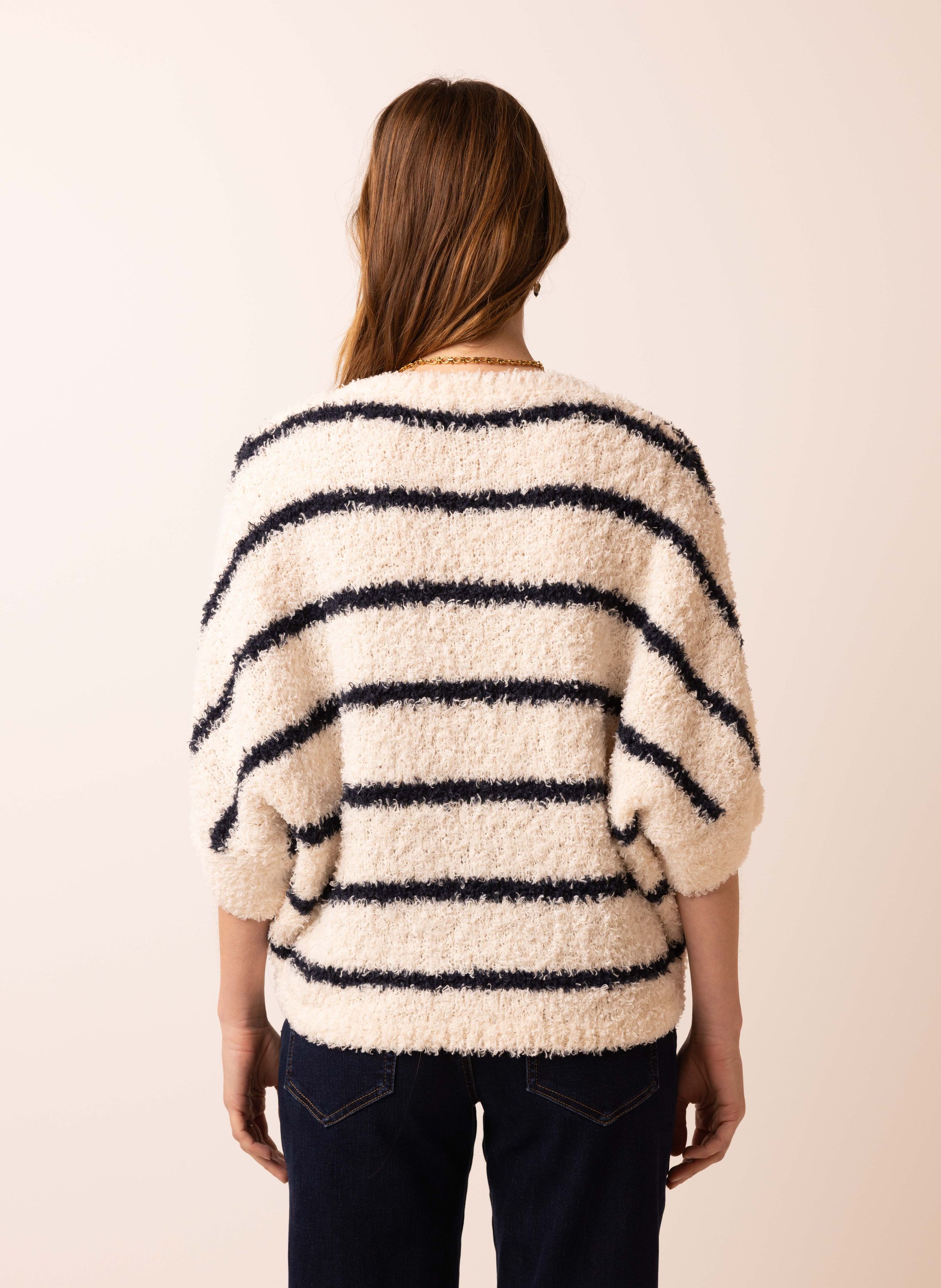 Deze gebreide trui met ronde hals heeft driekwart mouwen en een zachte structuur.