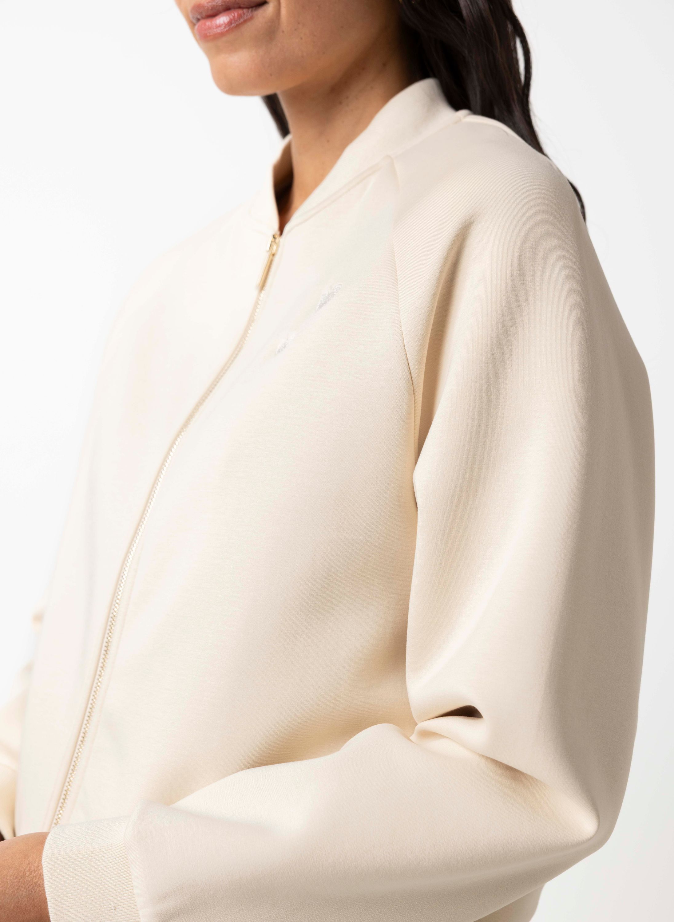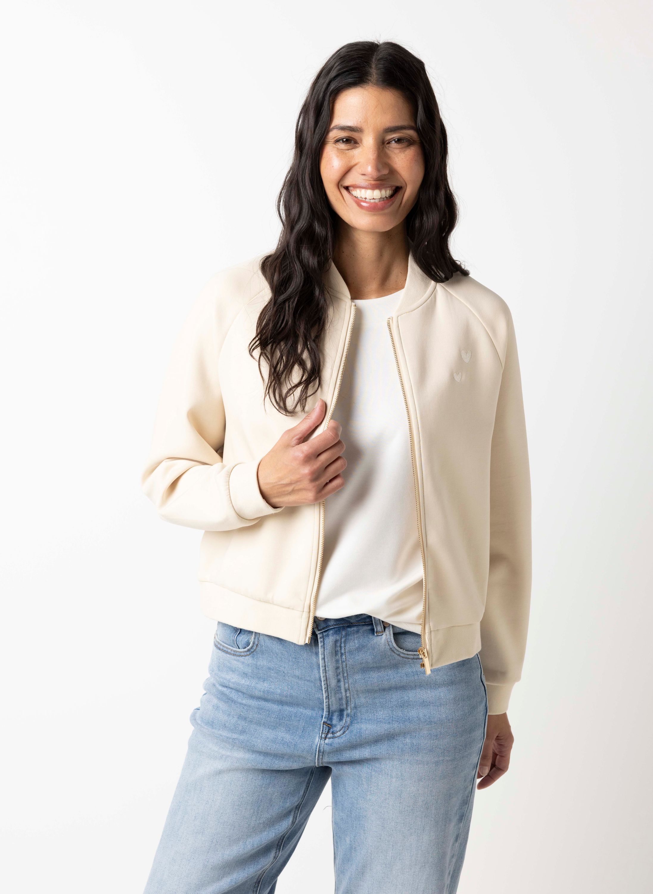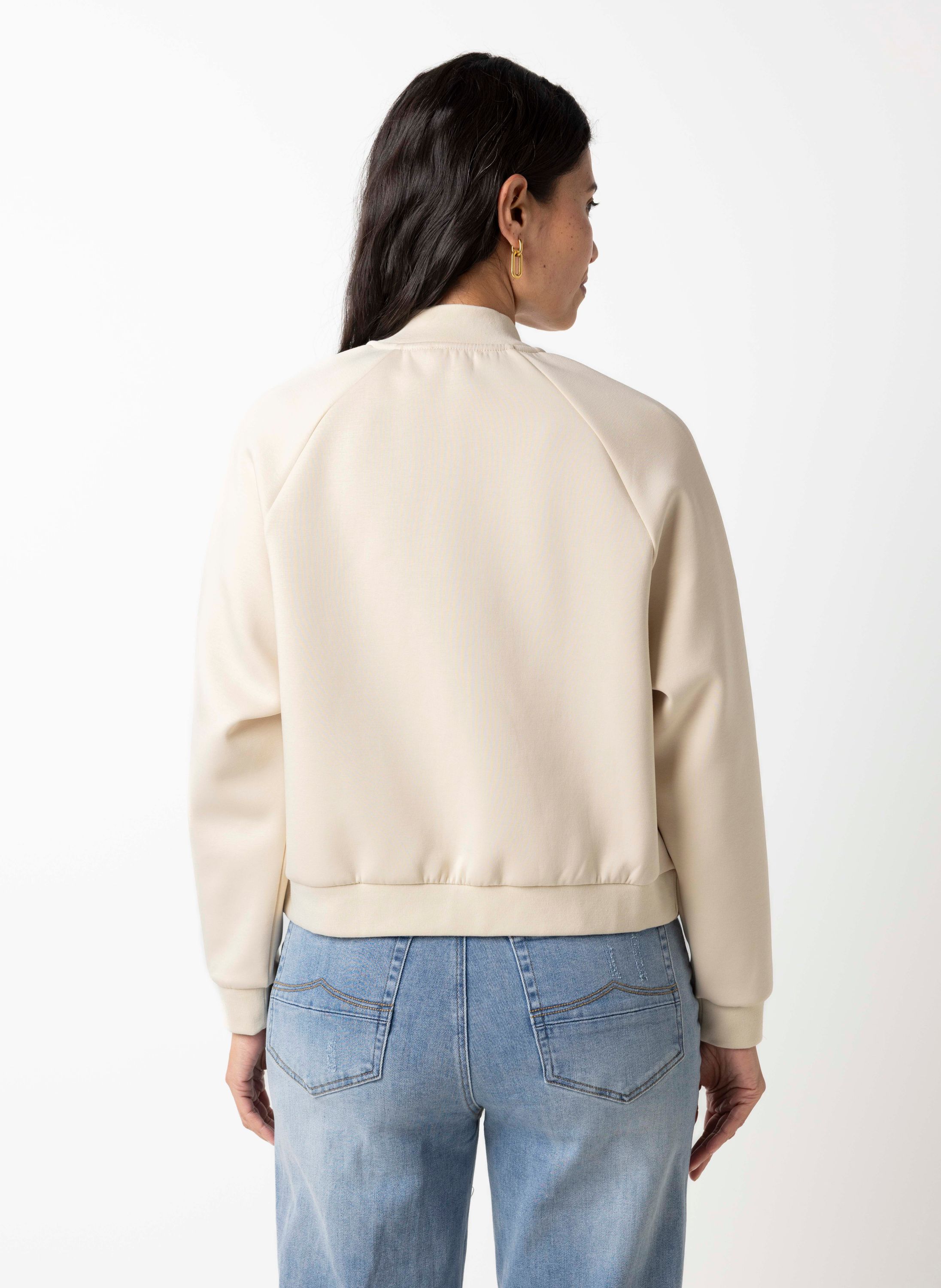 Dit jasje met ronde hals, ritssluiting en lange mouwen heeft een iets dikkere stof en is perfect voor de lente.
