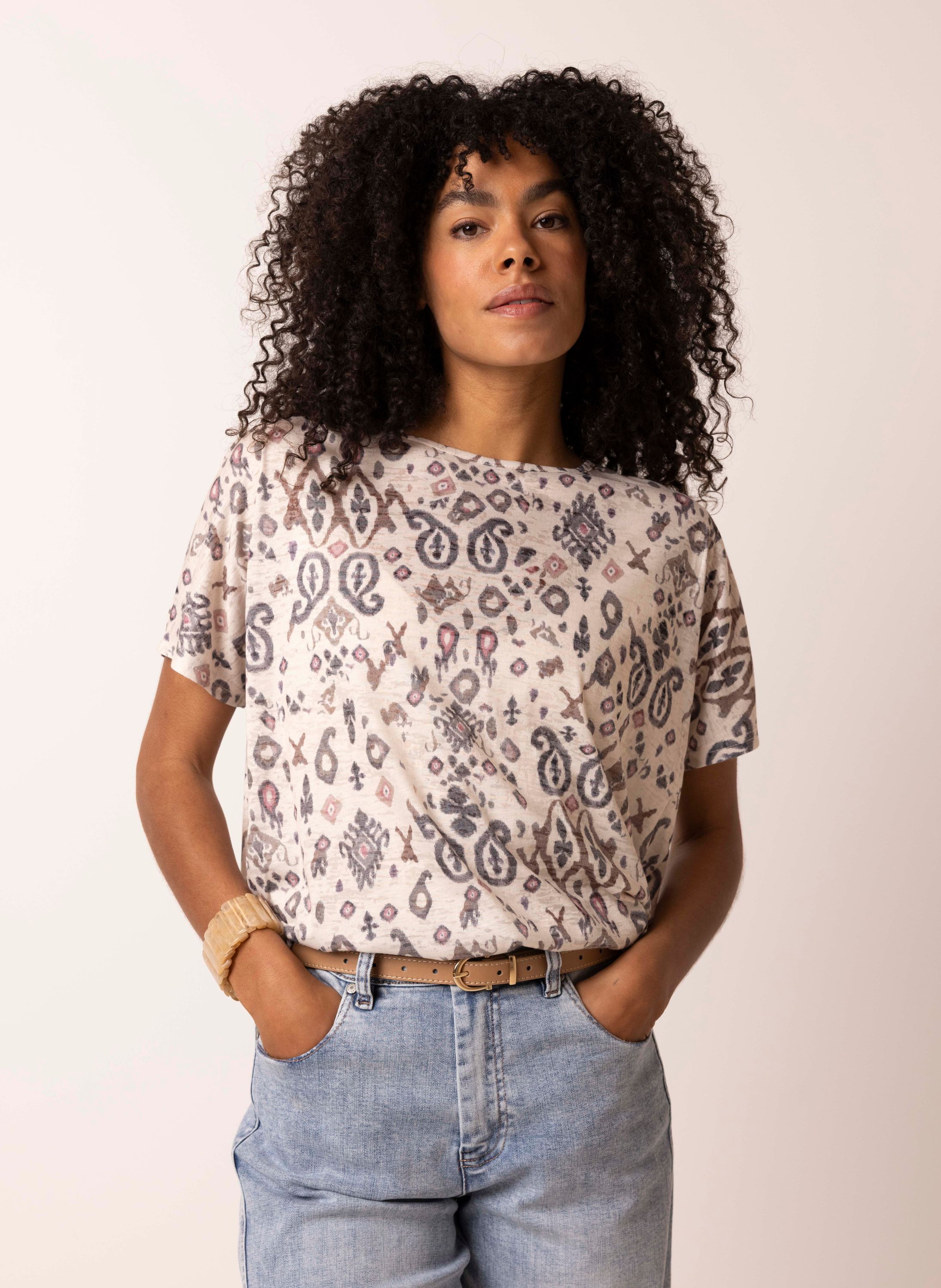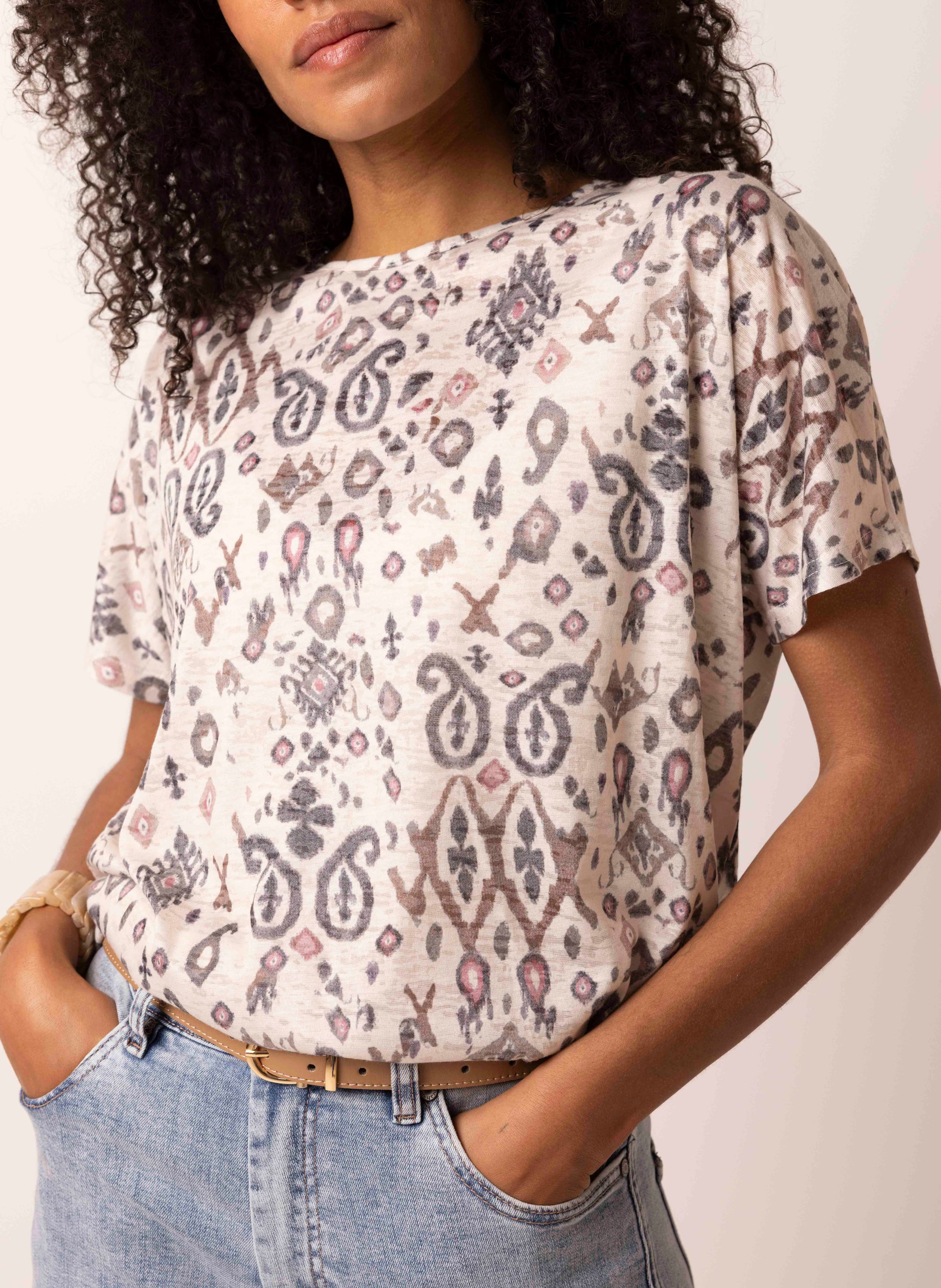 Ecru shirt met grafische print