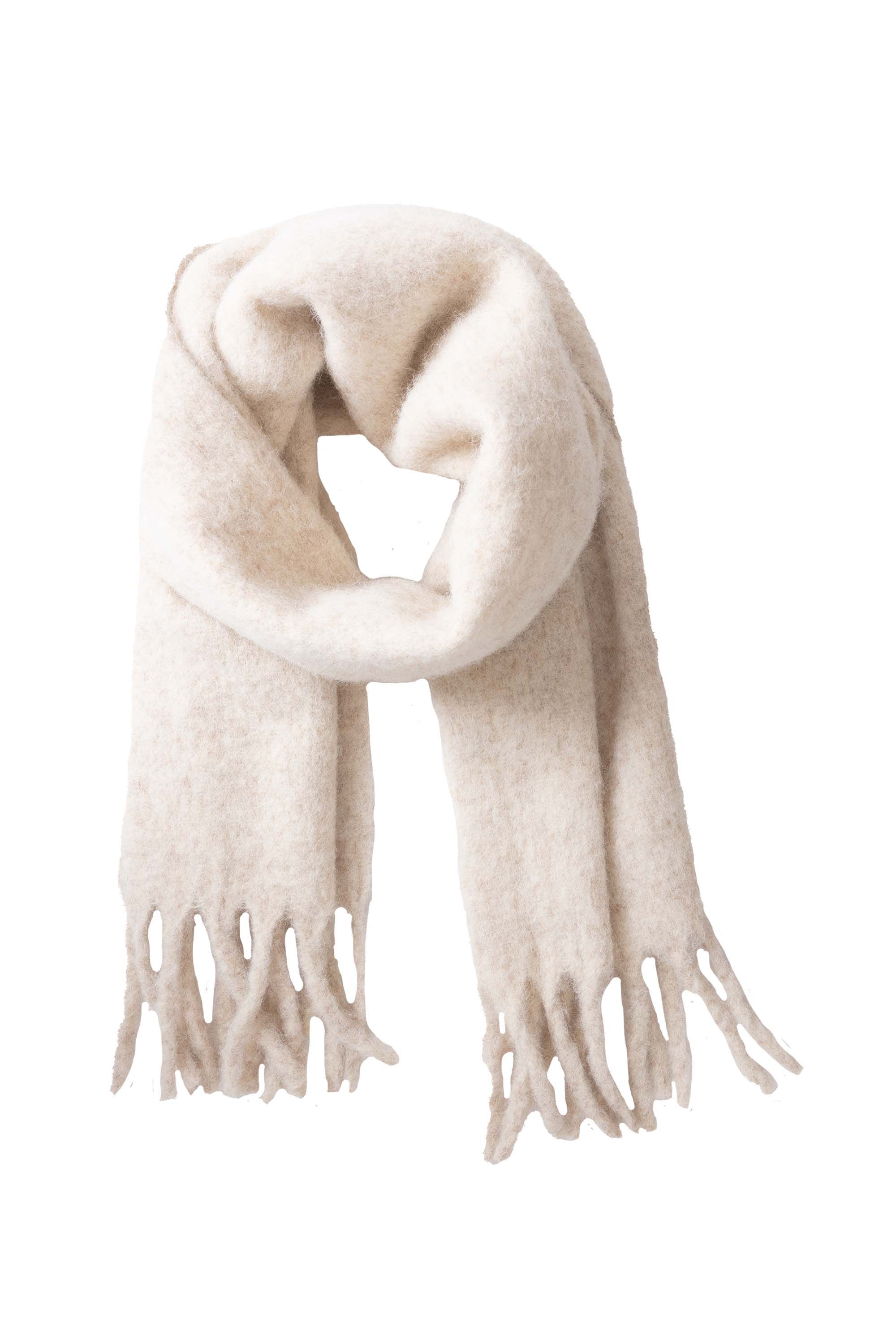 Deze zachte sjaal met franjes is een warm en stijlvol laagje voor het najaar.