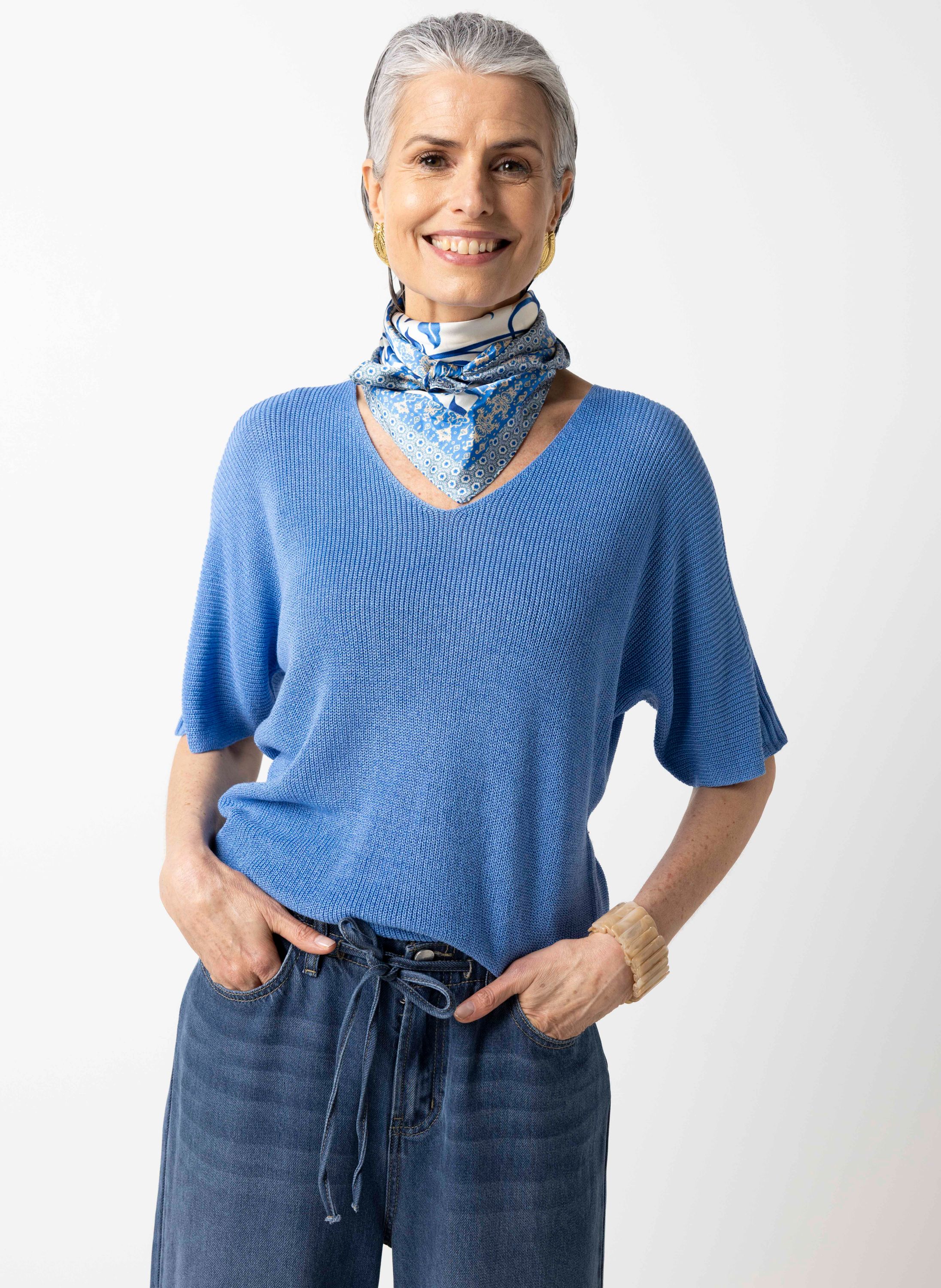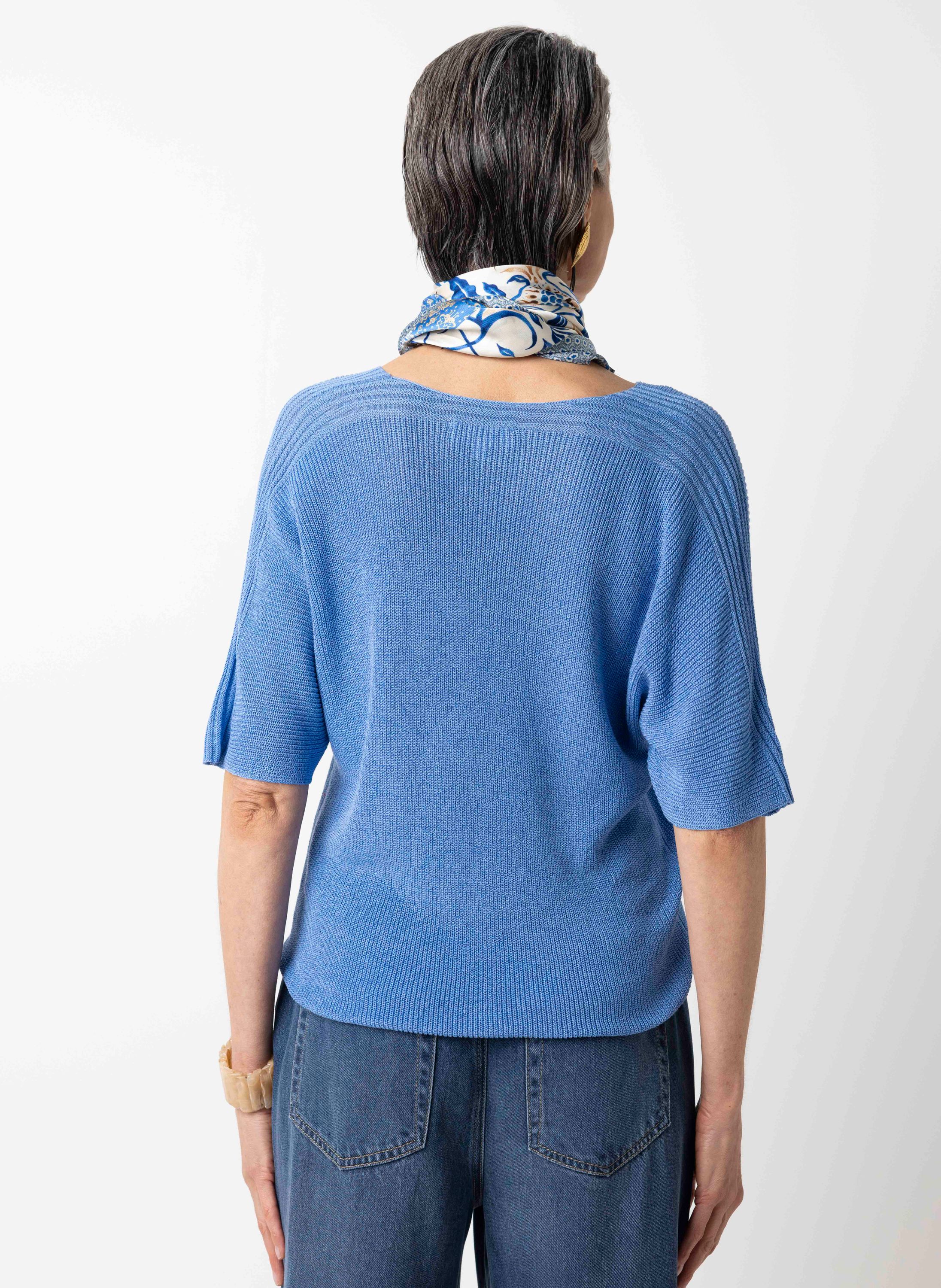 Fijngebreid blauwe trui met lurex