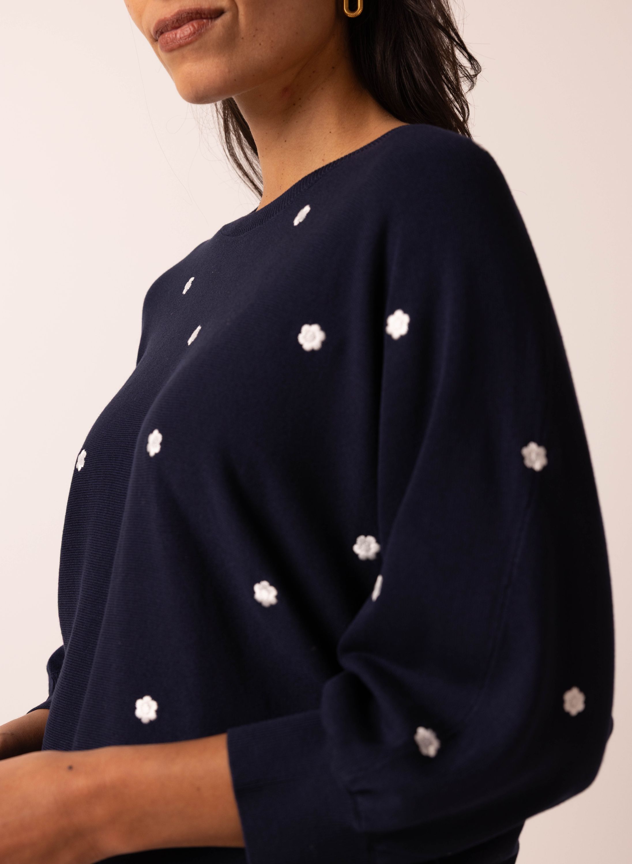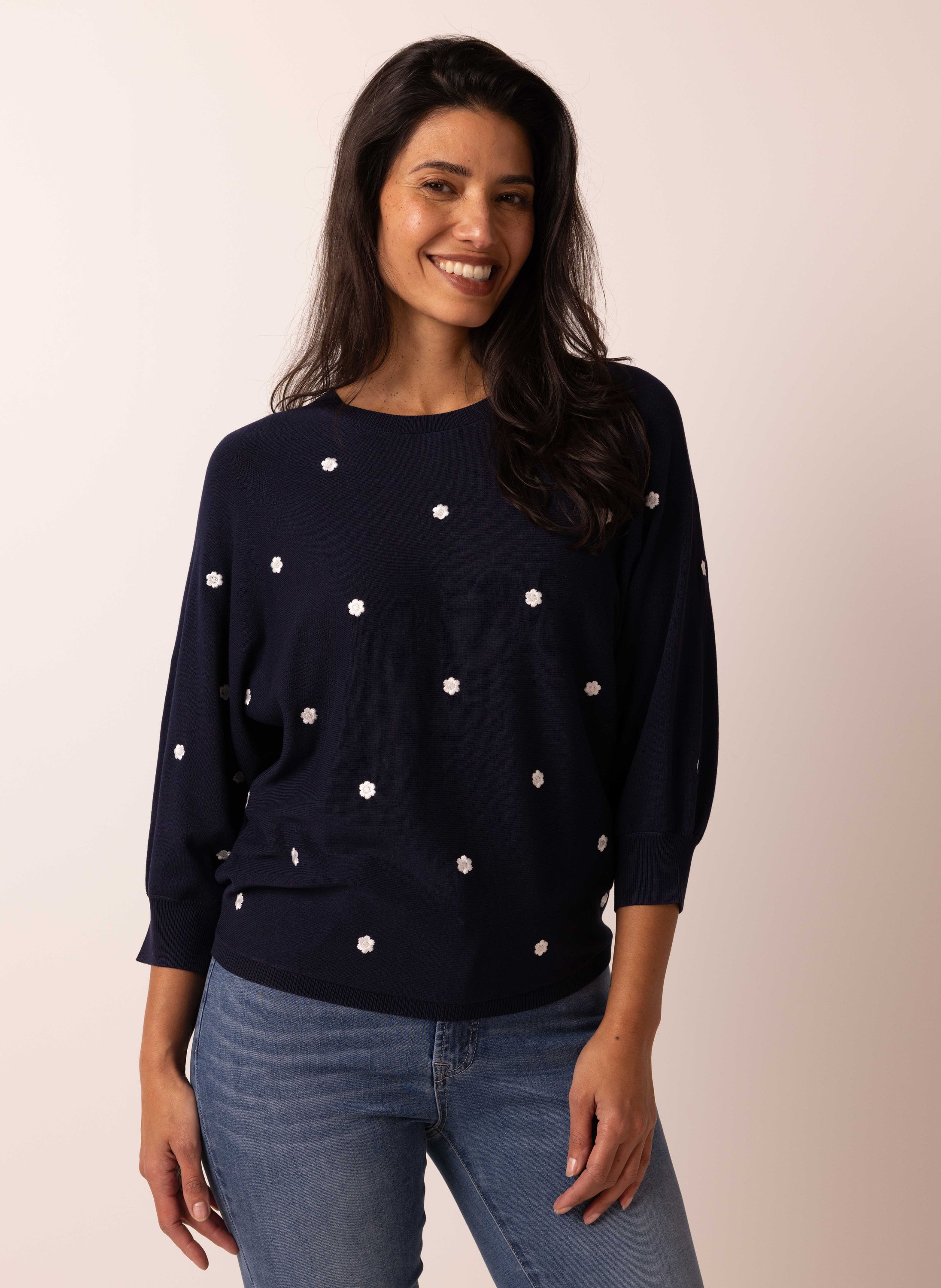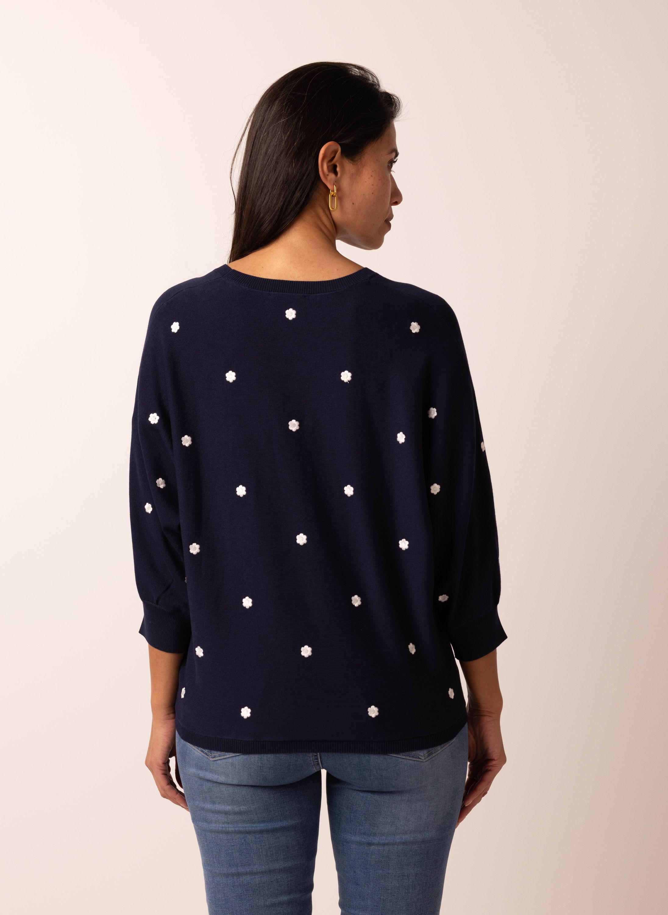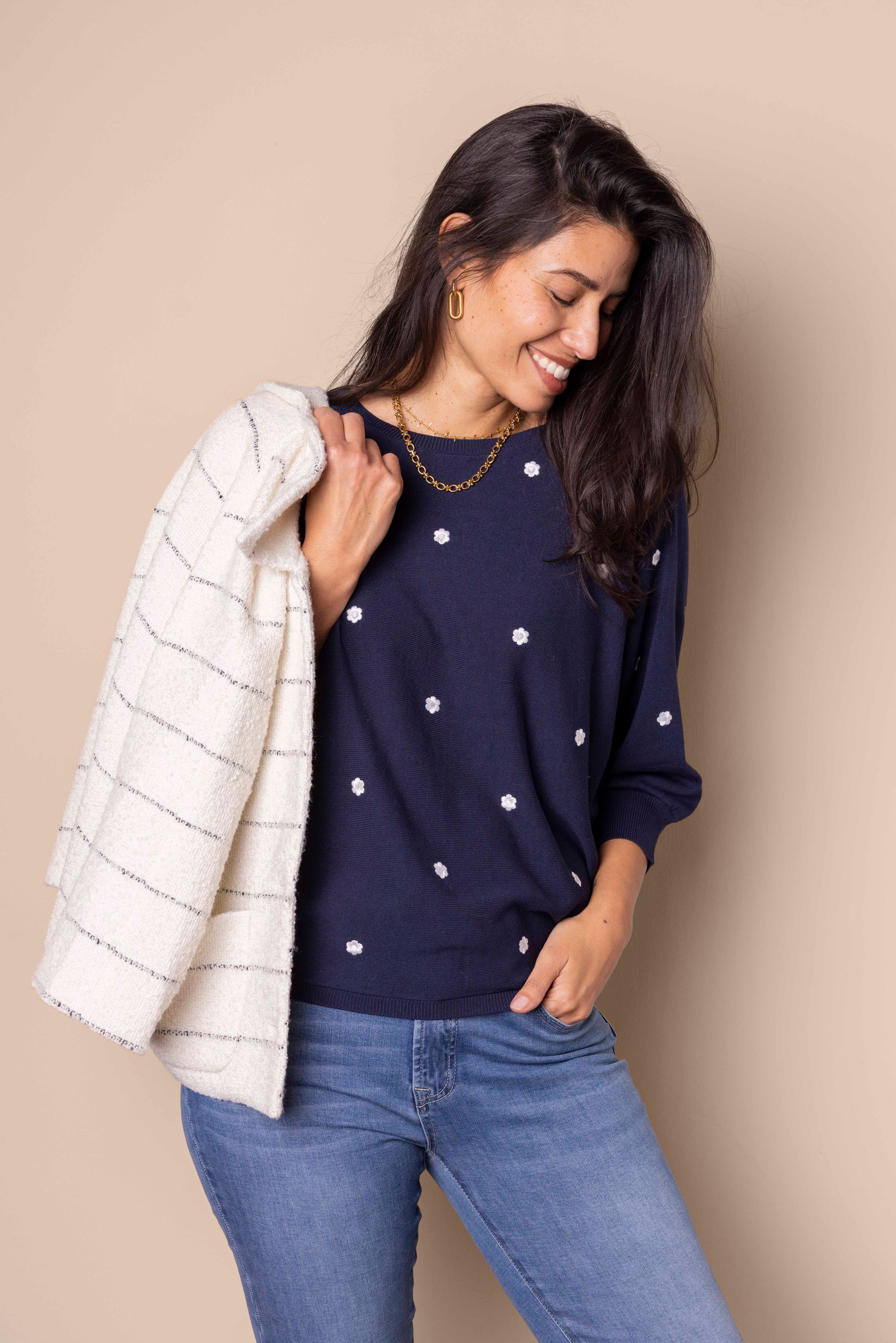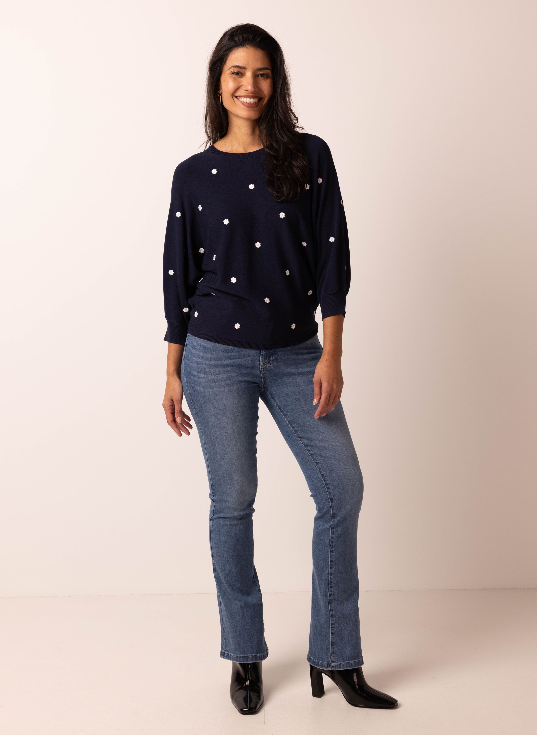 Deze fijngebreide trui met ronde hals heeft halflange ballonmouwen voor een zachte, vrouwelijke uitstraling.