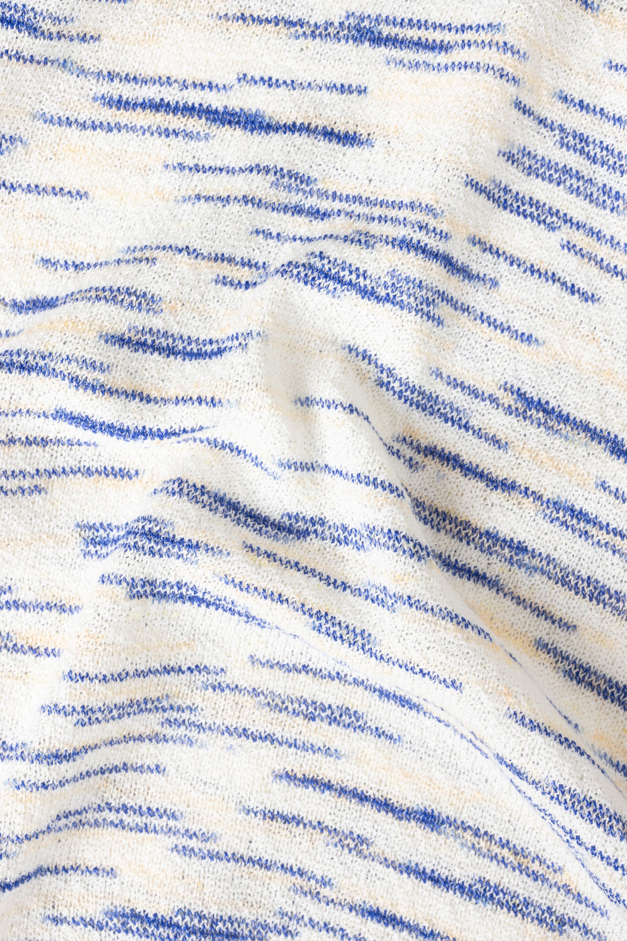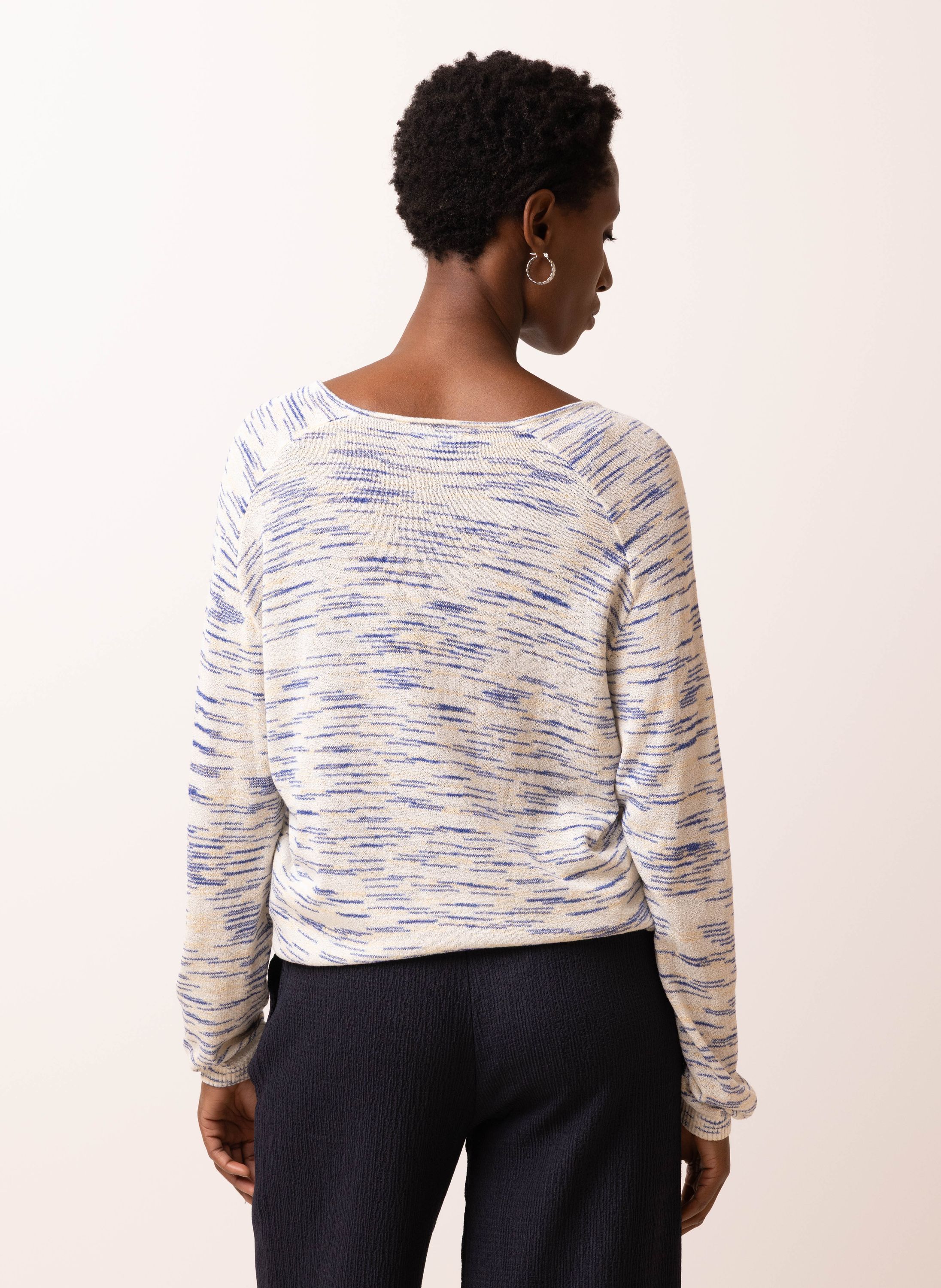 Deze fijngebreide trui met V-hals heeft lange mouwen.
