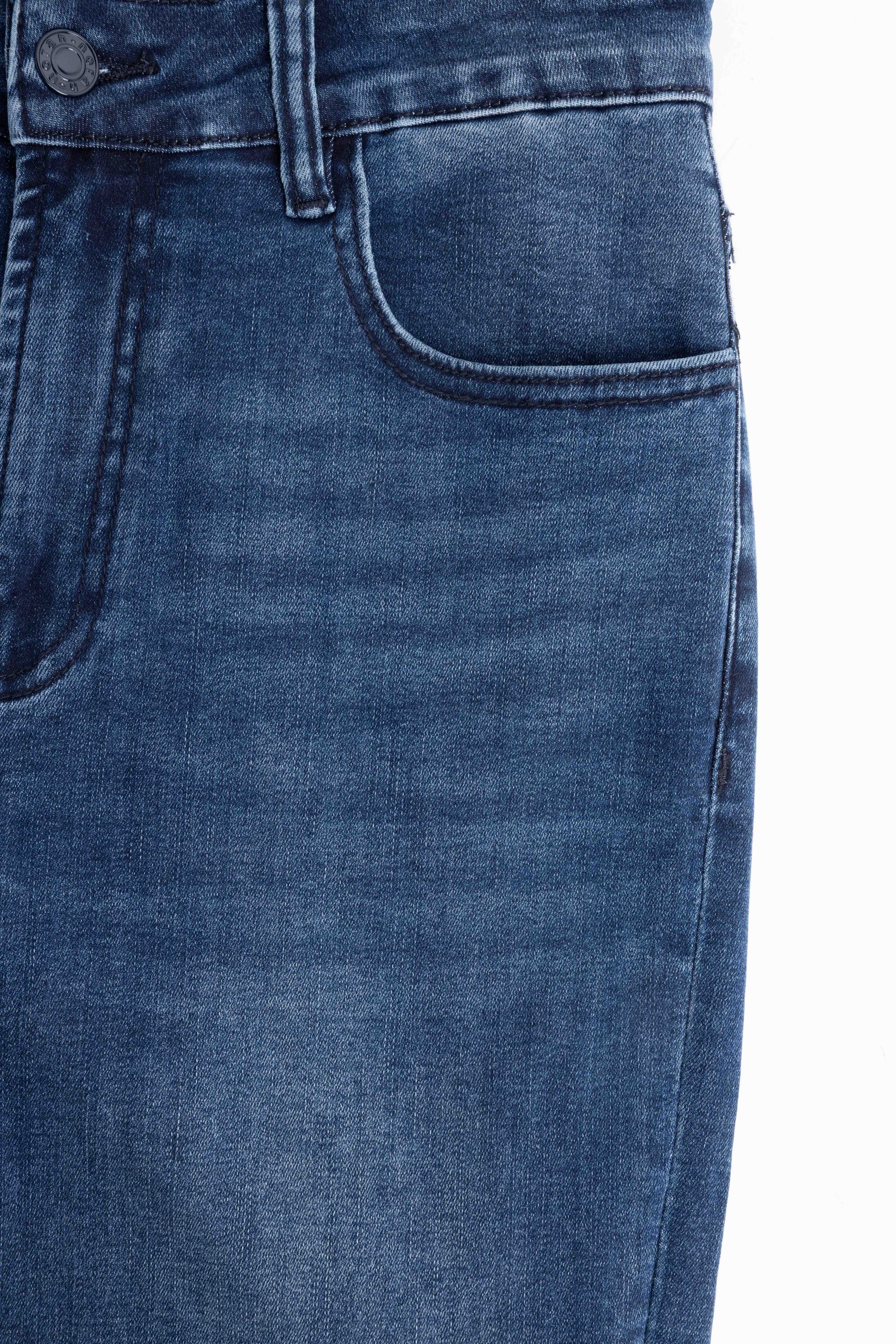 5-pocket high waist flared fit denim jeans met rits- en knoopsluiting in lengtemaat 28. Deze jeans is ideaal voor vrouwen met een lengte kleiner dan 1.65 meter. Deze jeans is ook verkrijgbaar in lengtemaat 30, lengtemaat 32, lengtemaat 34 en lengtemaat 36.