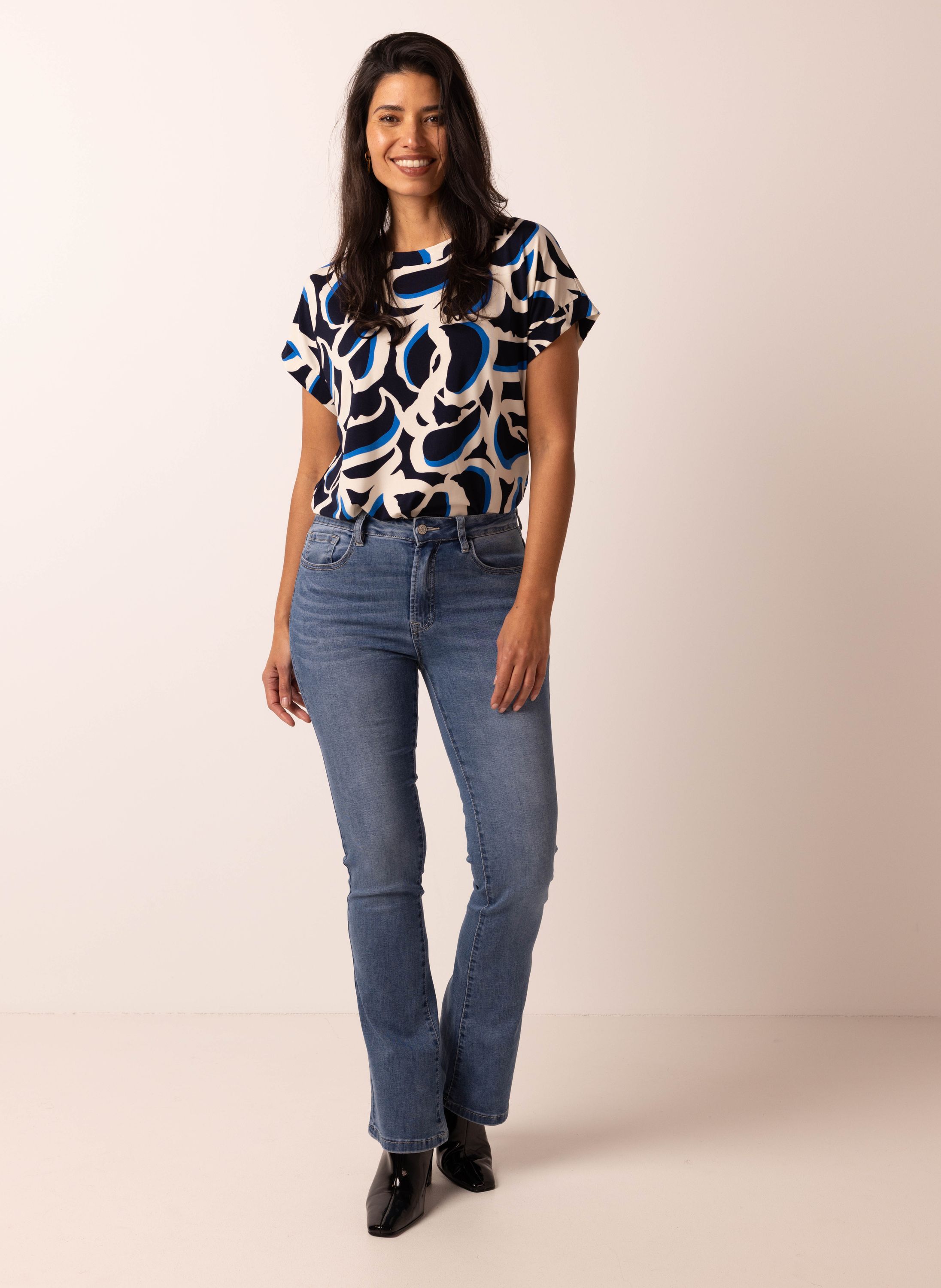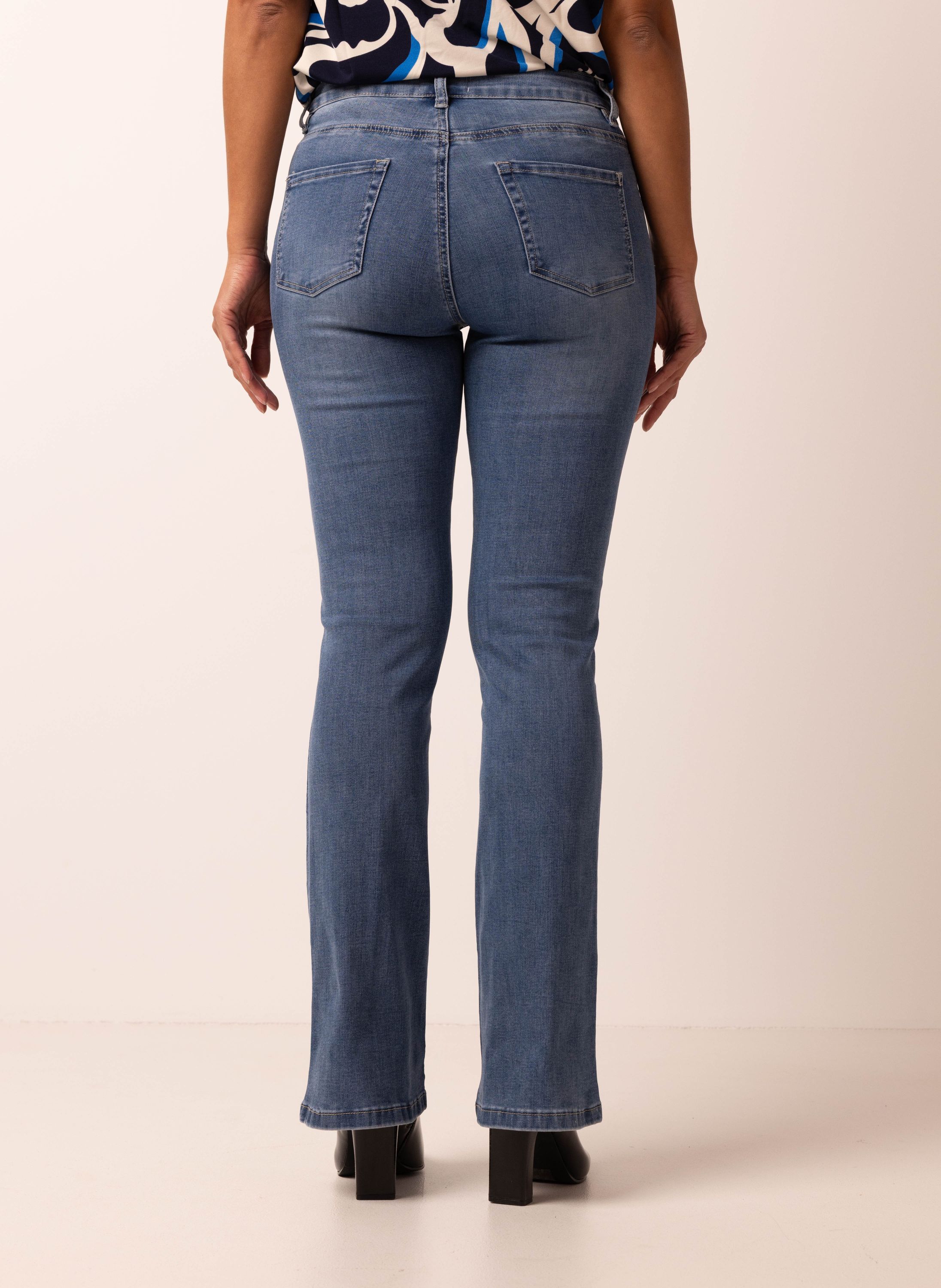 5-pocket high waist flared fit denim jeans met rits- en knoopsluiting in lengtemaat 34. Deze jeans is ideaal voor vrouwen met een lengte tussen de 1.75 en 1.80 meter. De jeans is ook verkrijgbaar in lengtemaat 28, lengtemaat 30, lengtemaat 32 en lengtemaat 36.