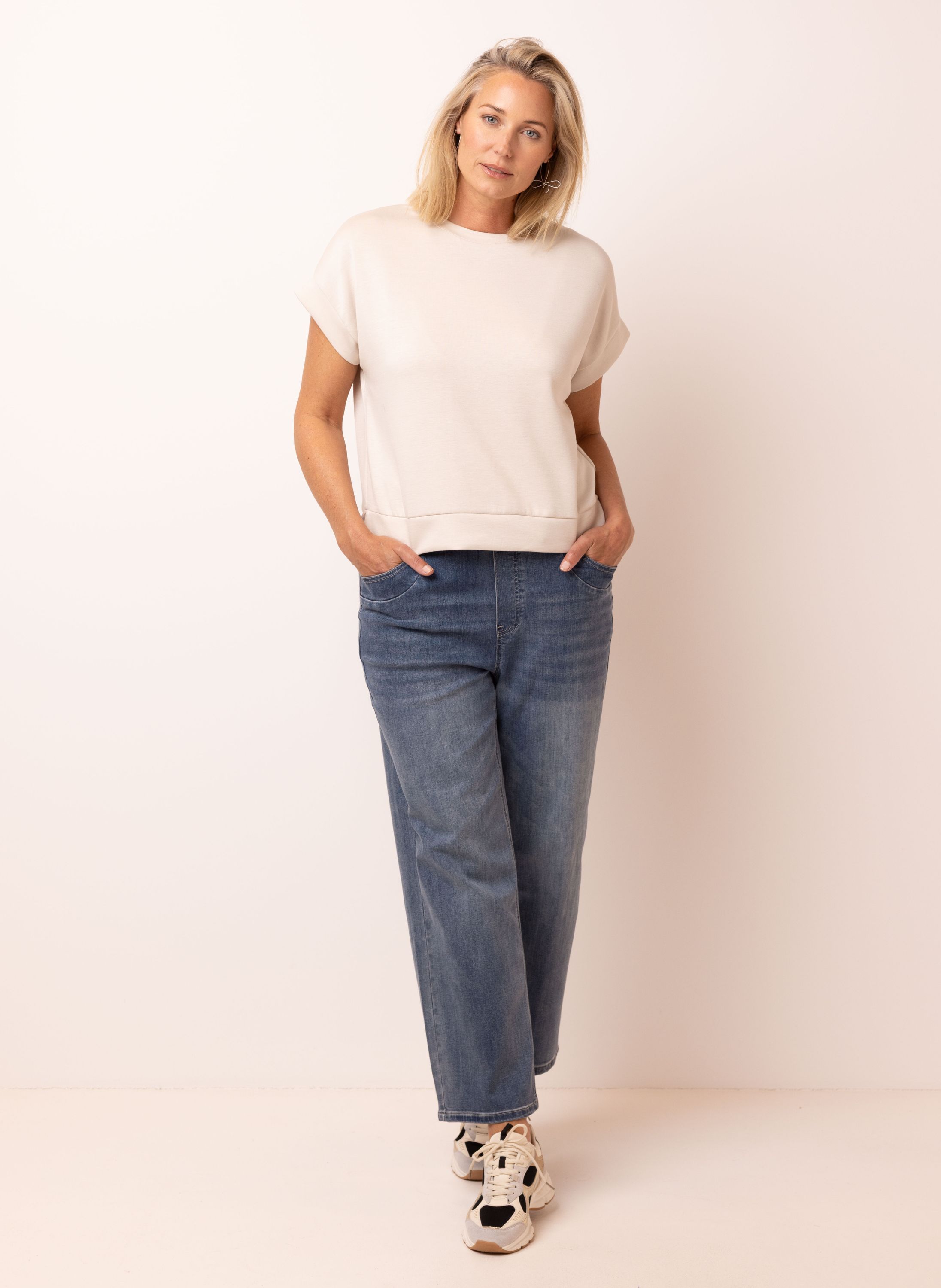 Gebroken wit shirt met splitten
