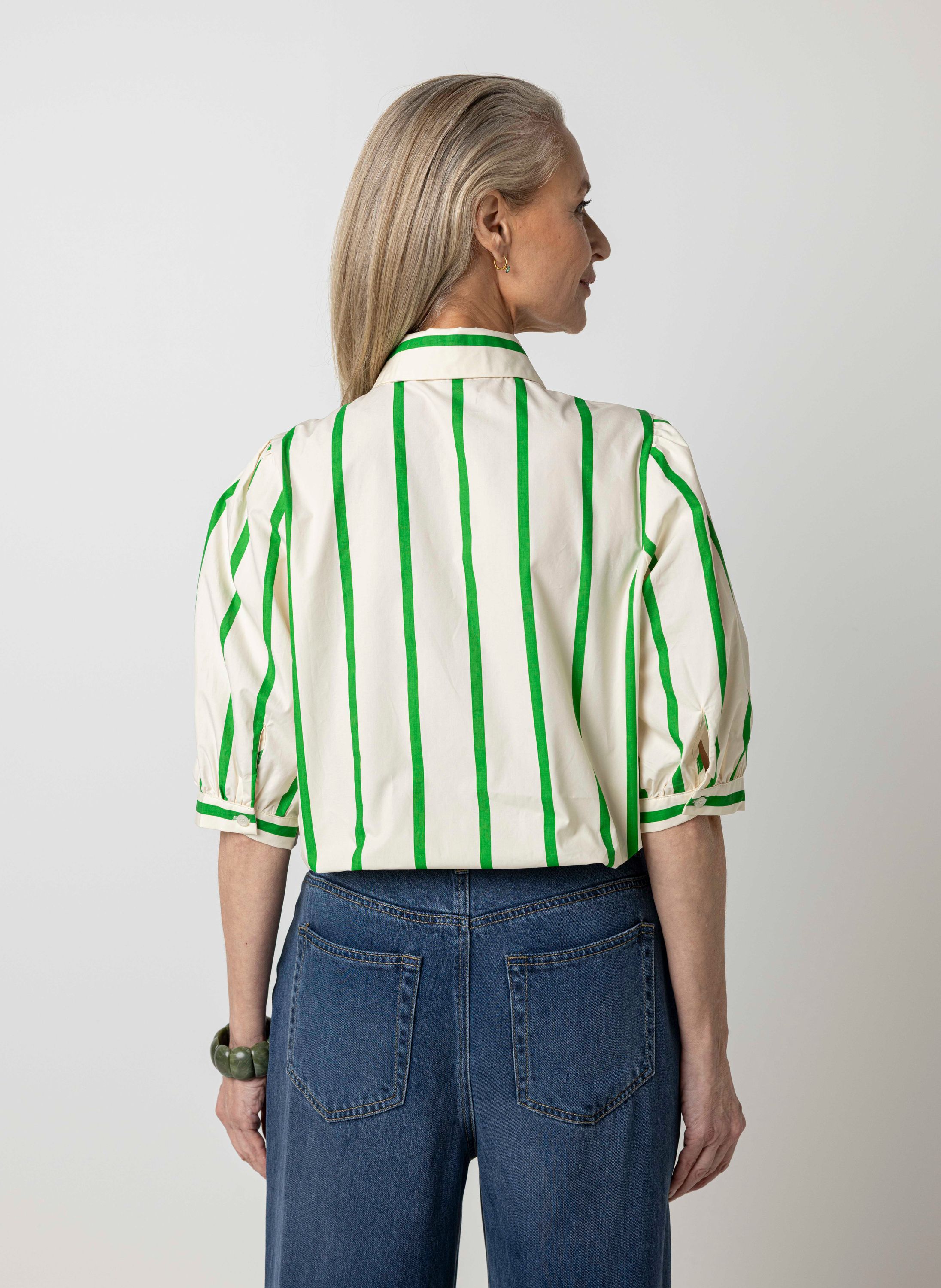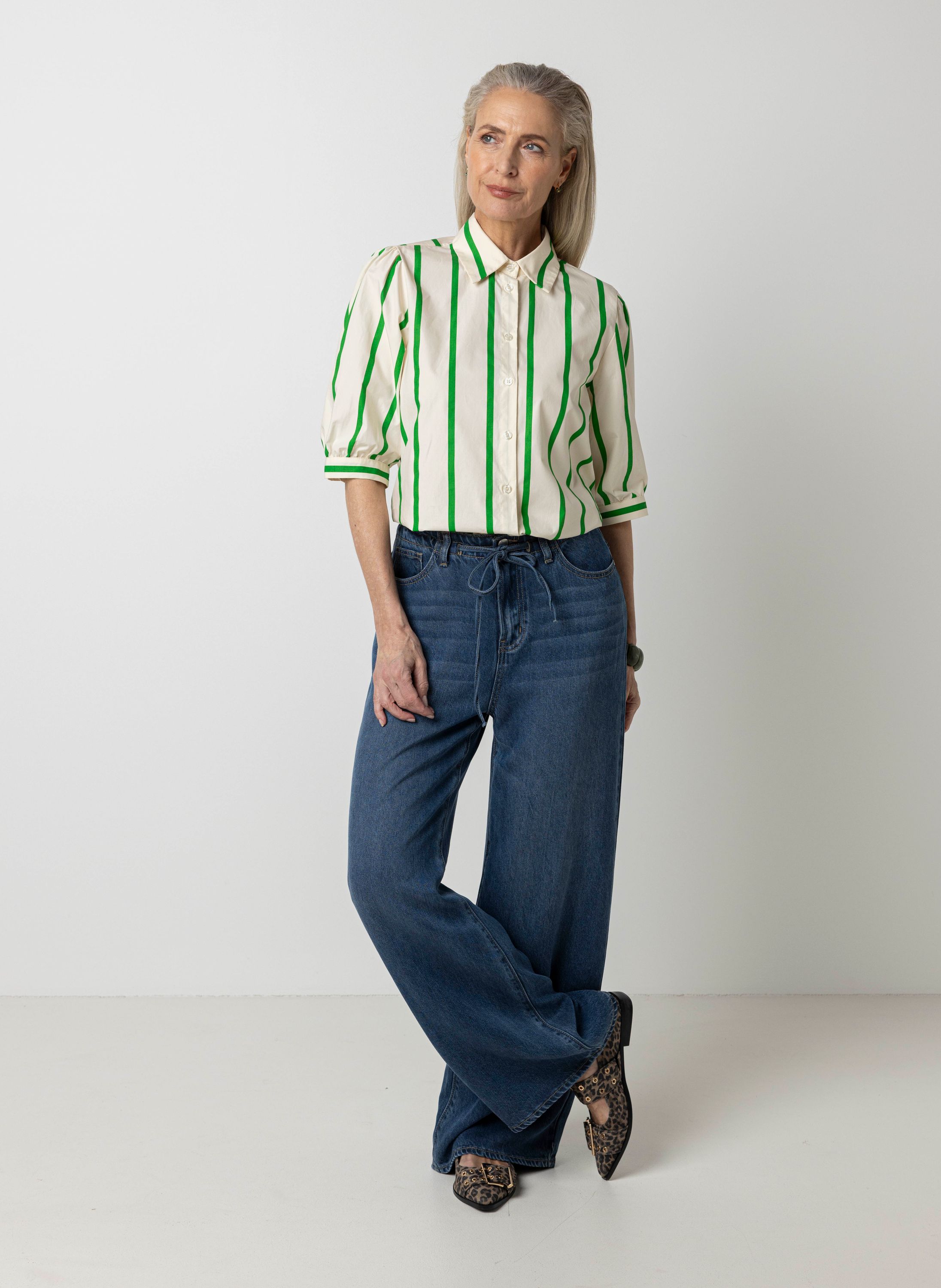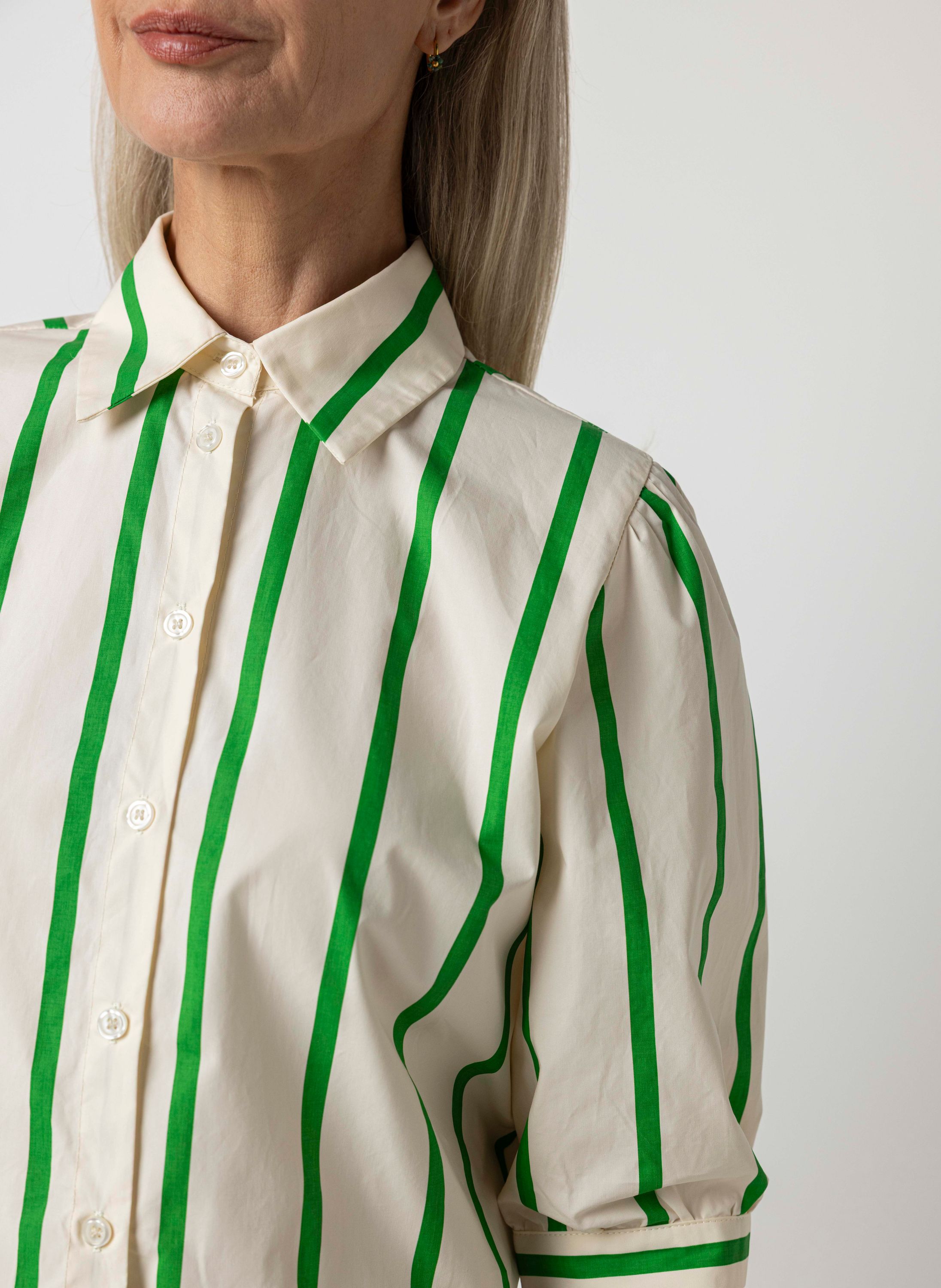 Gestreepte ecru/groene blouse