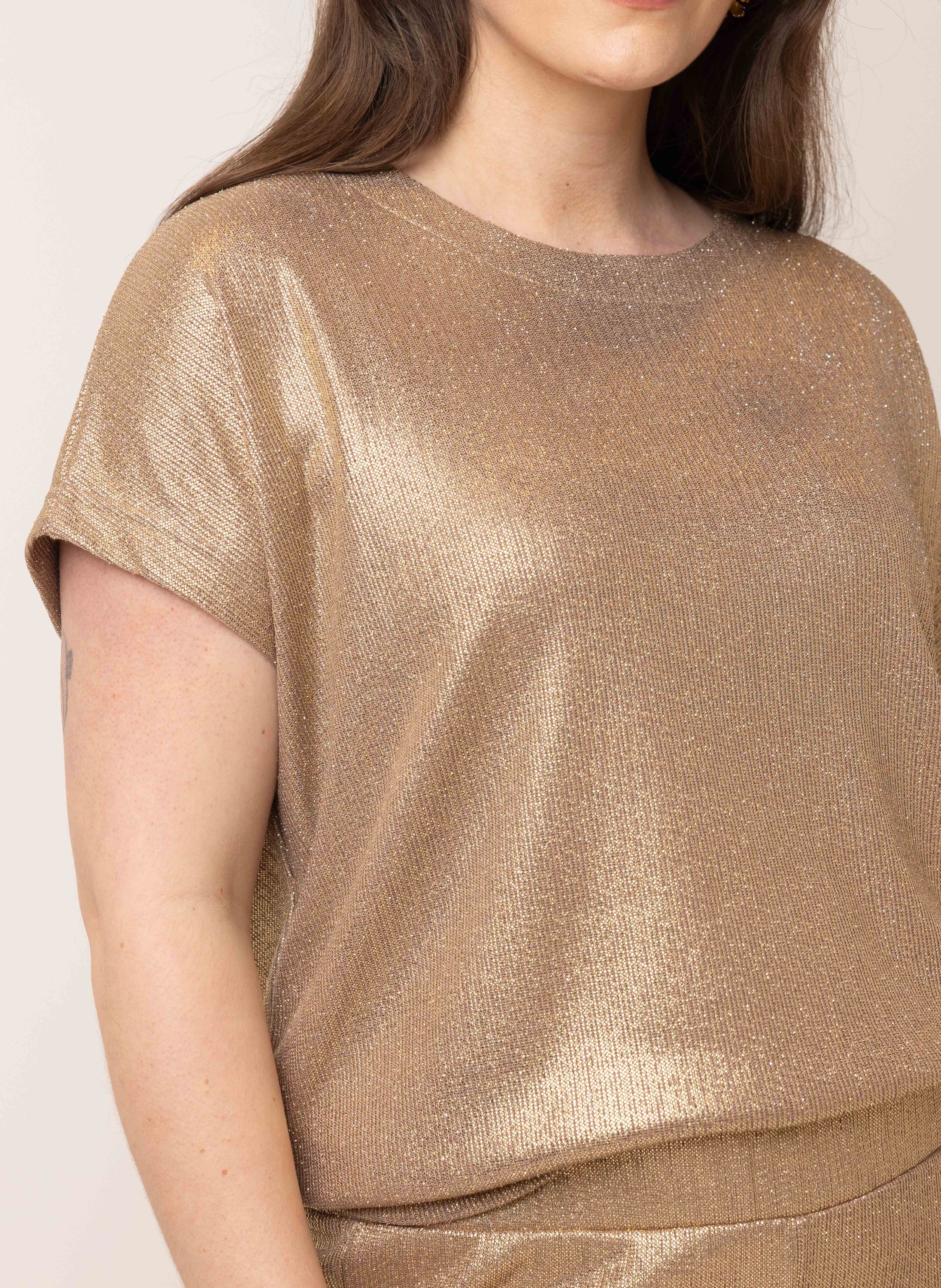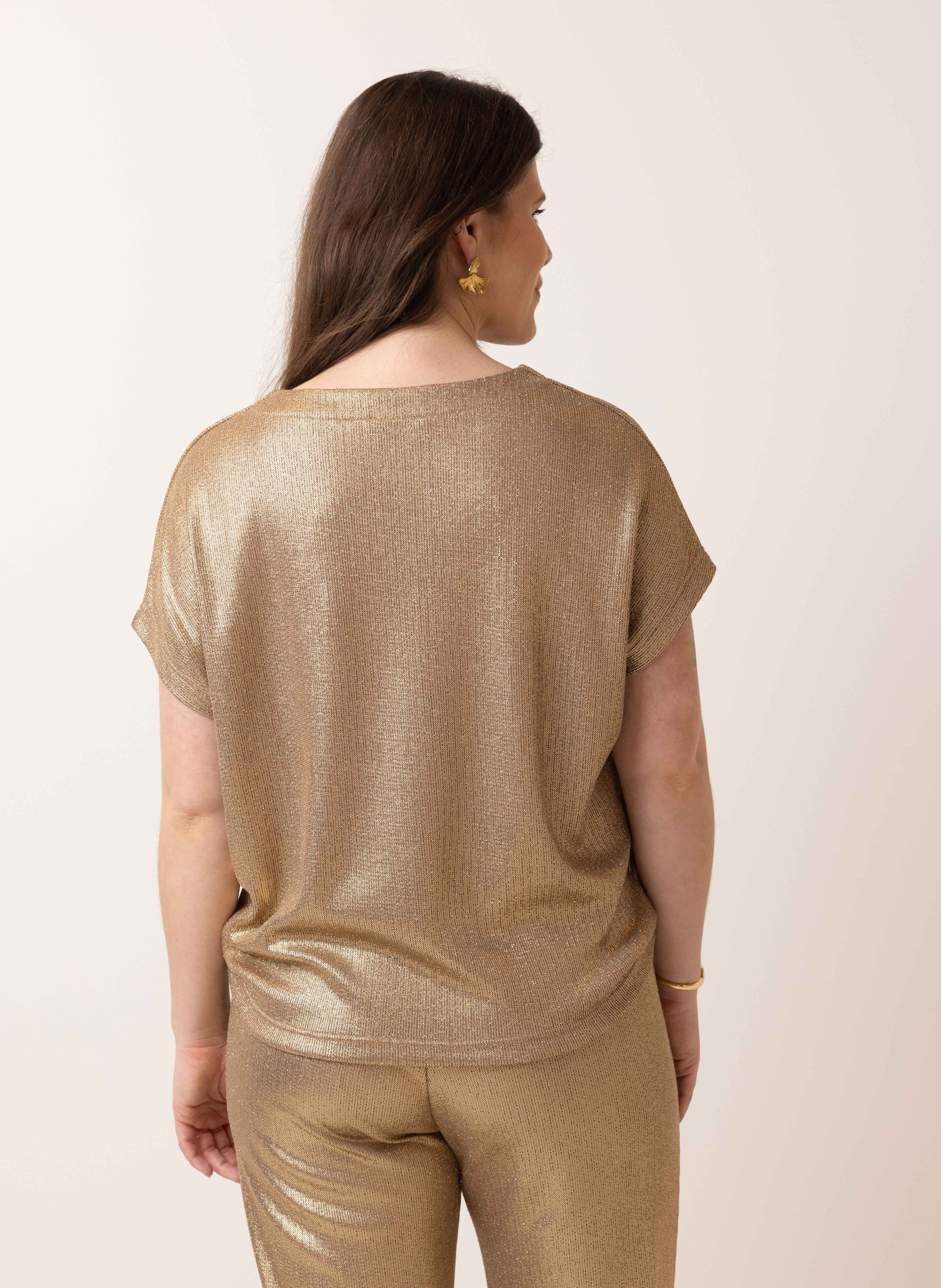 Dit shirt met ronde hals heeft aangeknipte korte mouwen en bevat veel stretch. Een favoriet van Libelle.