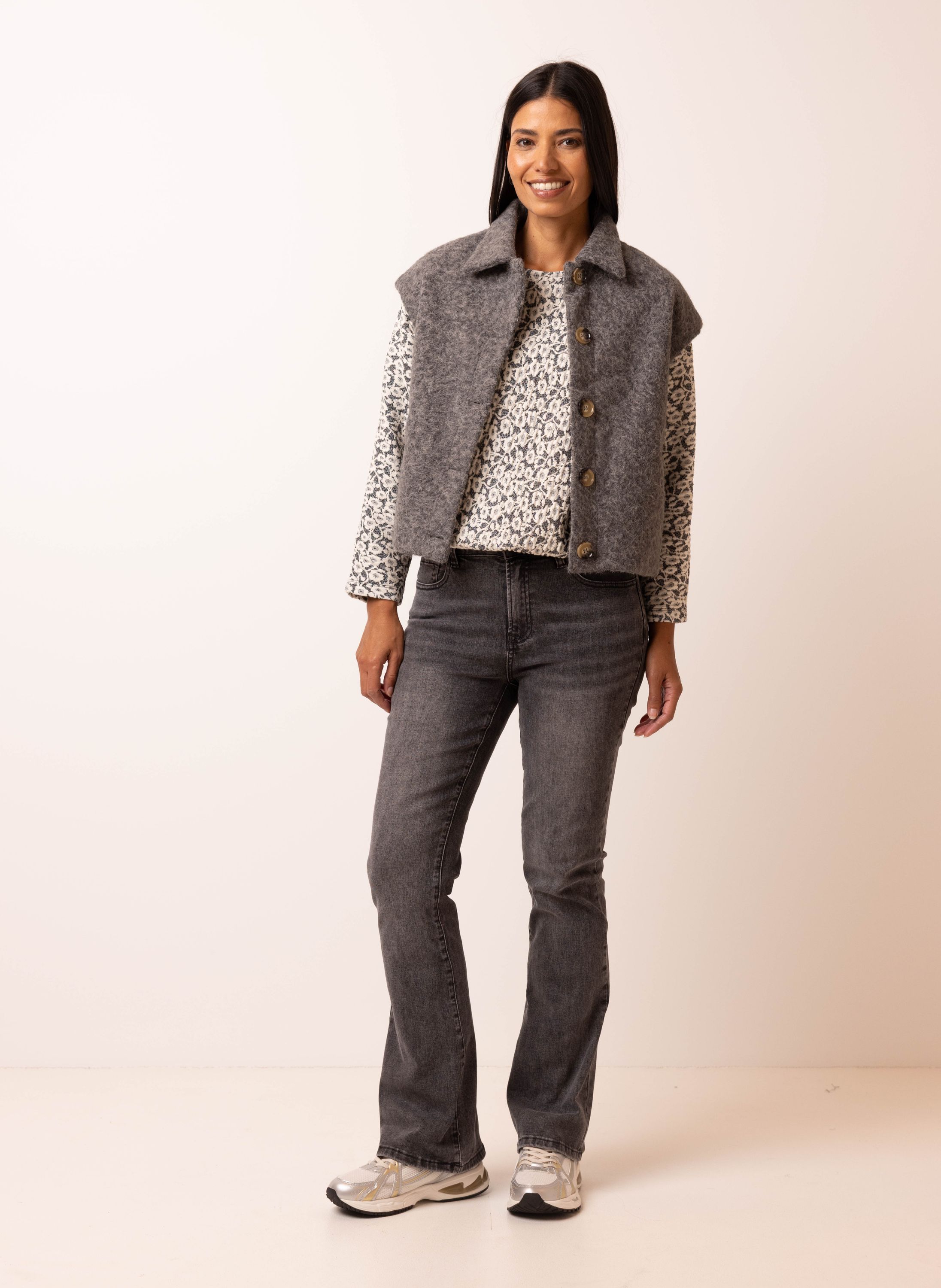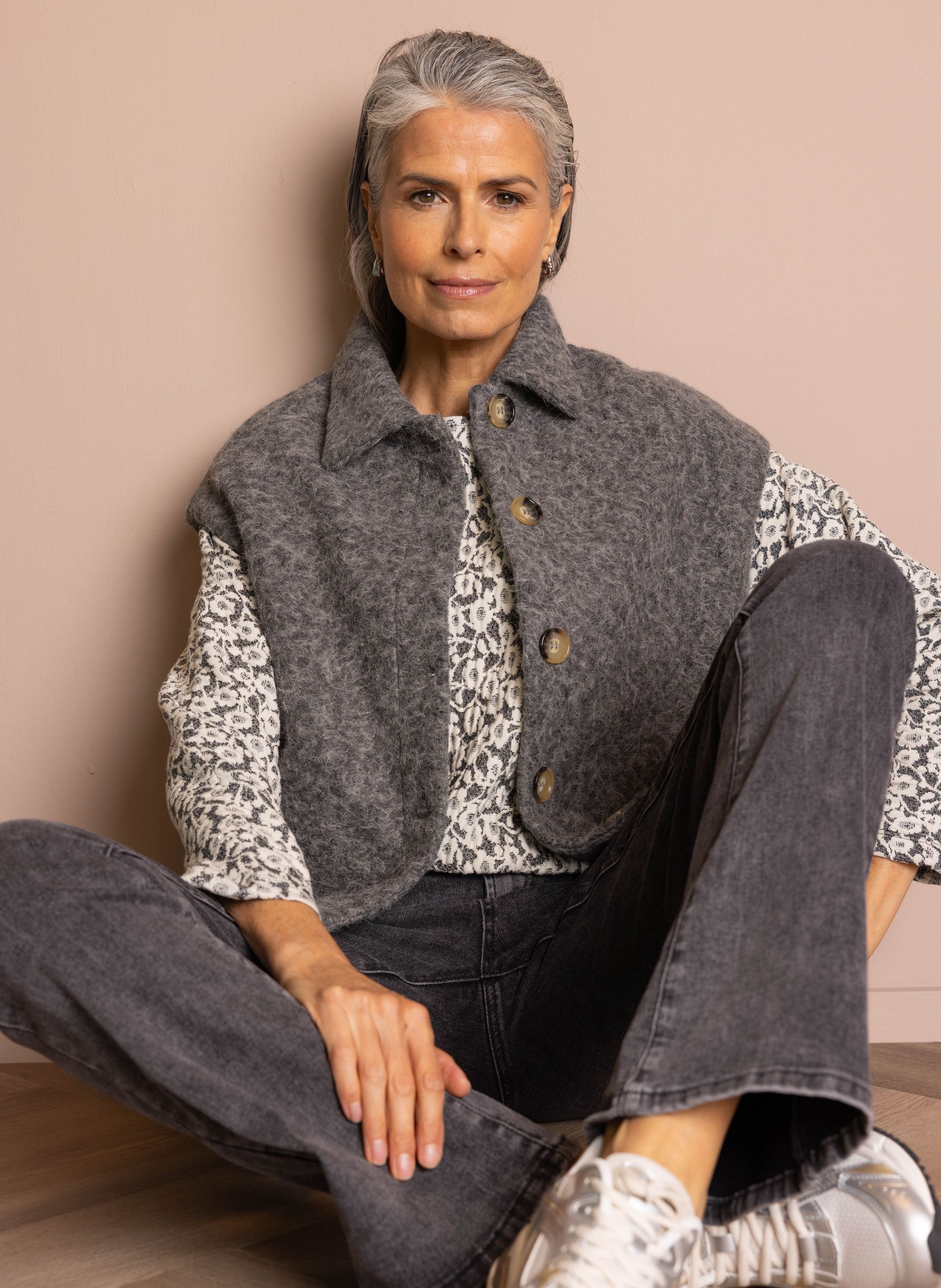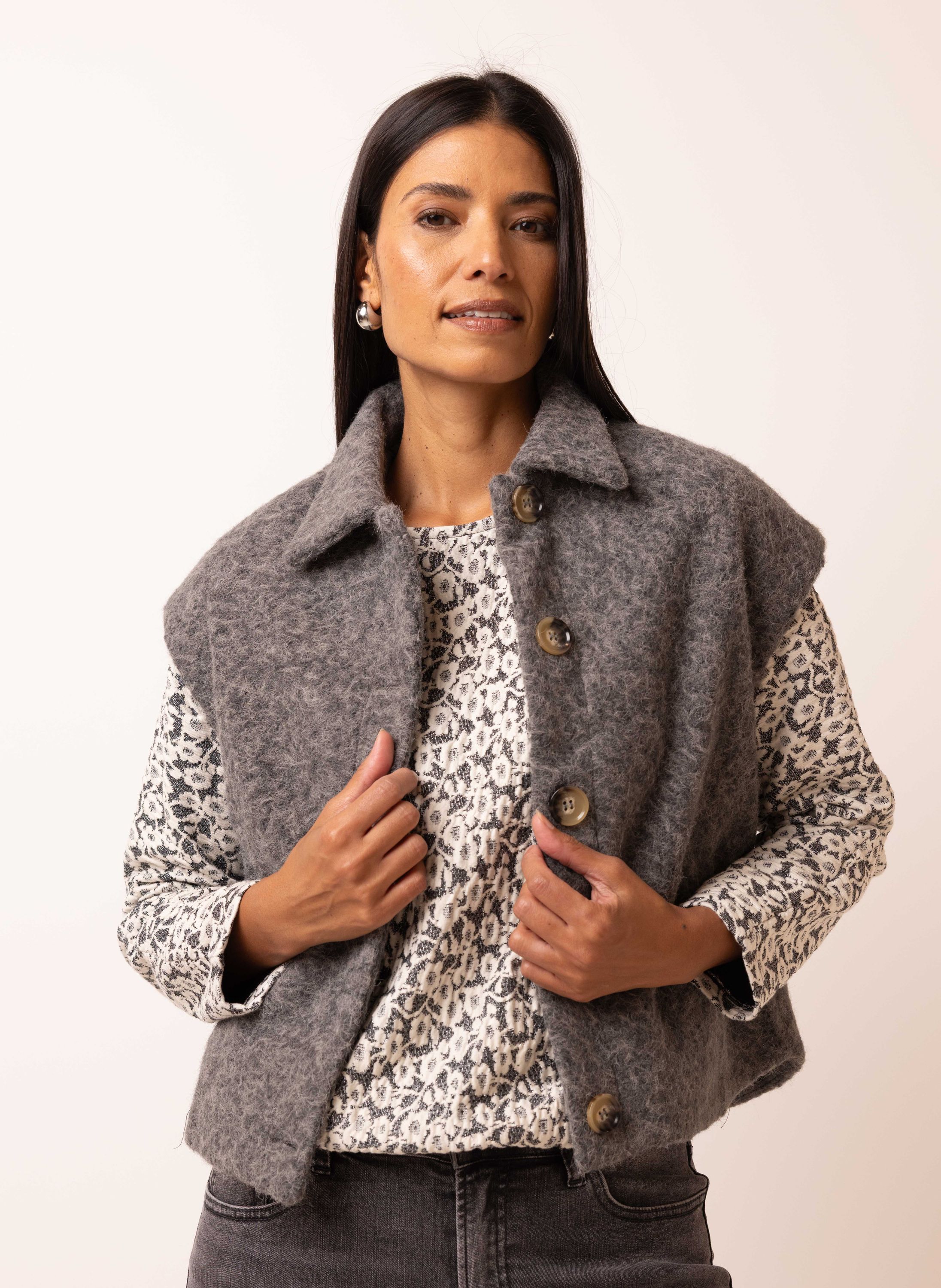 Grijs gilet met wollook