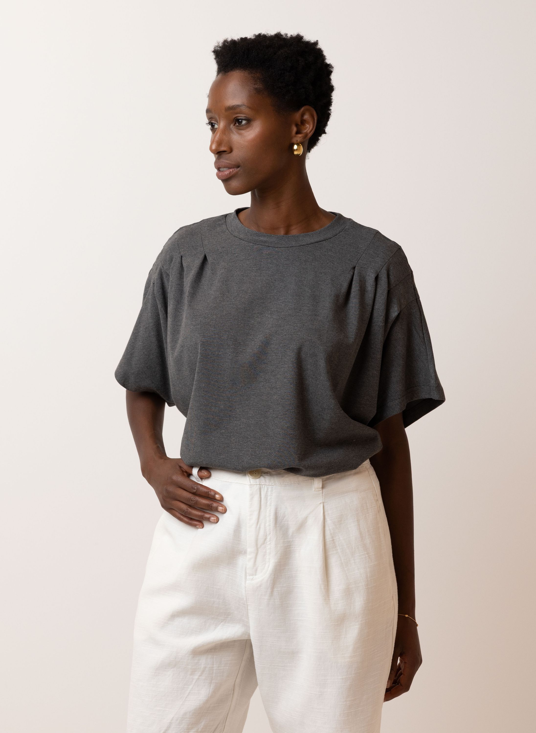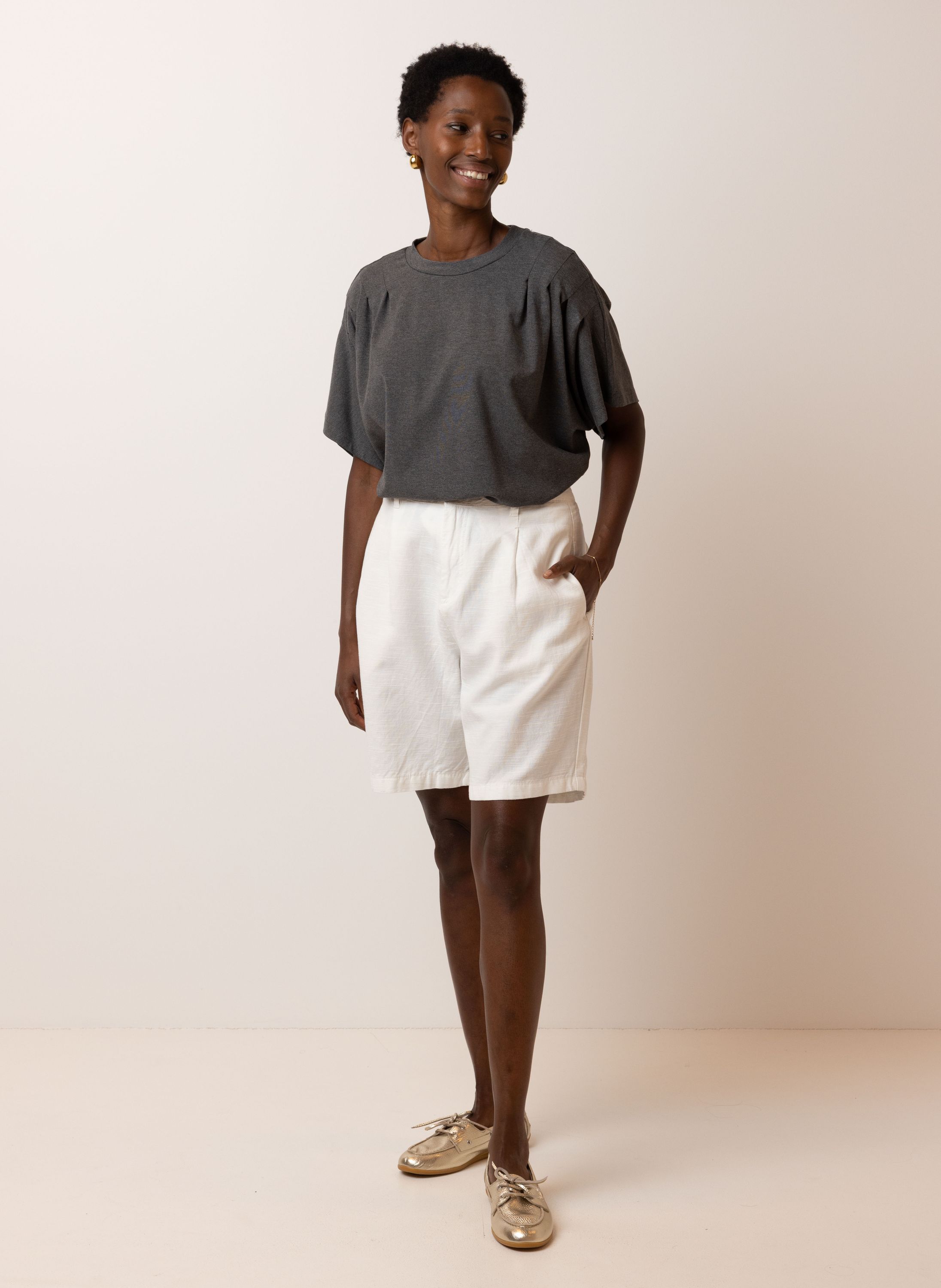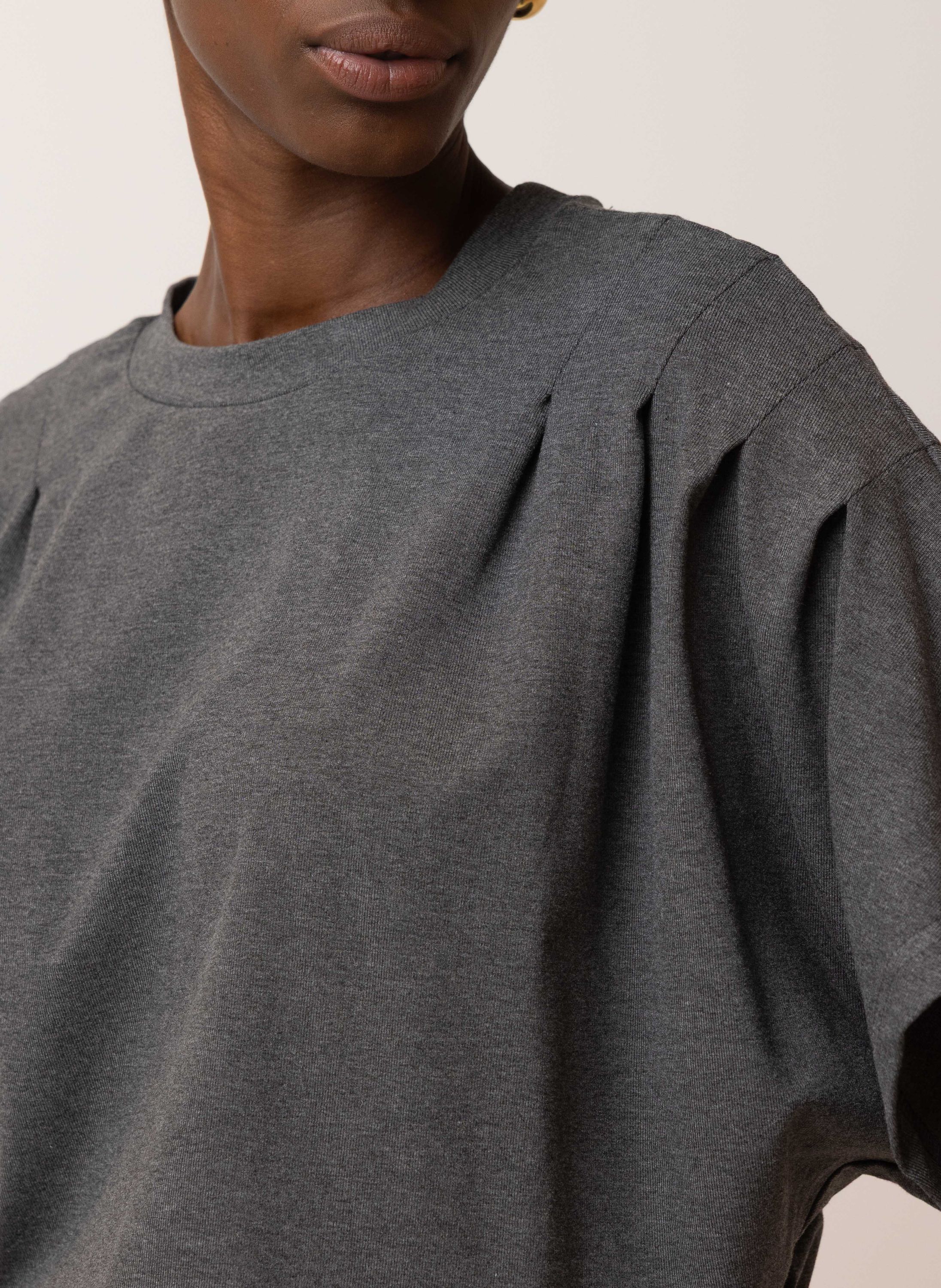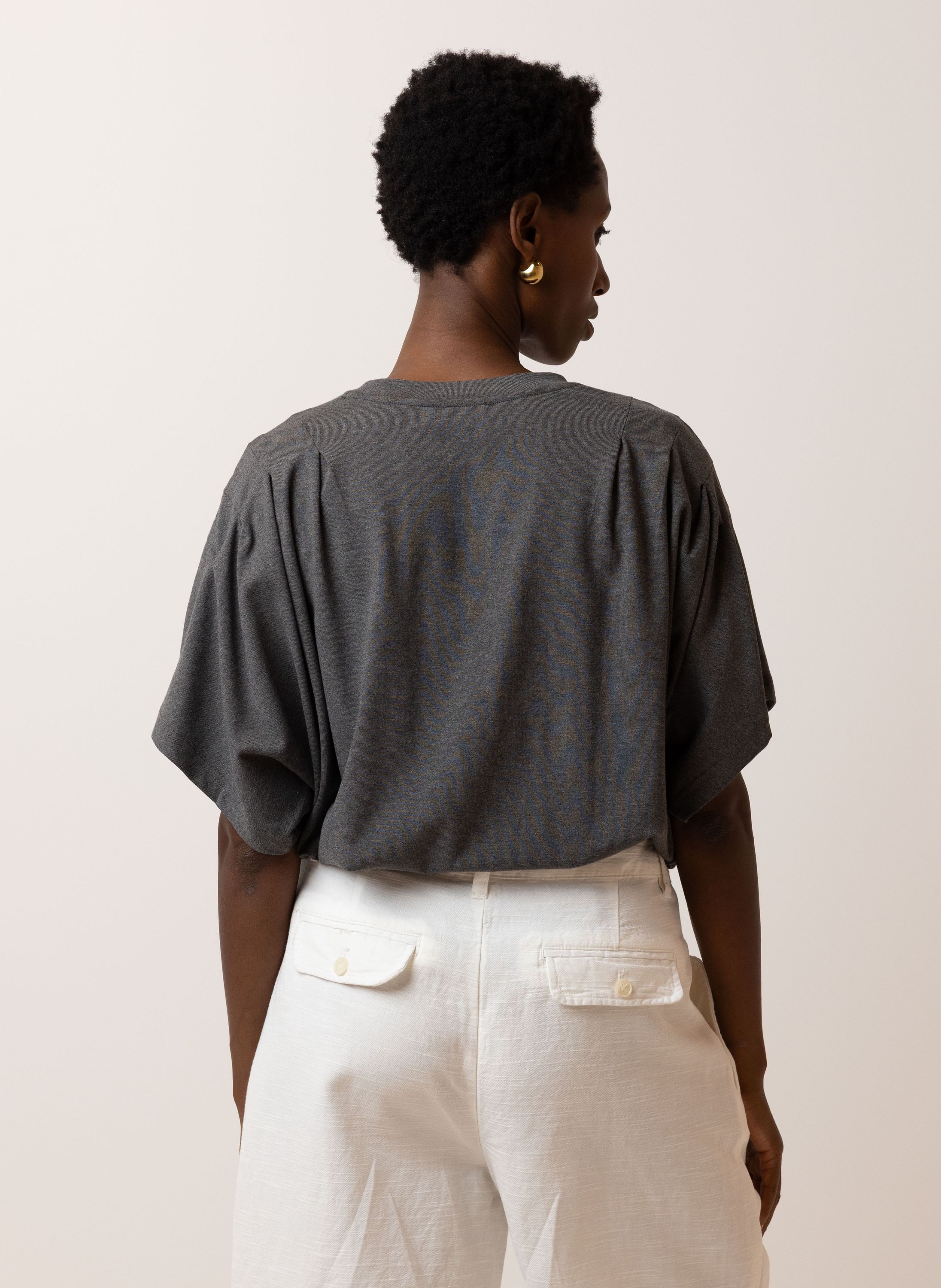 Dit shirt met ronde hals heeft korte mouwen en plooidetails op de schouders voor een speels accent.