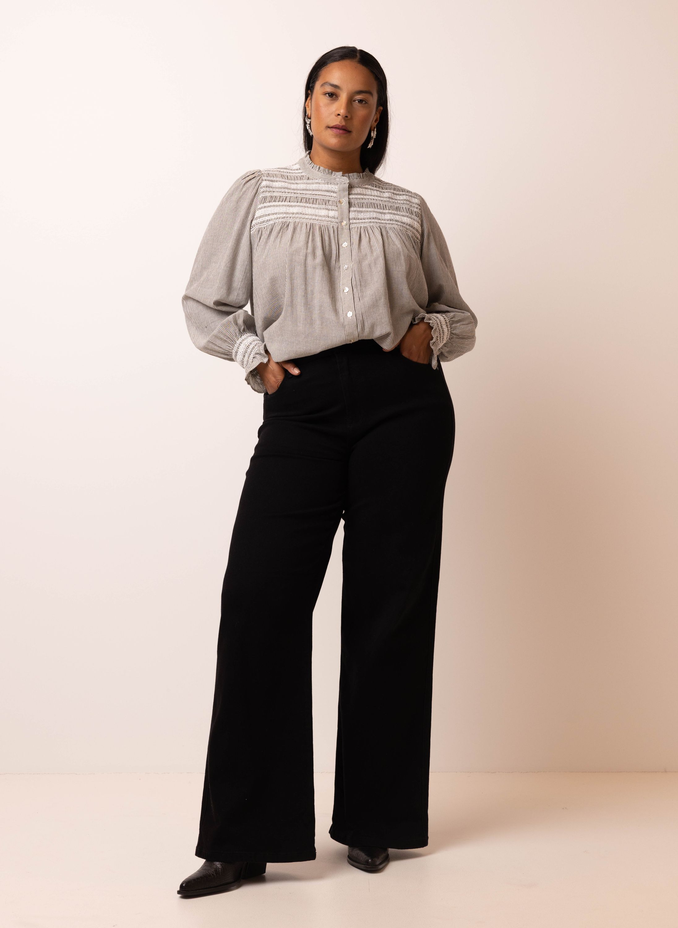 Grijs/wit gestreepte blouse