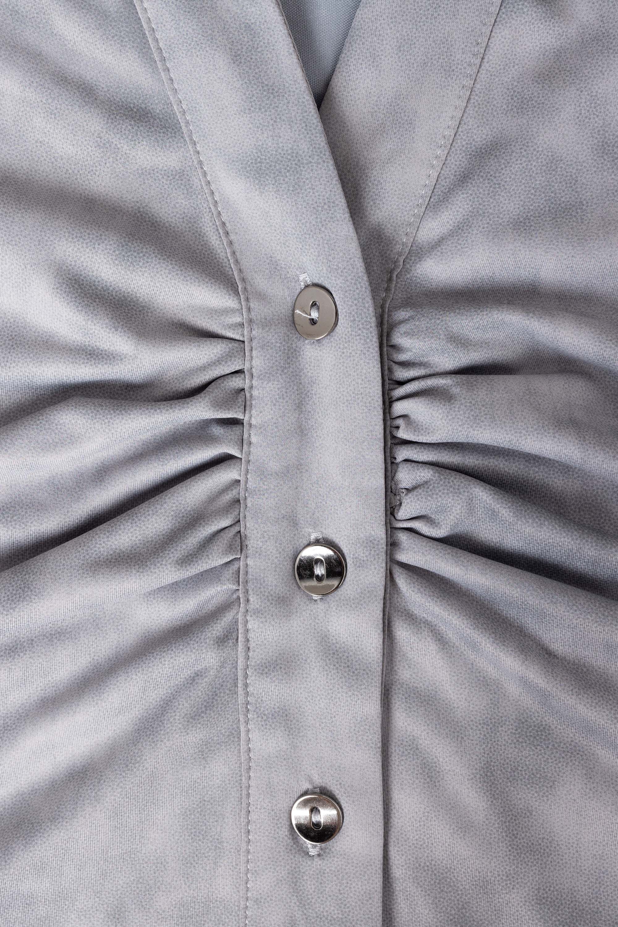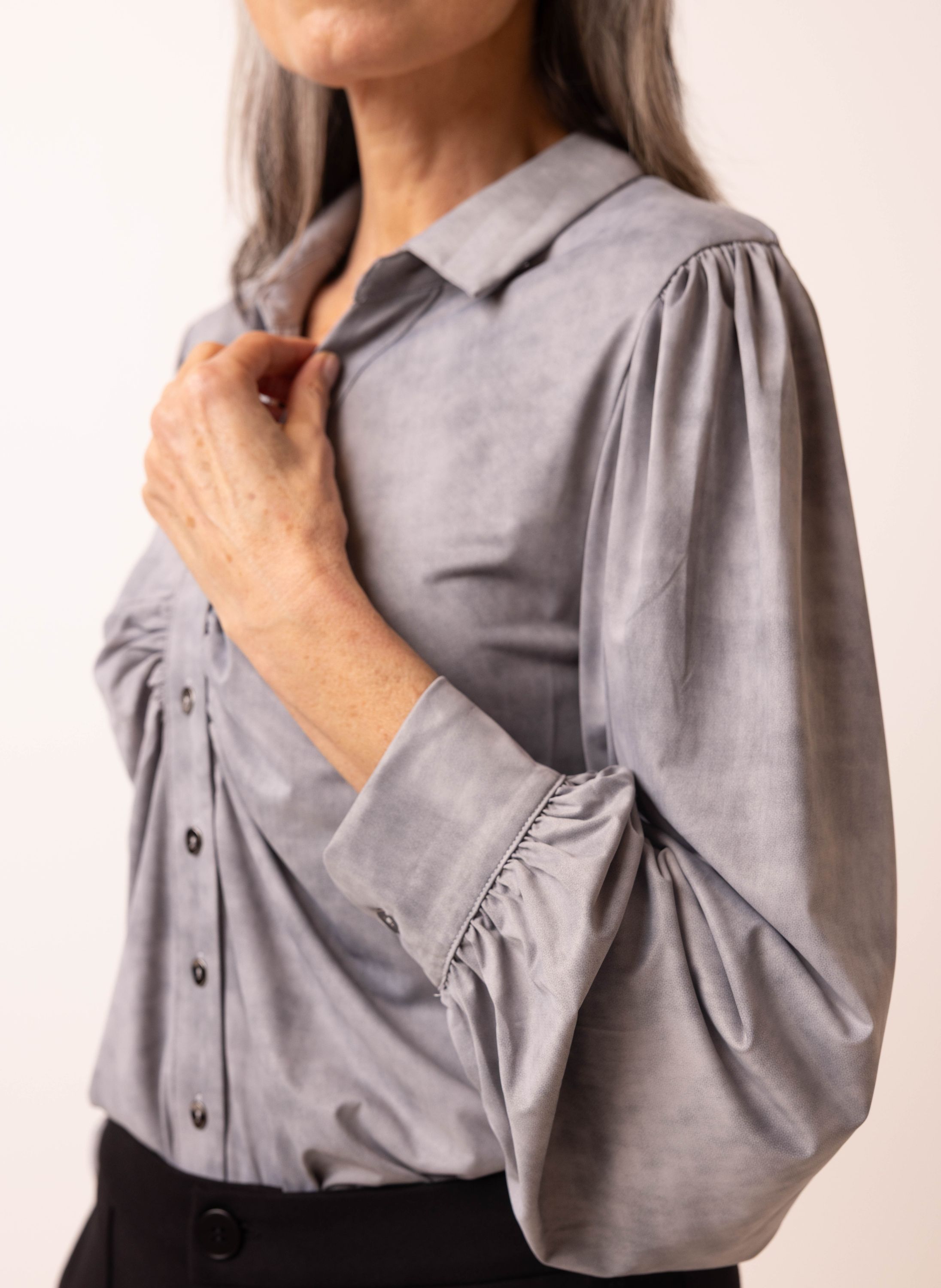 Deze aansluitende blouse met klassieke kraag, knoopsluiting, lange mouwen en plooidetail op borsthoogte is gemaakt van een gladde stof voor een elegante uitstraling.
