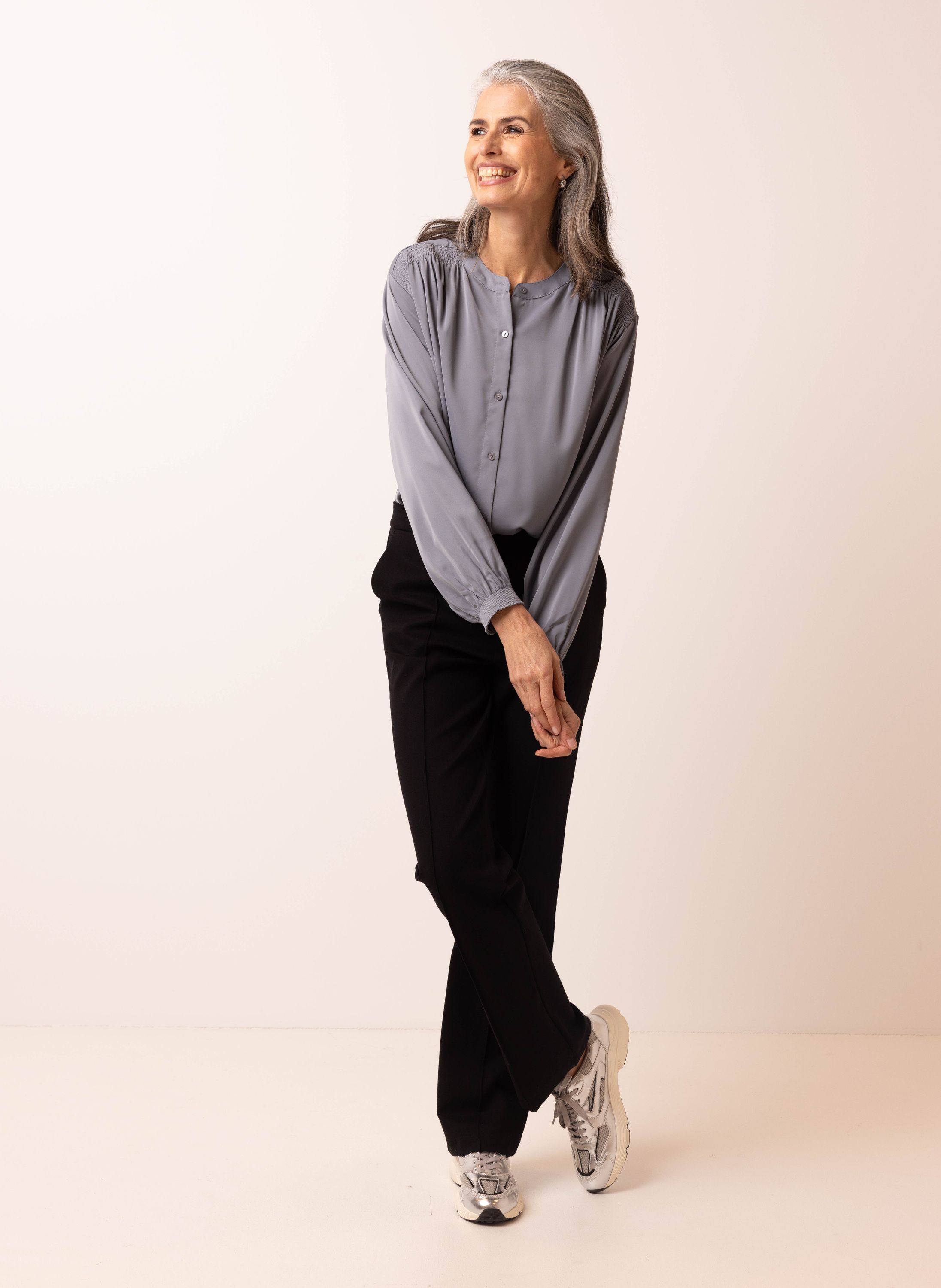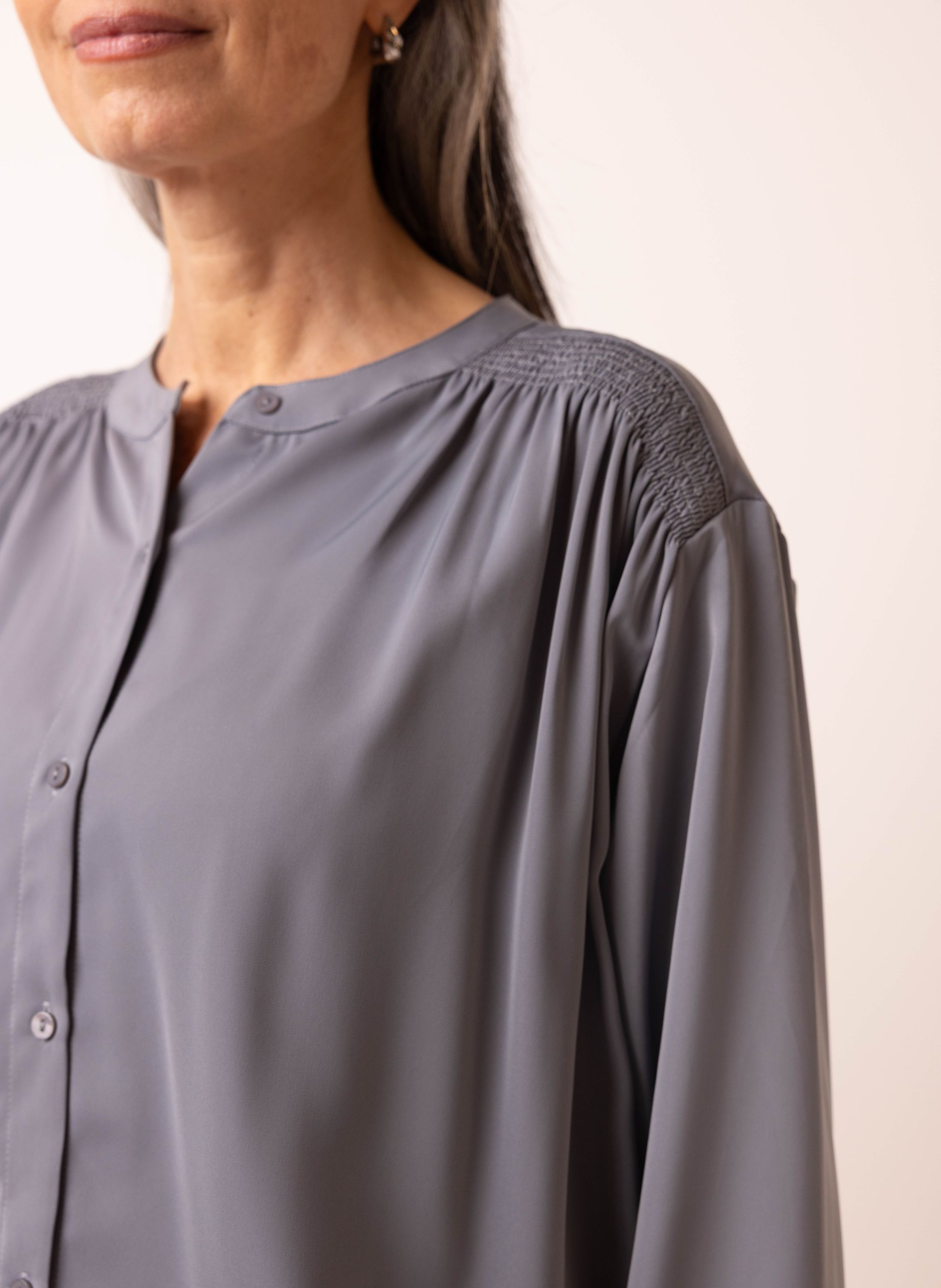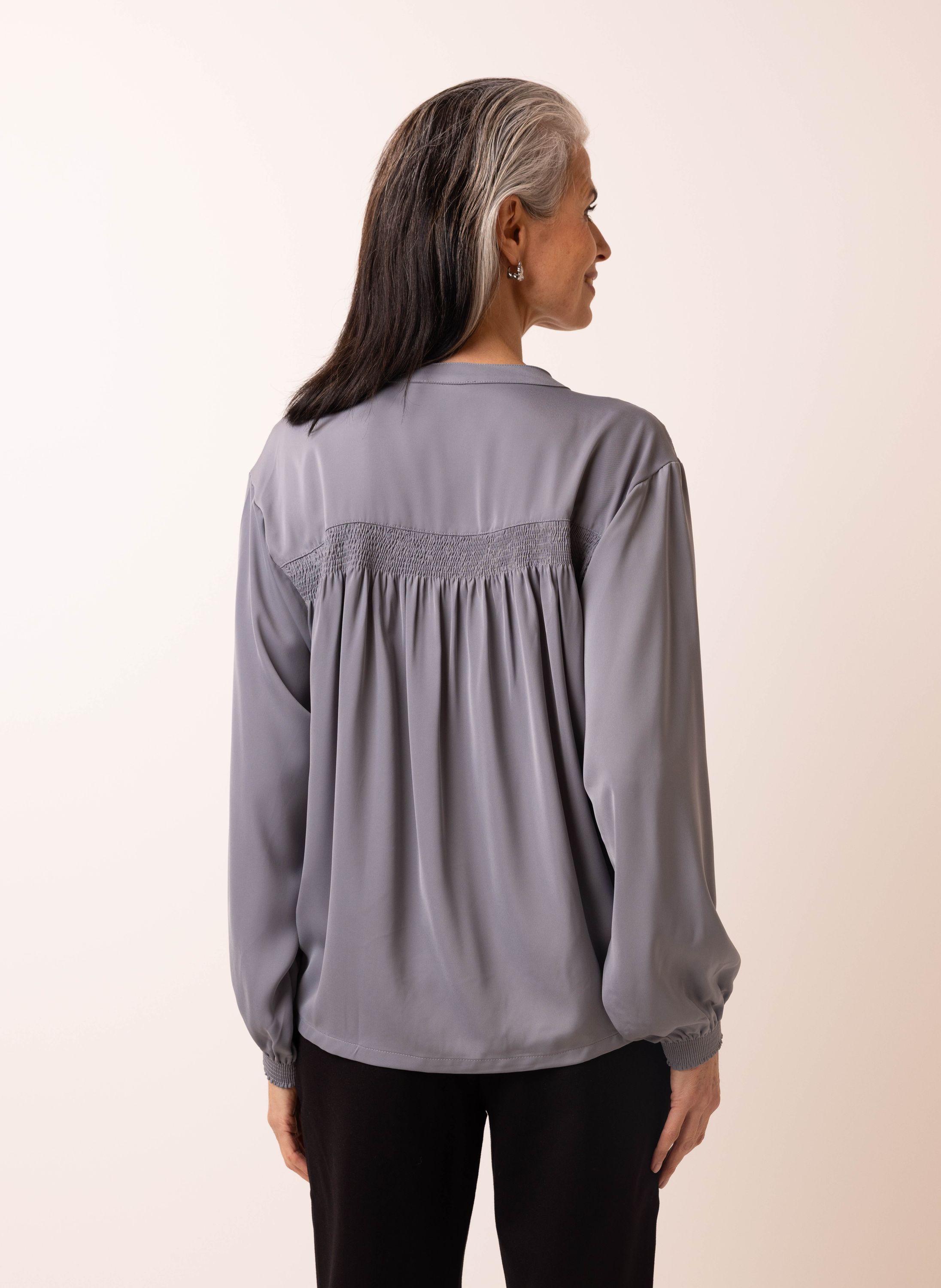 Deze blouse heeft een ronde hals, knoopsluiting, lange mouwen en smokdetails op de schouders en rug. Dit item is exclusief verkrijgbaar in geselecteerde winkels en online. Controleer de winkelvoorraad om de beschikbaarheid in een winkel bij jou in de buurt te bekijken.