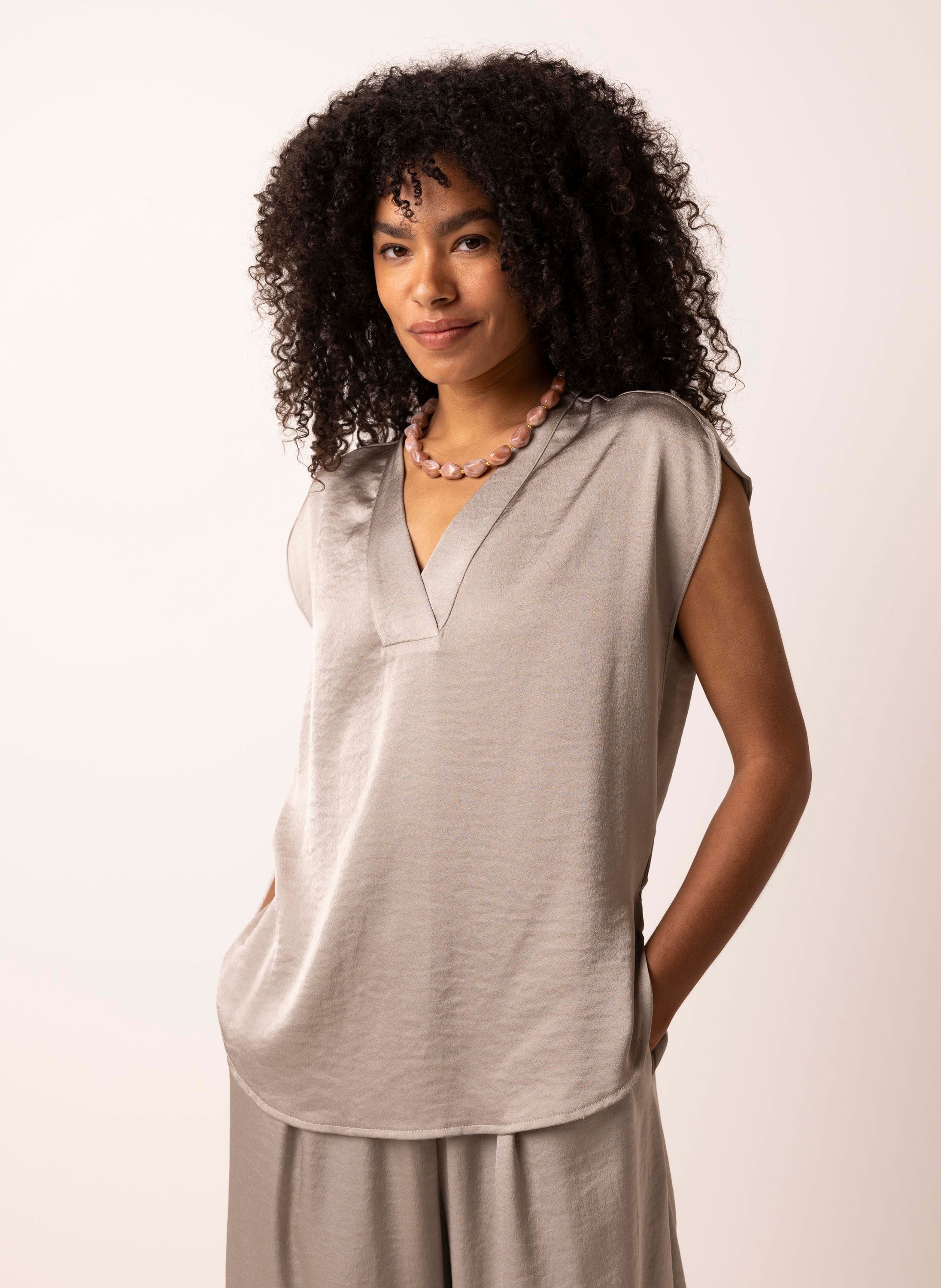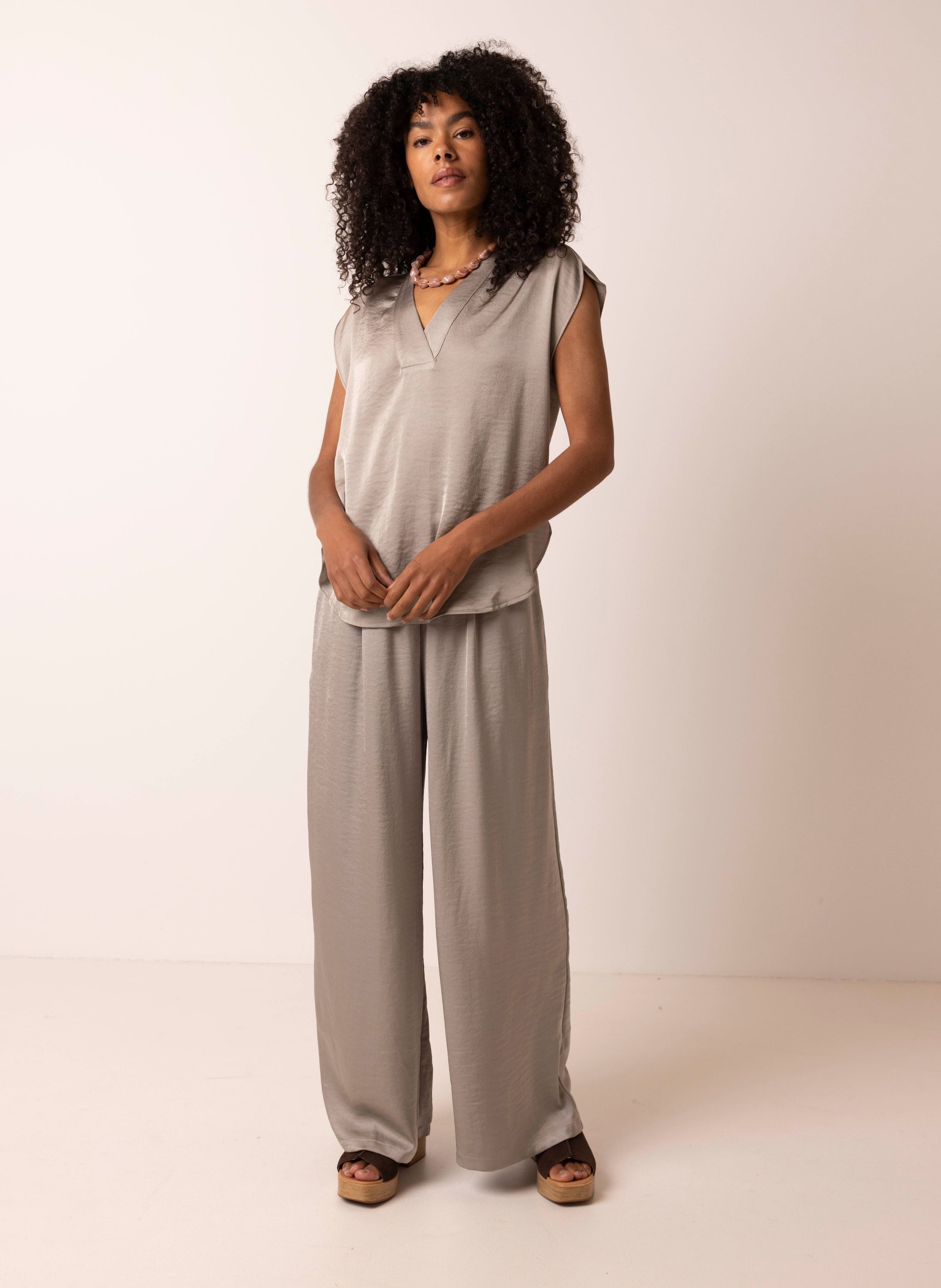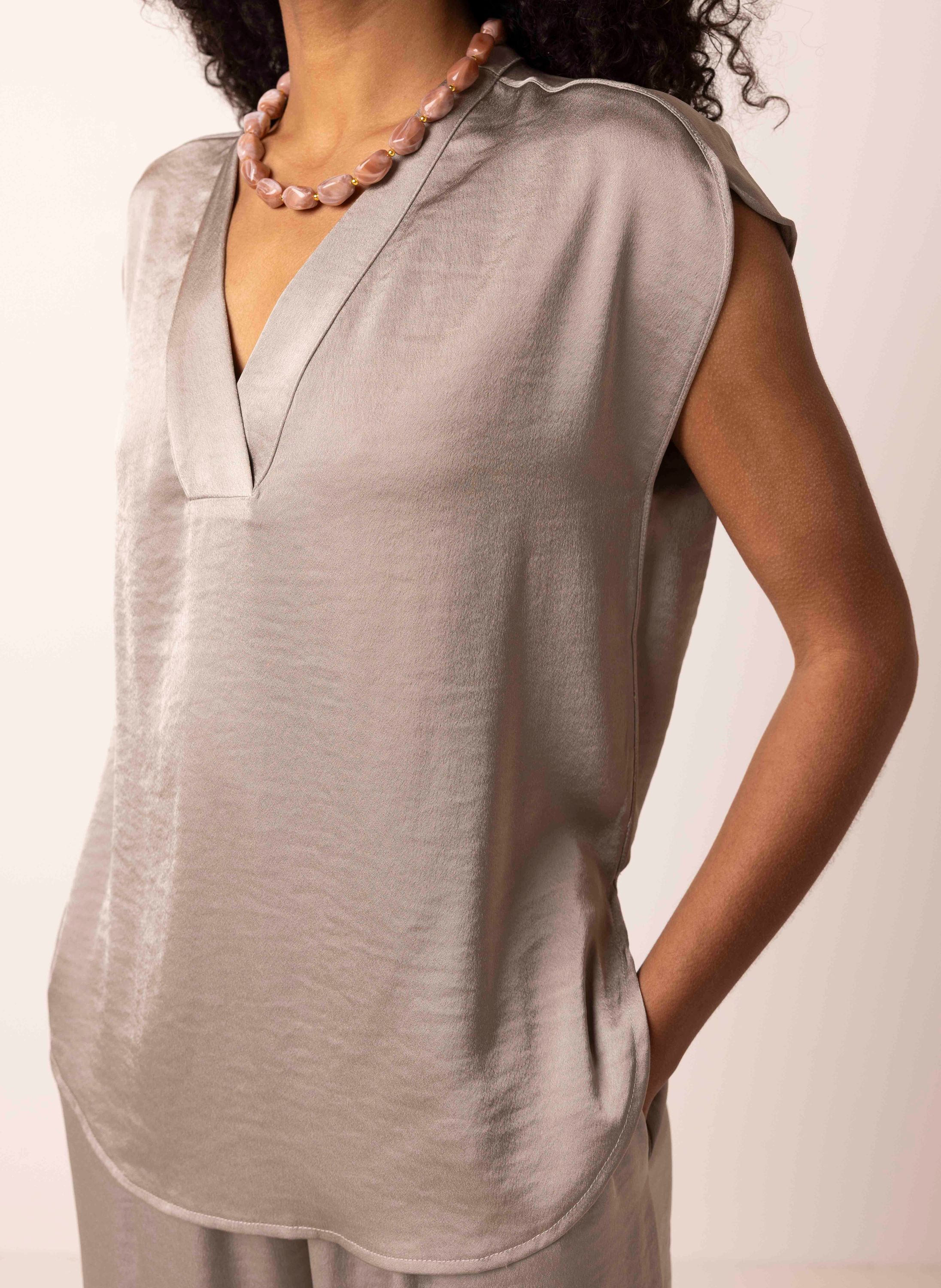 Grijze satijnen top