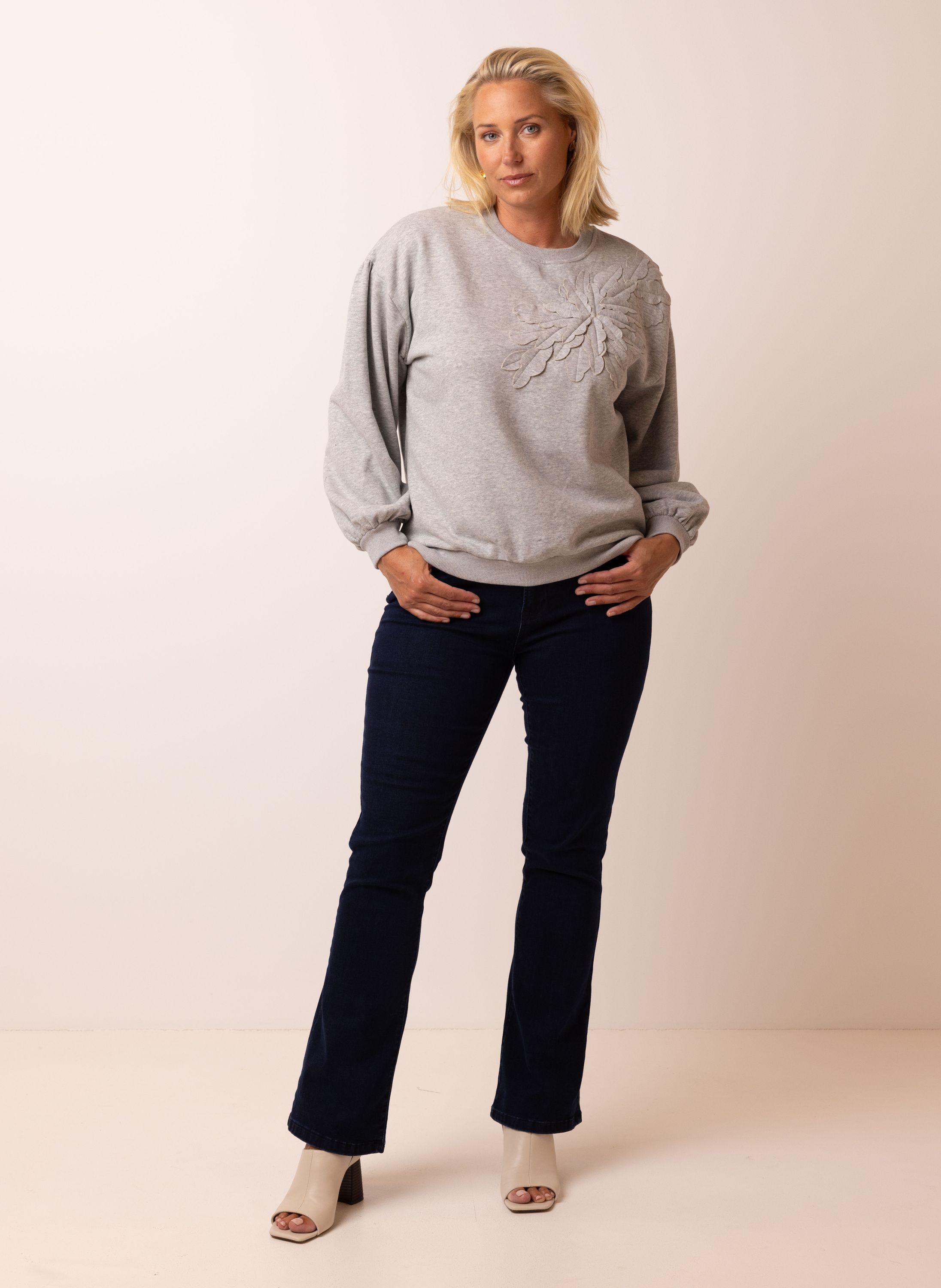 Grijze sweater met bloem