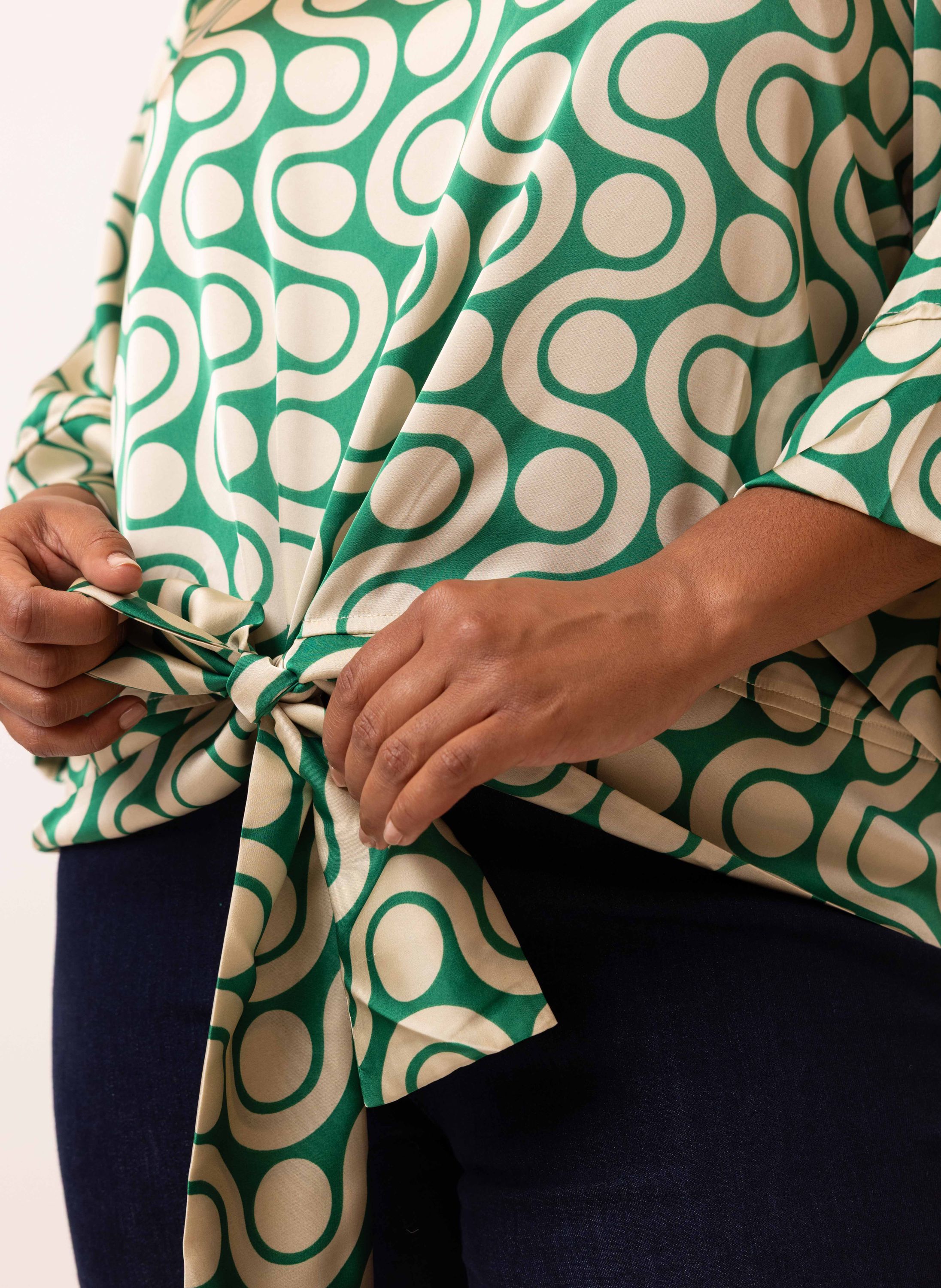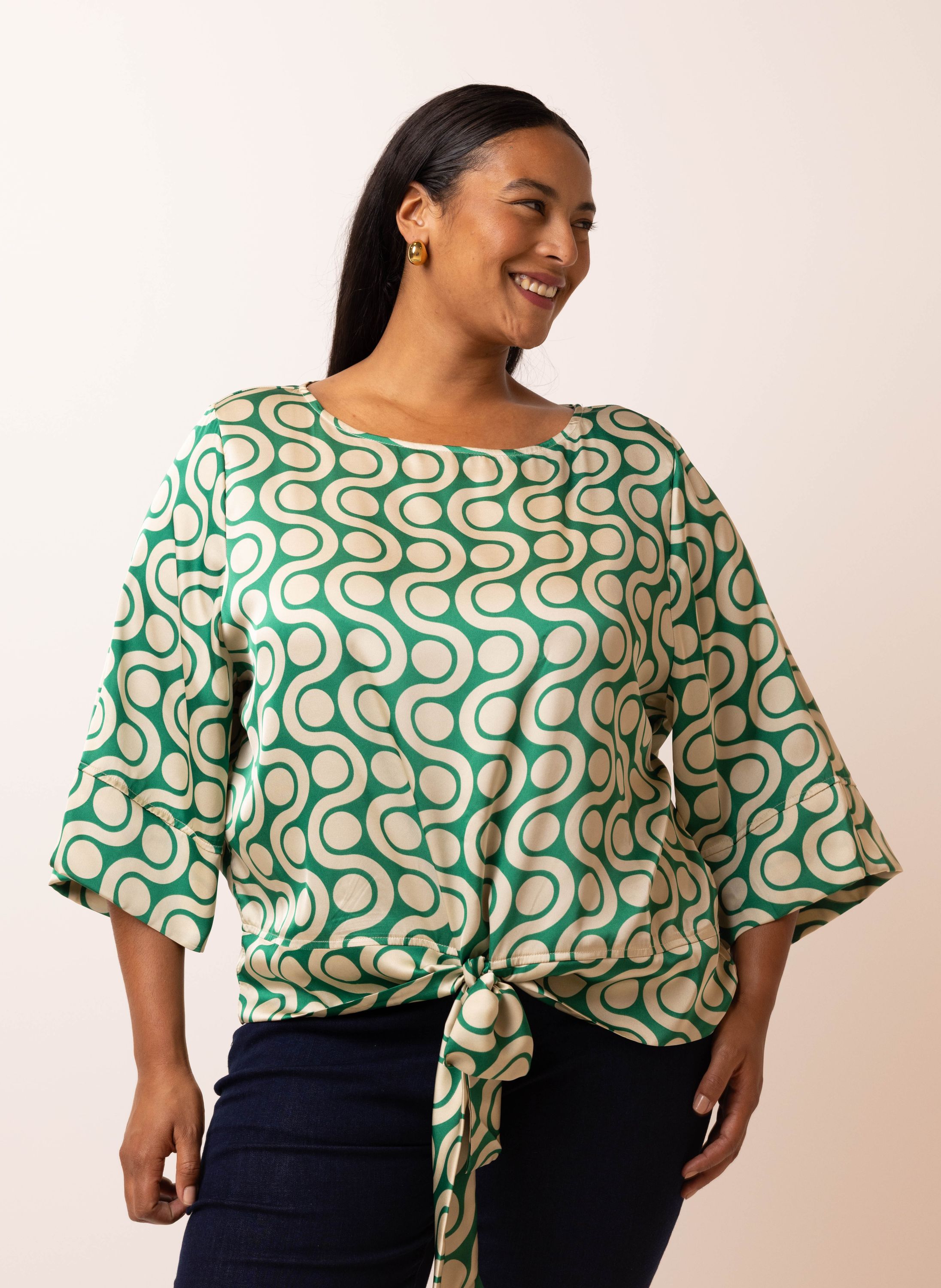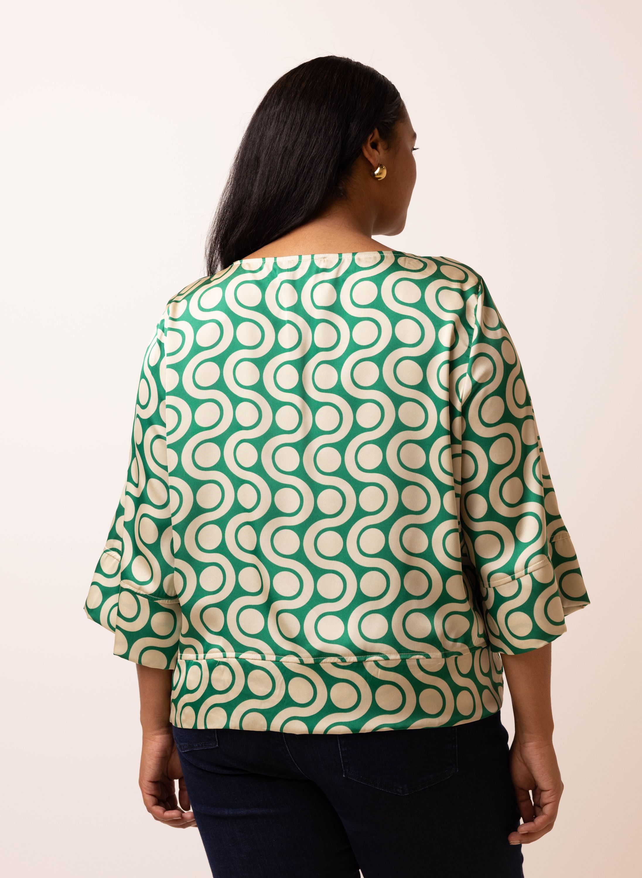 Groen/ecru blouse met retro print