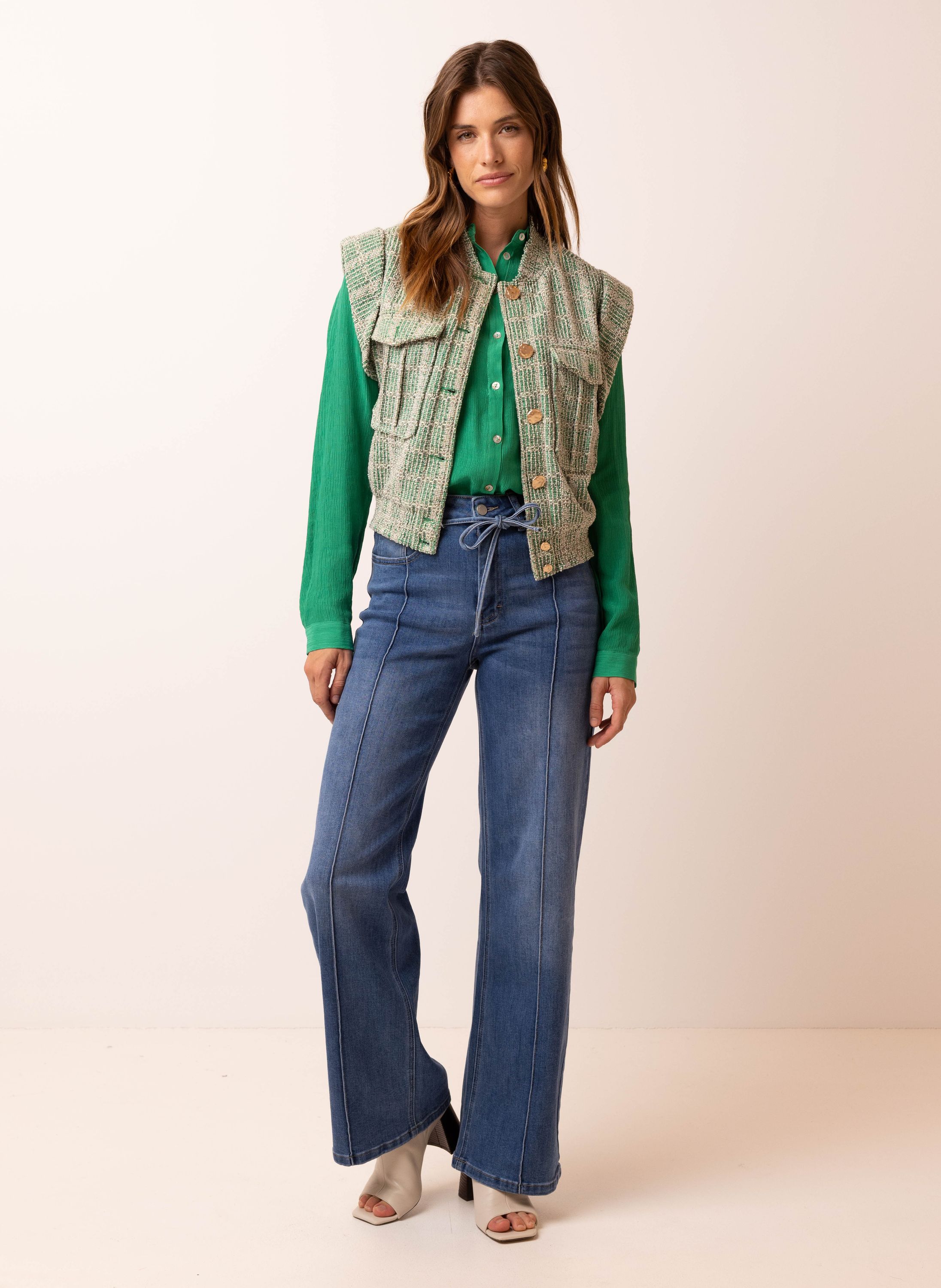 Groen gilet van geweven stof