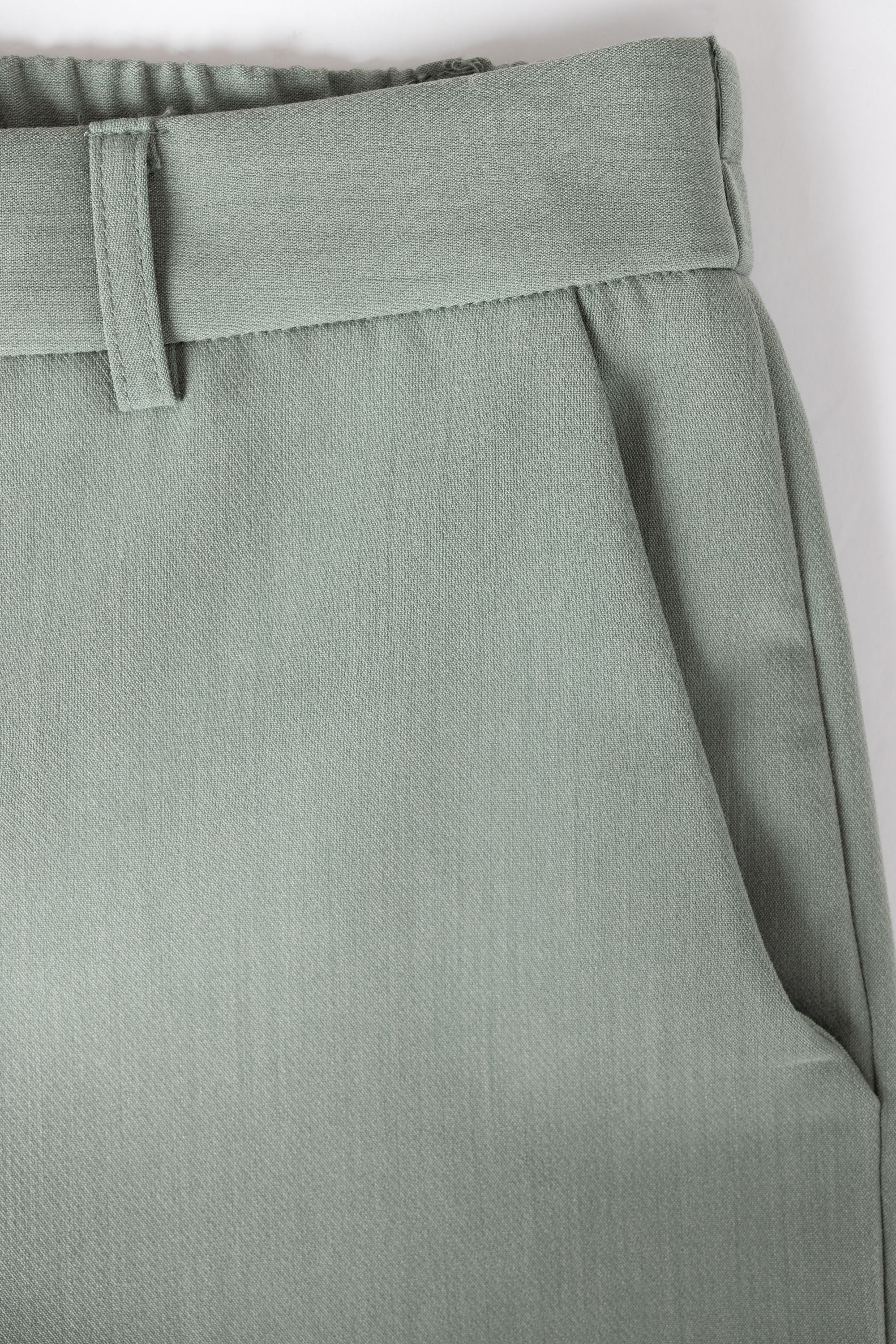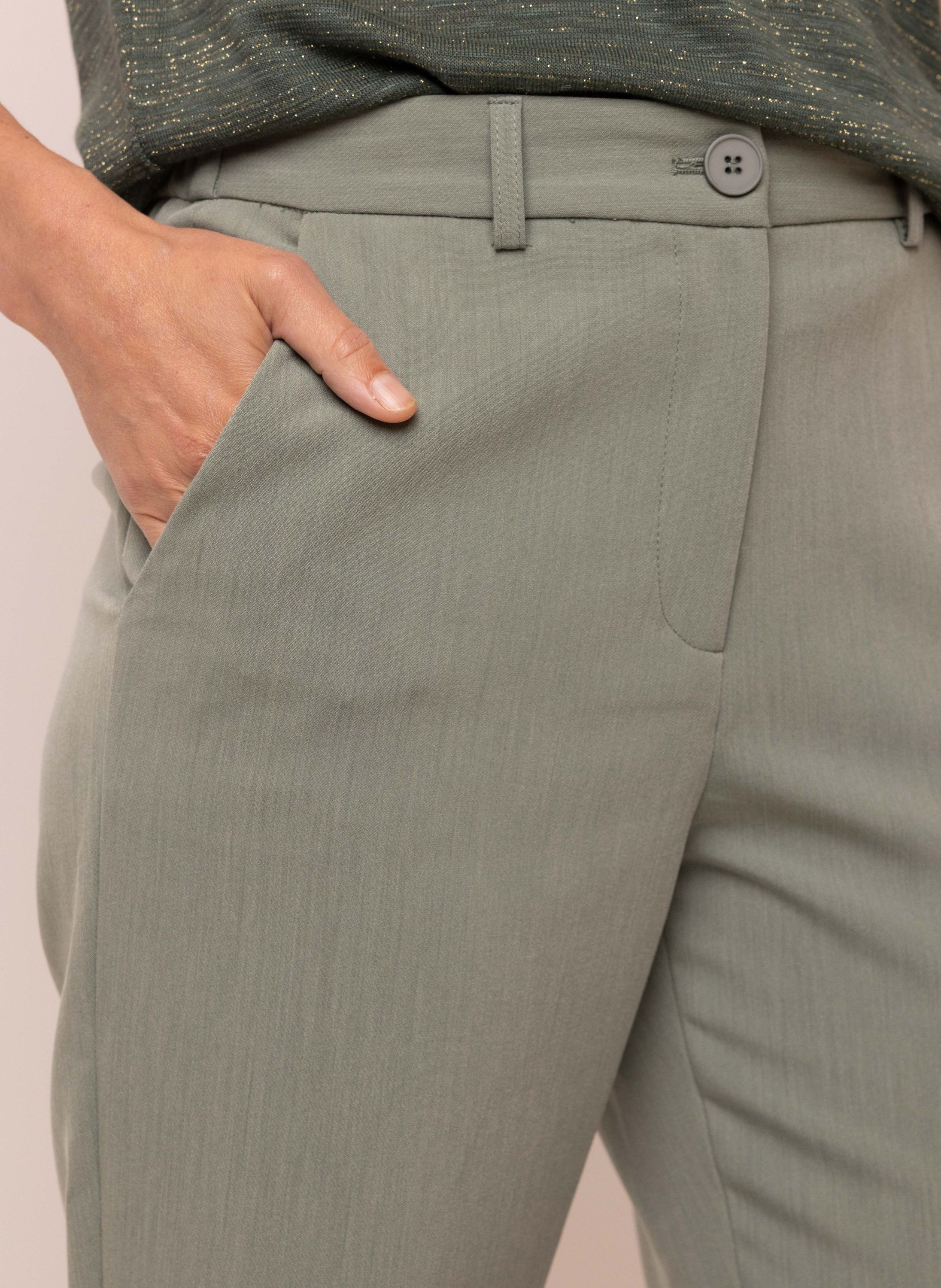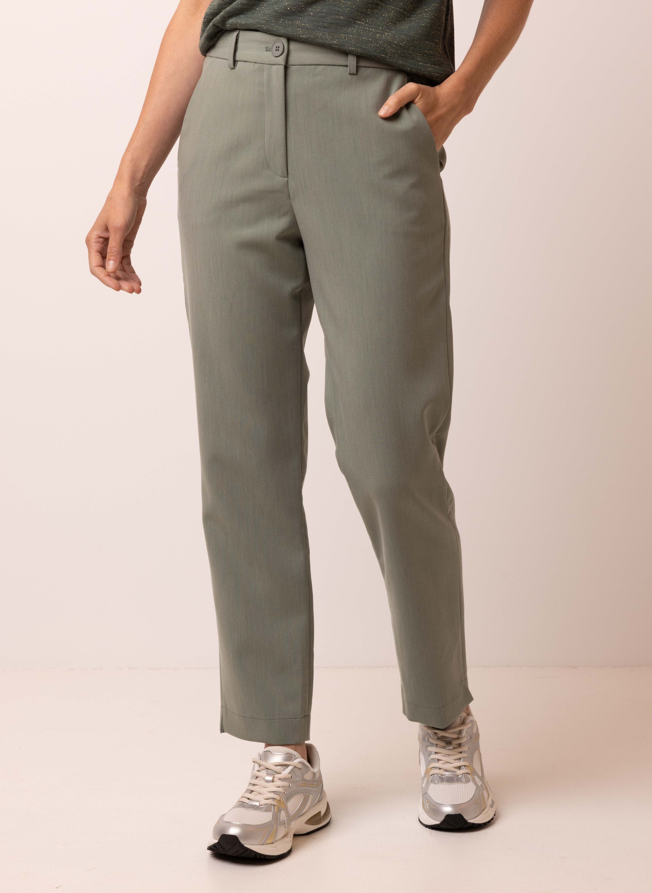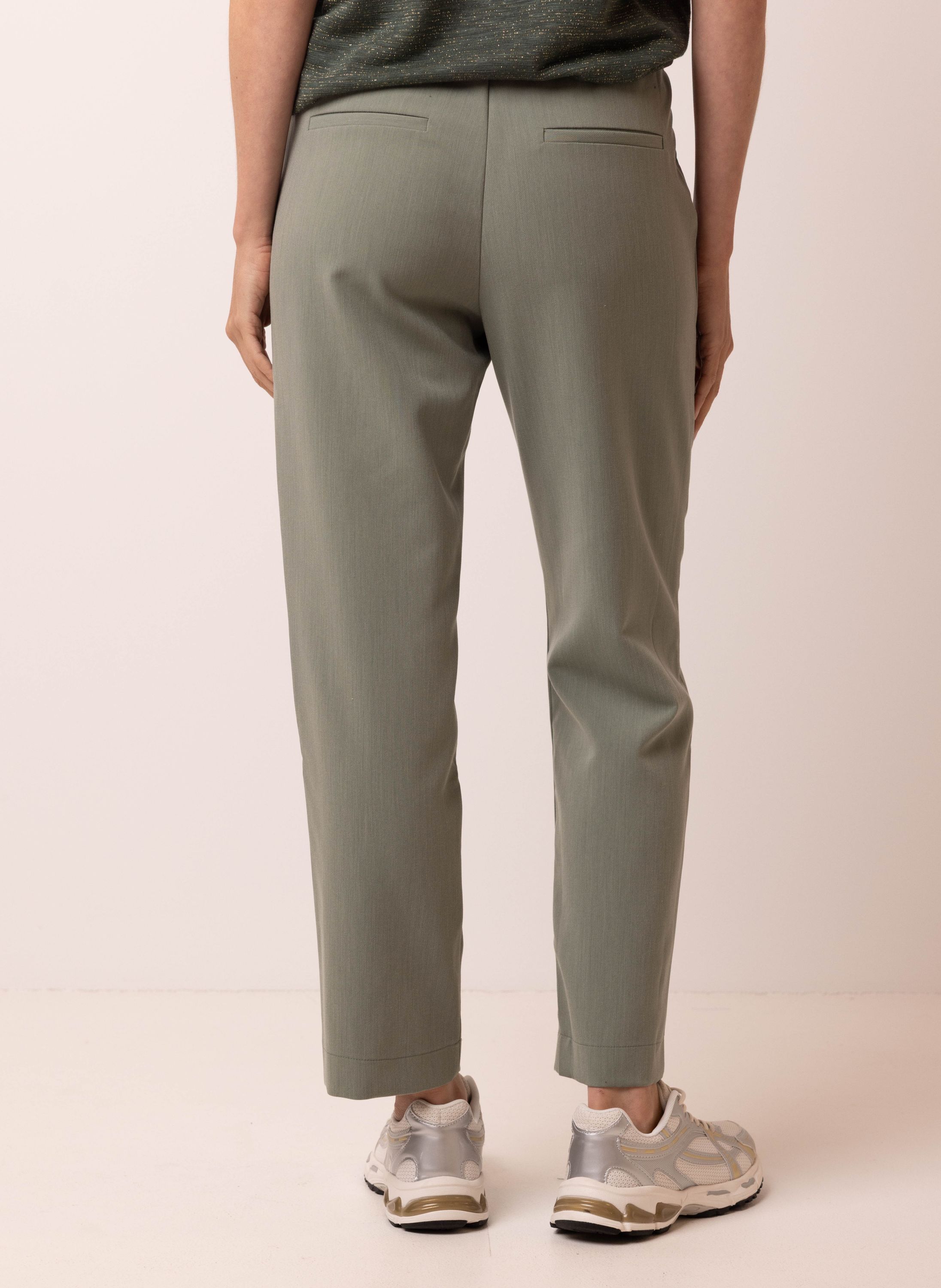 Deze high waist loose fit broek heeft een rits- en knoopsluiting, elastische tailleband, steekzakken en decoratieve paspelzakken.