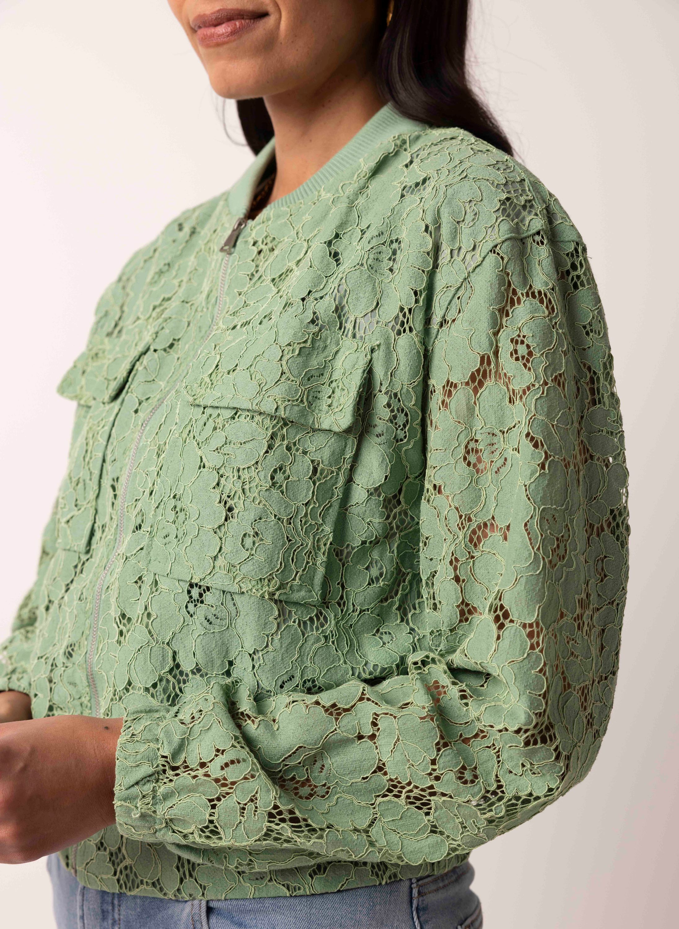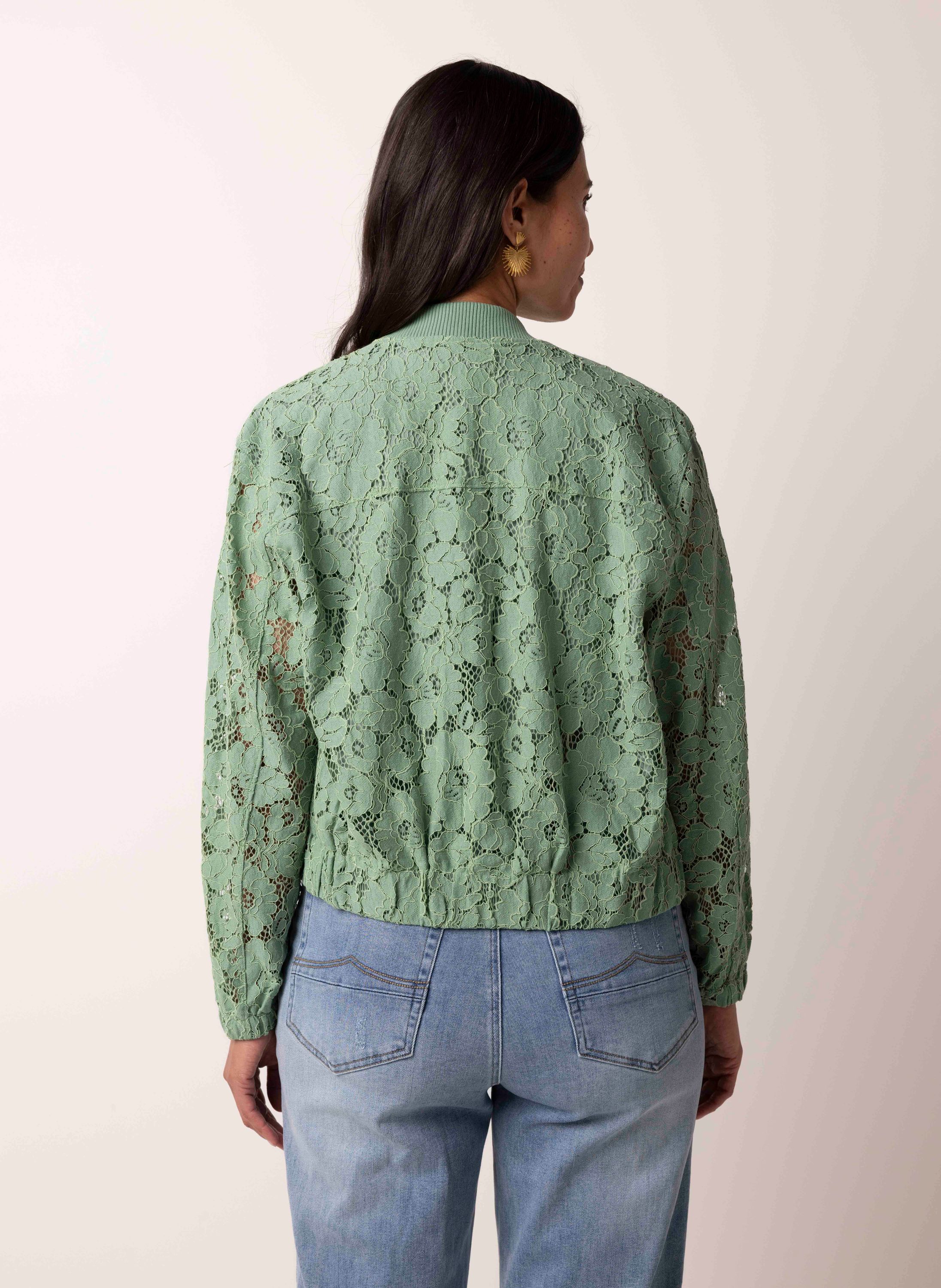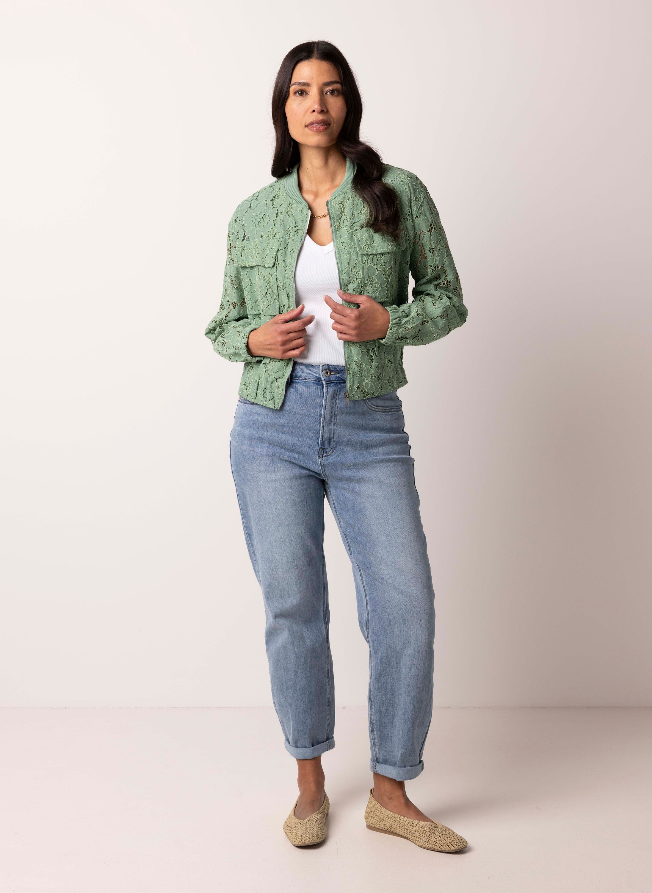 Dit jasje met ronde hals, lange mouwen, ritssluiting en zakken is afgewerkt met een elastische band aan de onderzijde voor een comfortabele pasvorm.