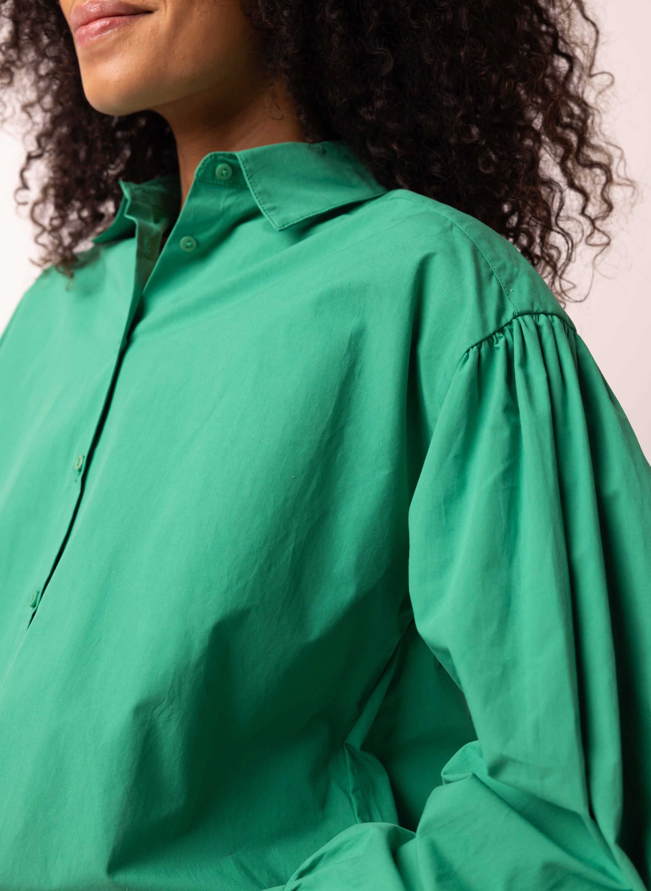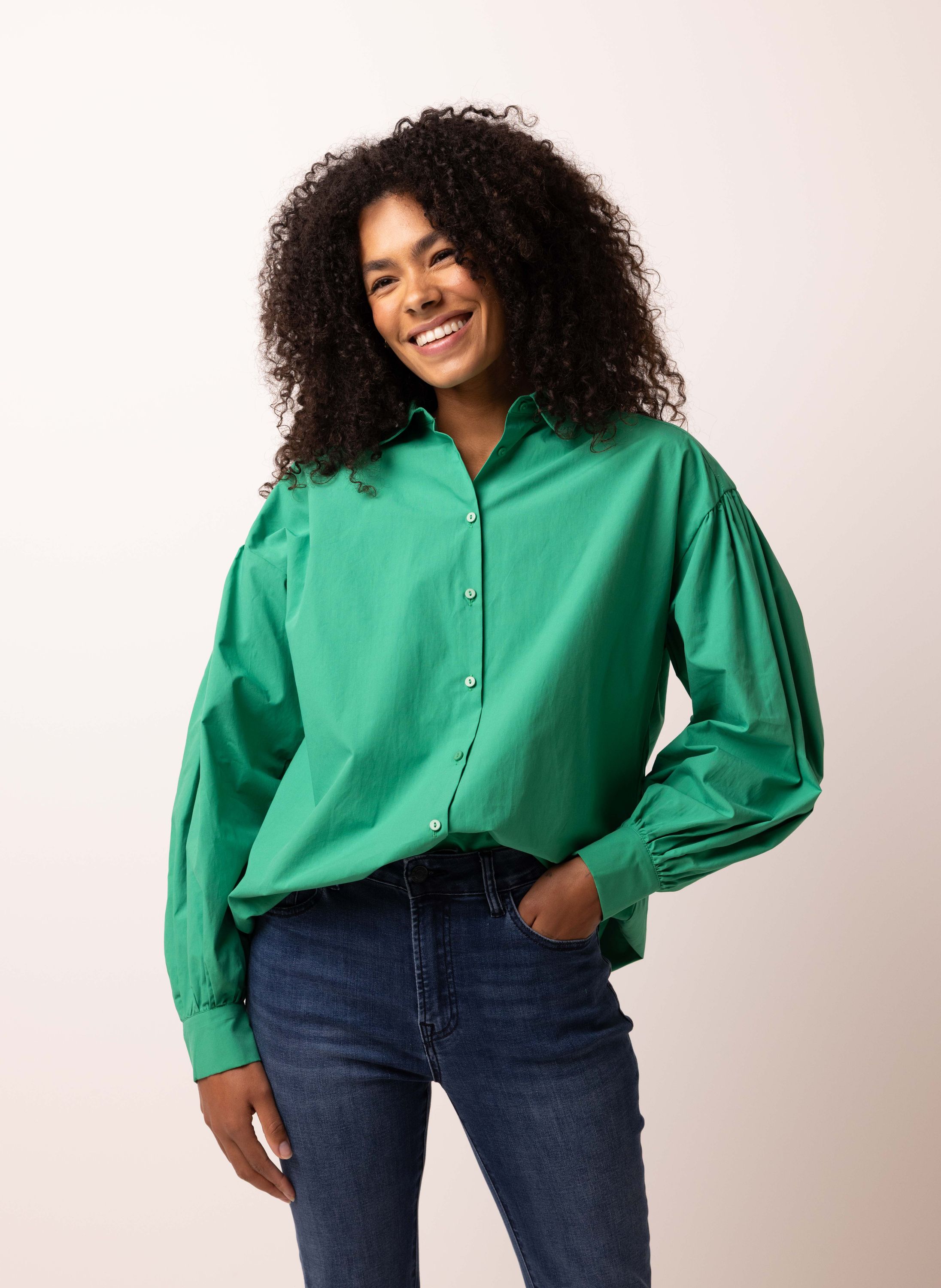 Deze blouse met klassieke kraag heeft een knoopsluiting en lange geplooide mouwen. Dit item is exclusief verkrijgbaar in geselecteerde winkels en online. Controleer de winkelvoorraad om de beschikbaarheid in een winkel bij jou in de buurt te bekijken.