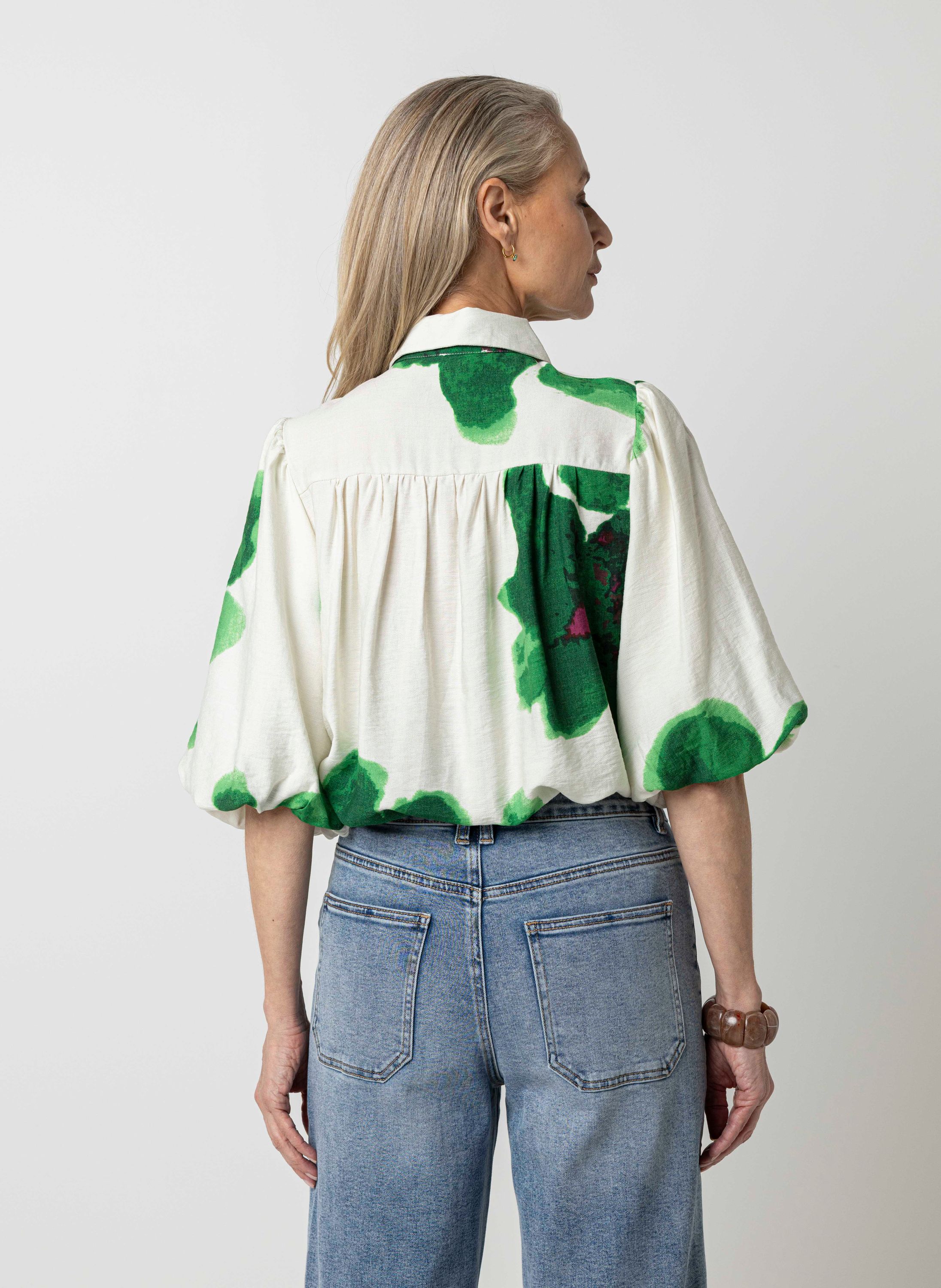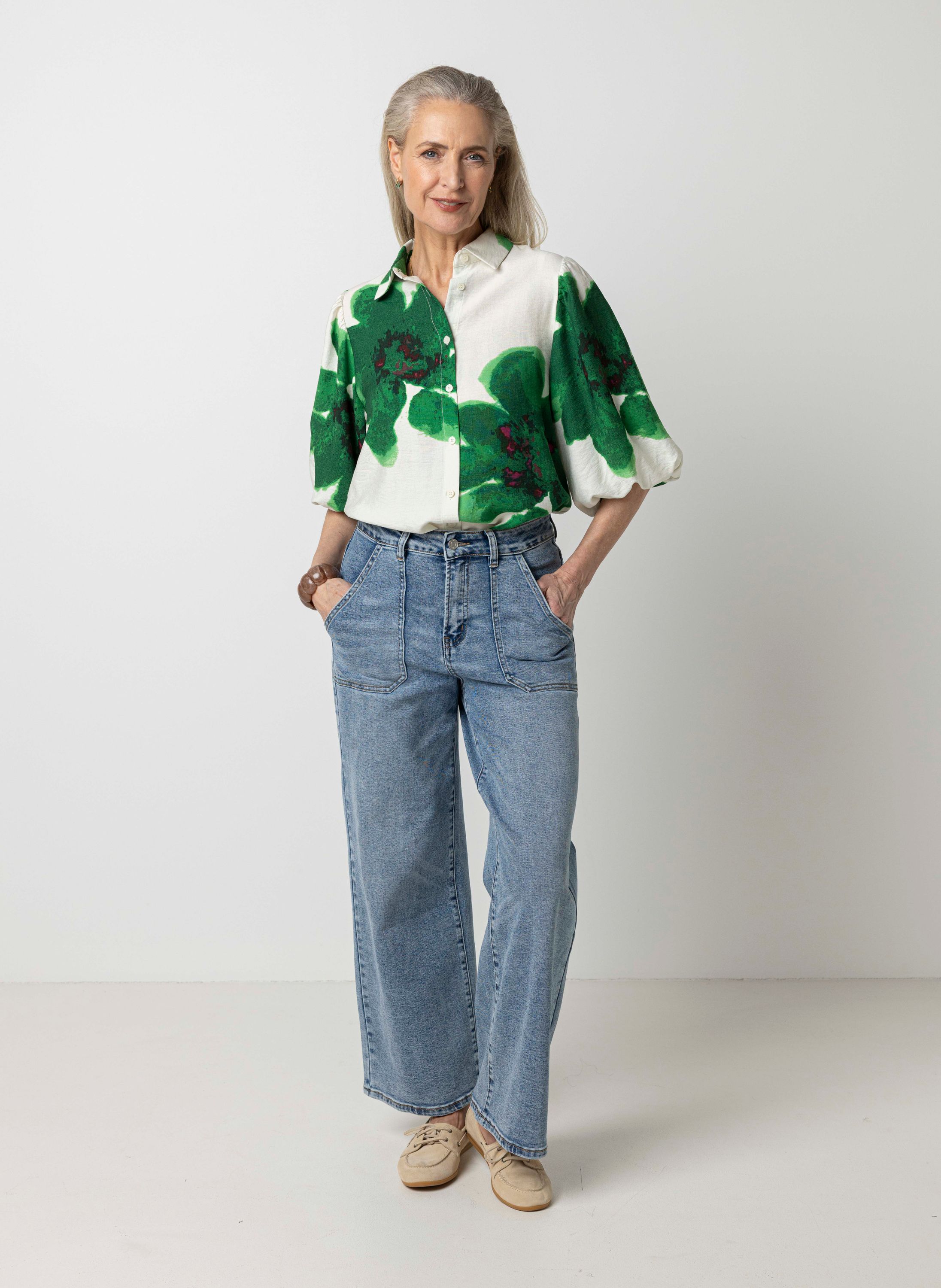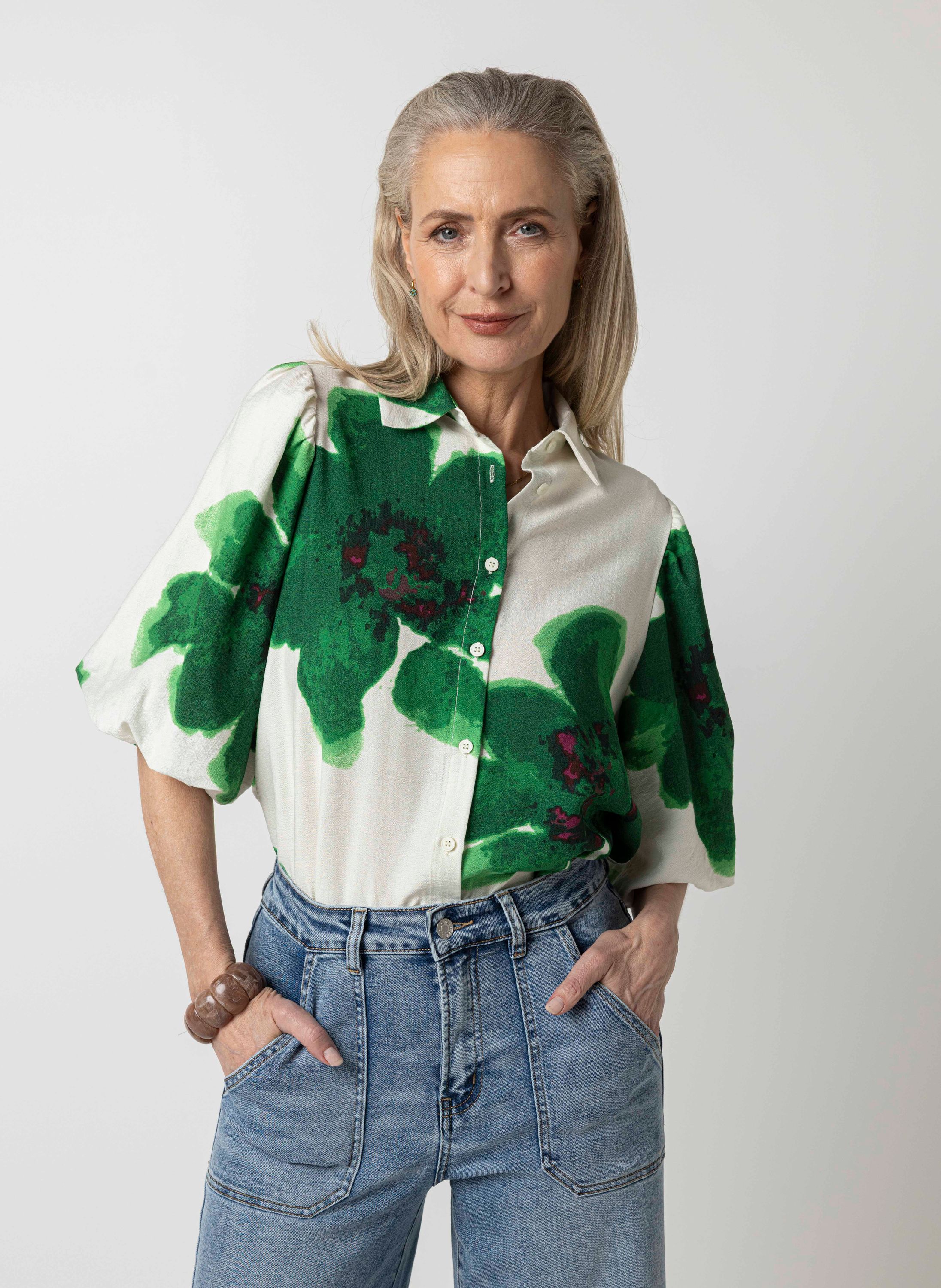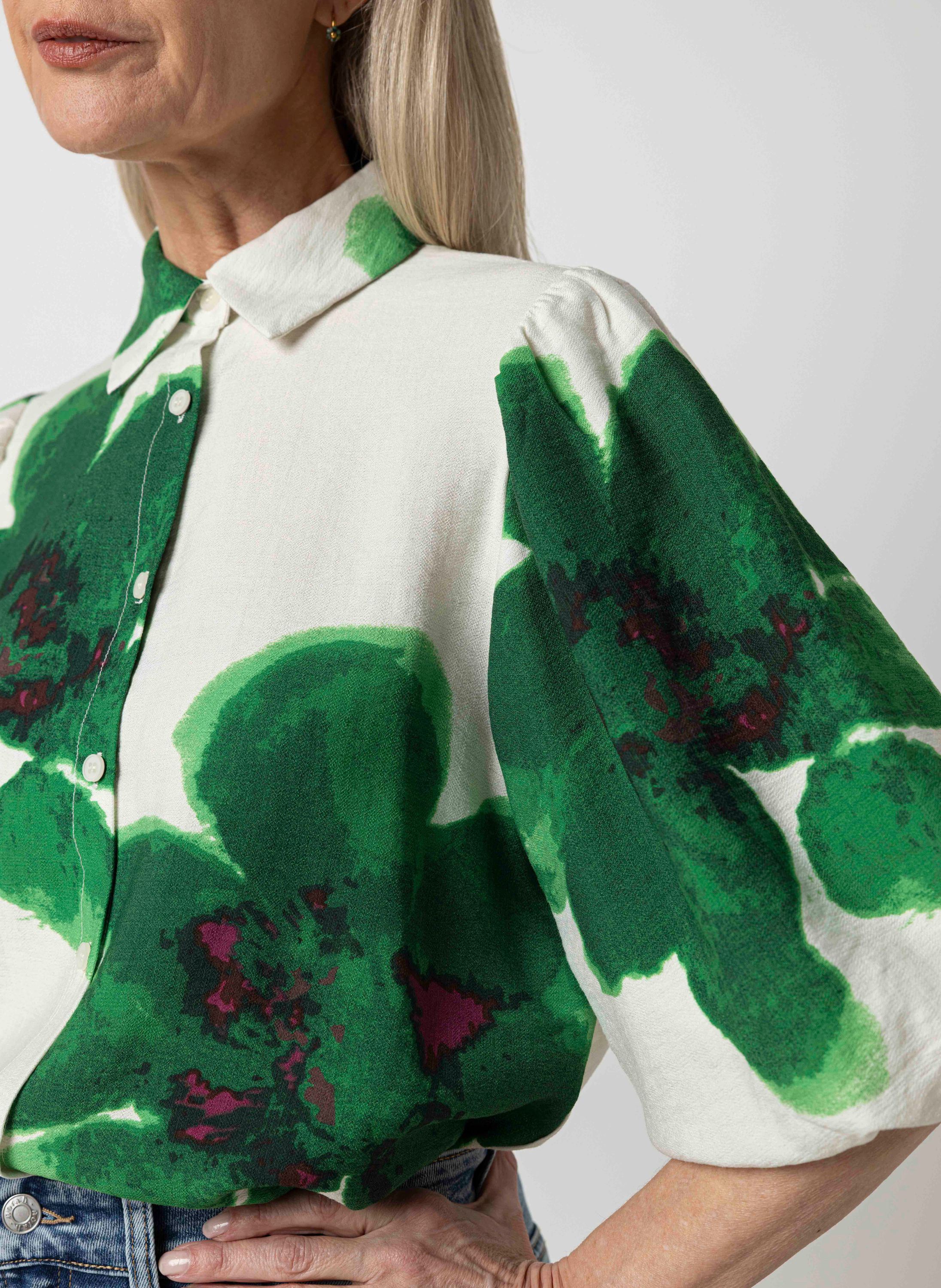 Groene blouse met botanische print