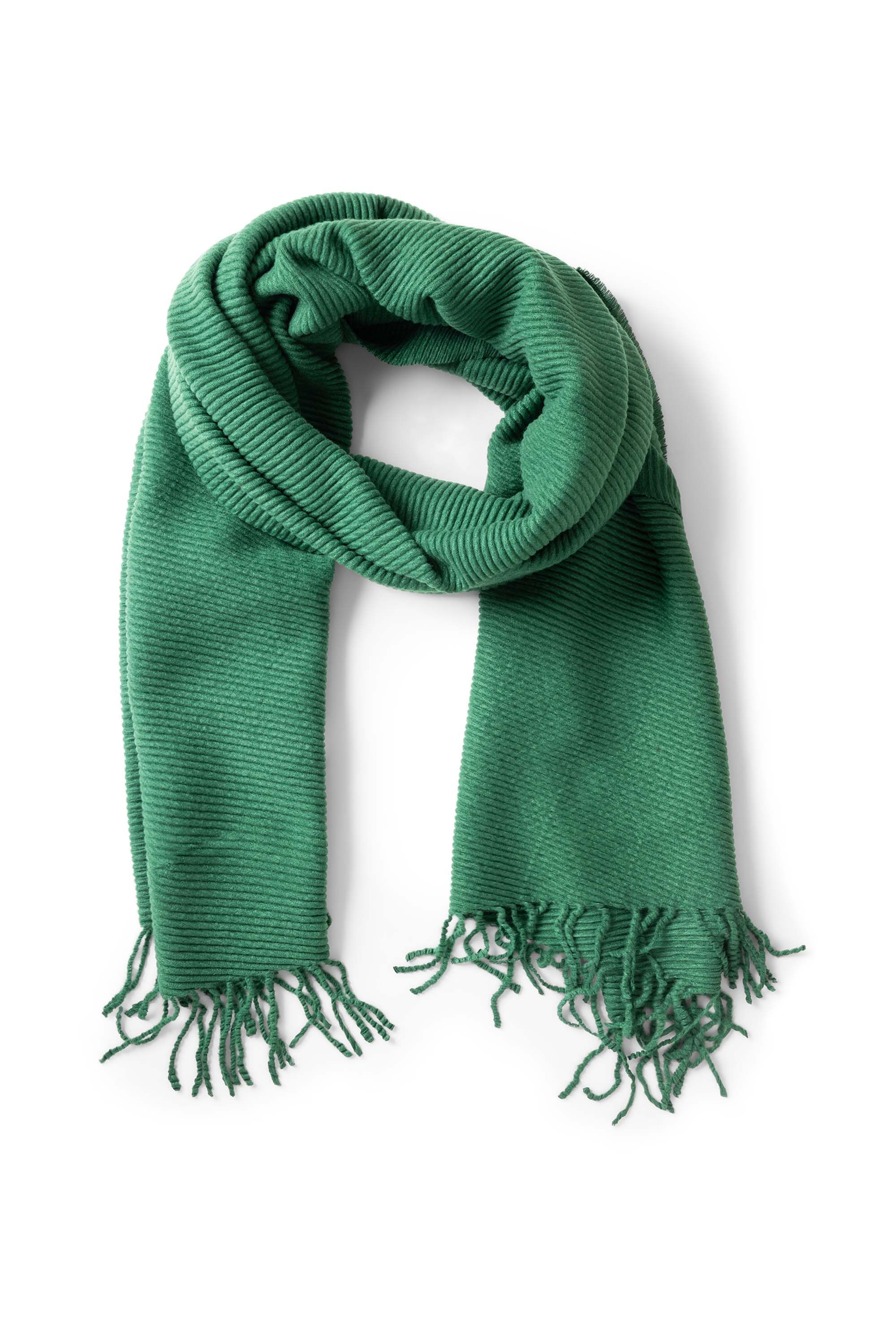 Deze gebreide zachte sjaal met franjes is een warm laagje voor frisse dagen.