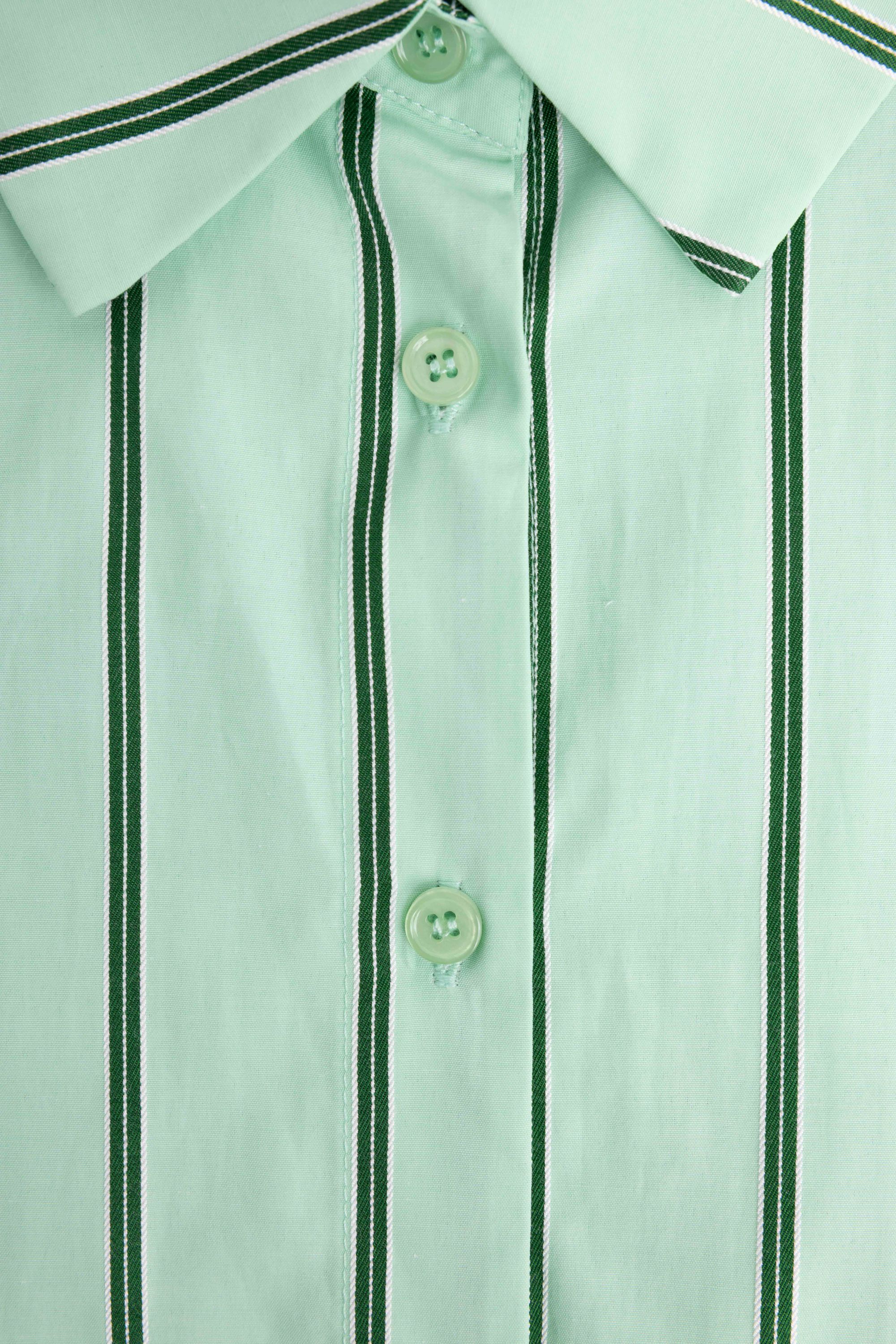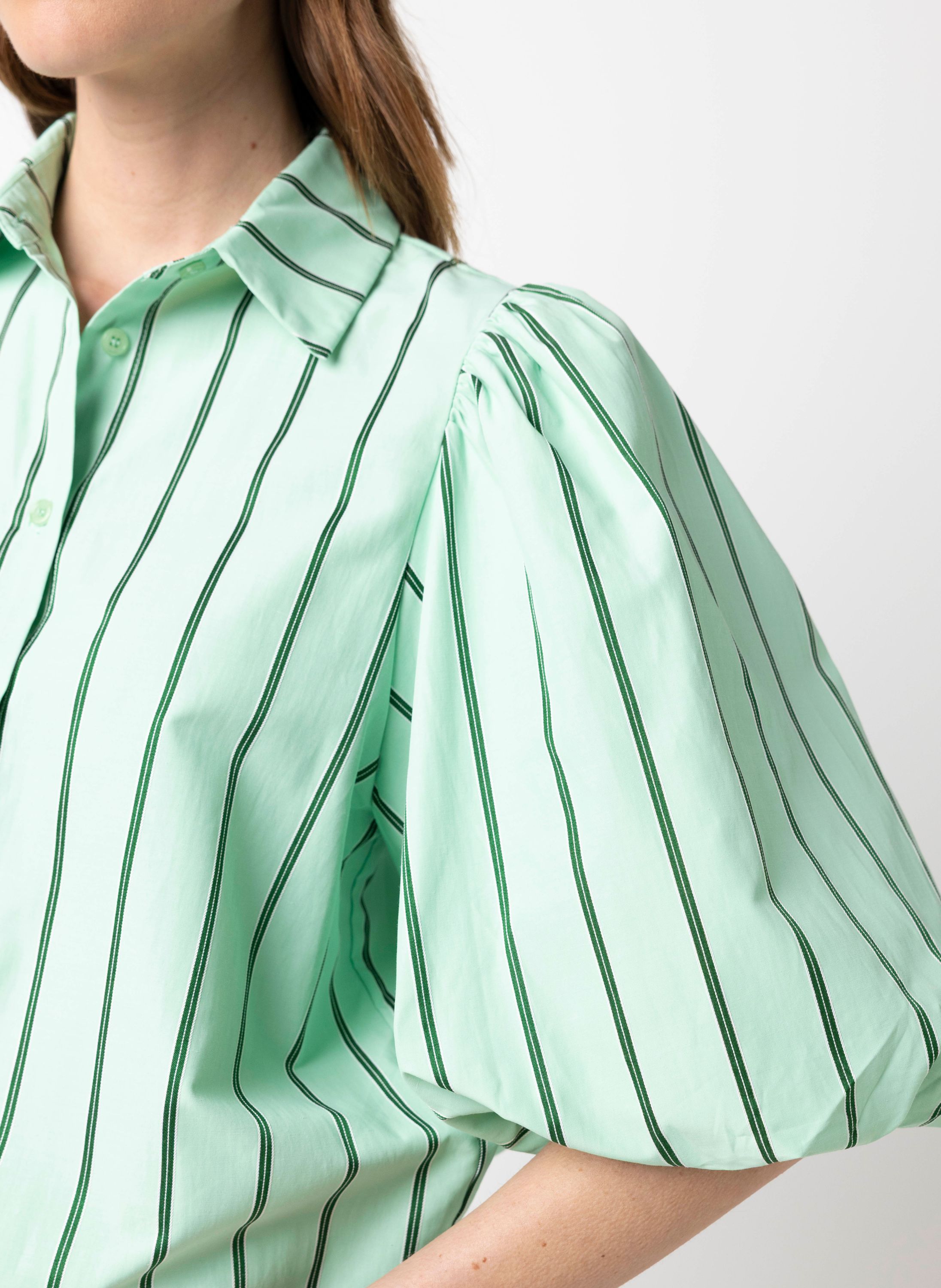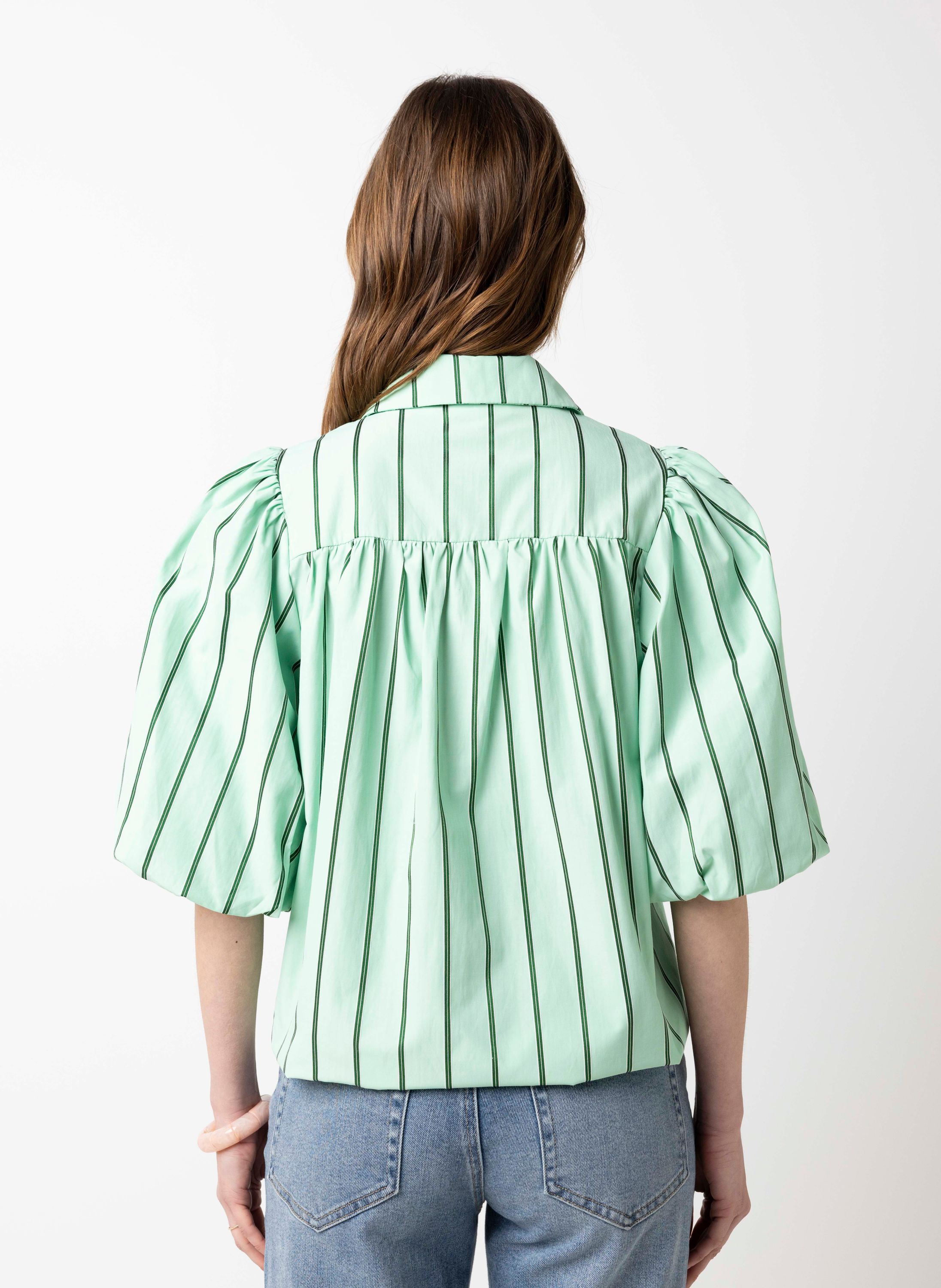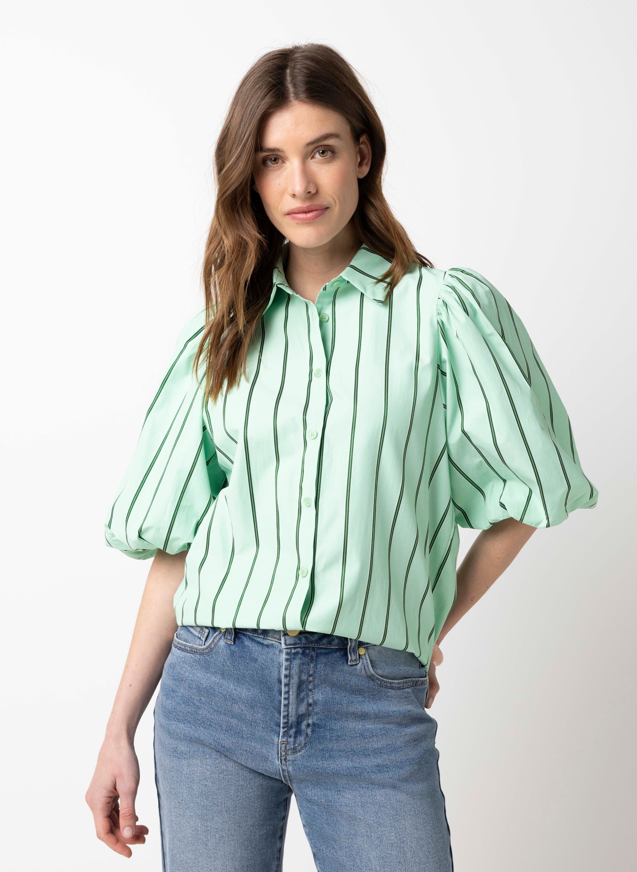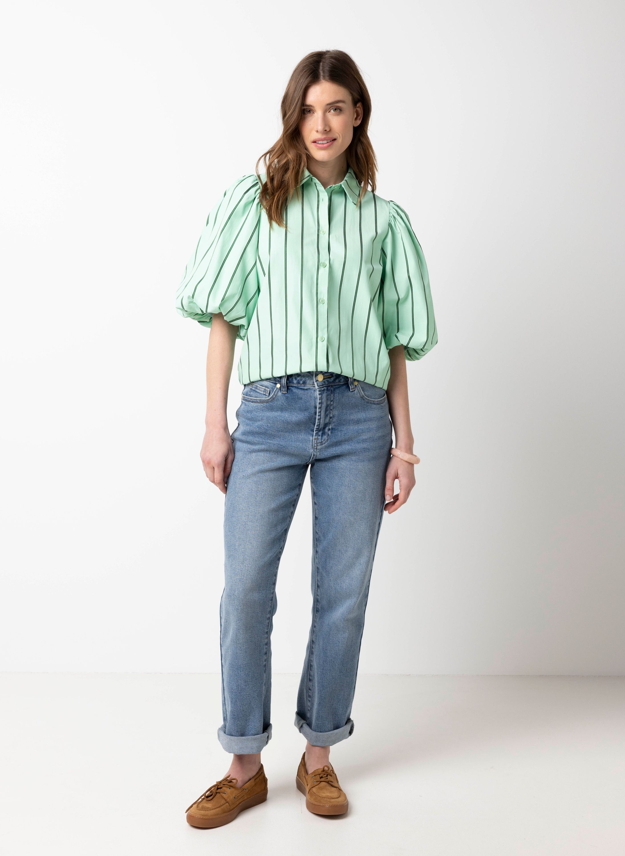 Deze blouse met klassieke kraag, knoopsluiting en halflange pofmouwen is een tijdloos item.