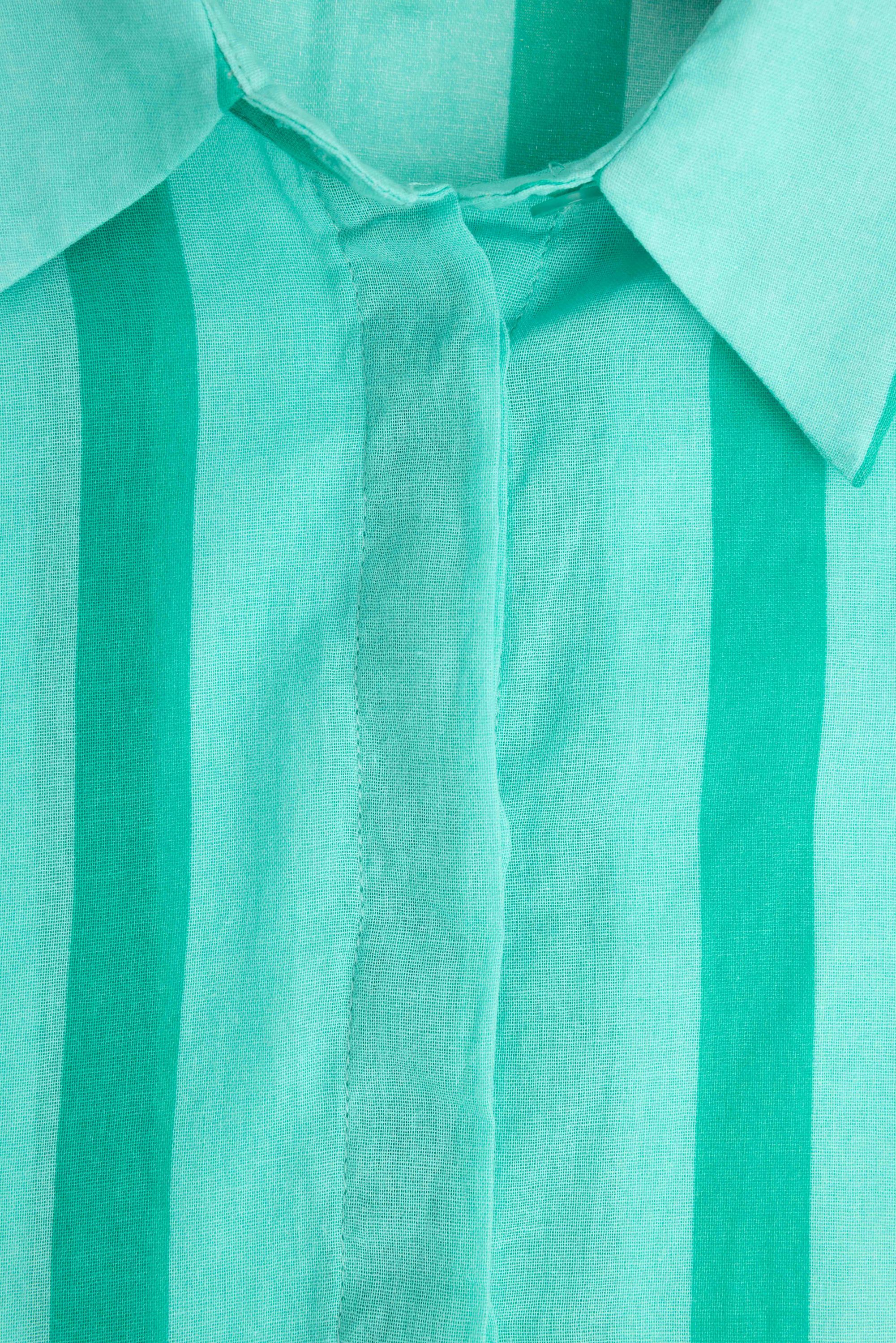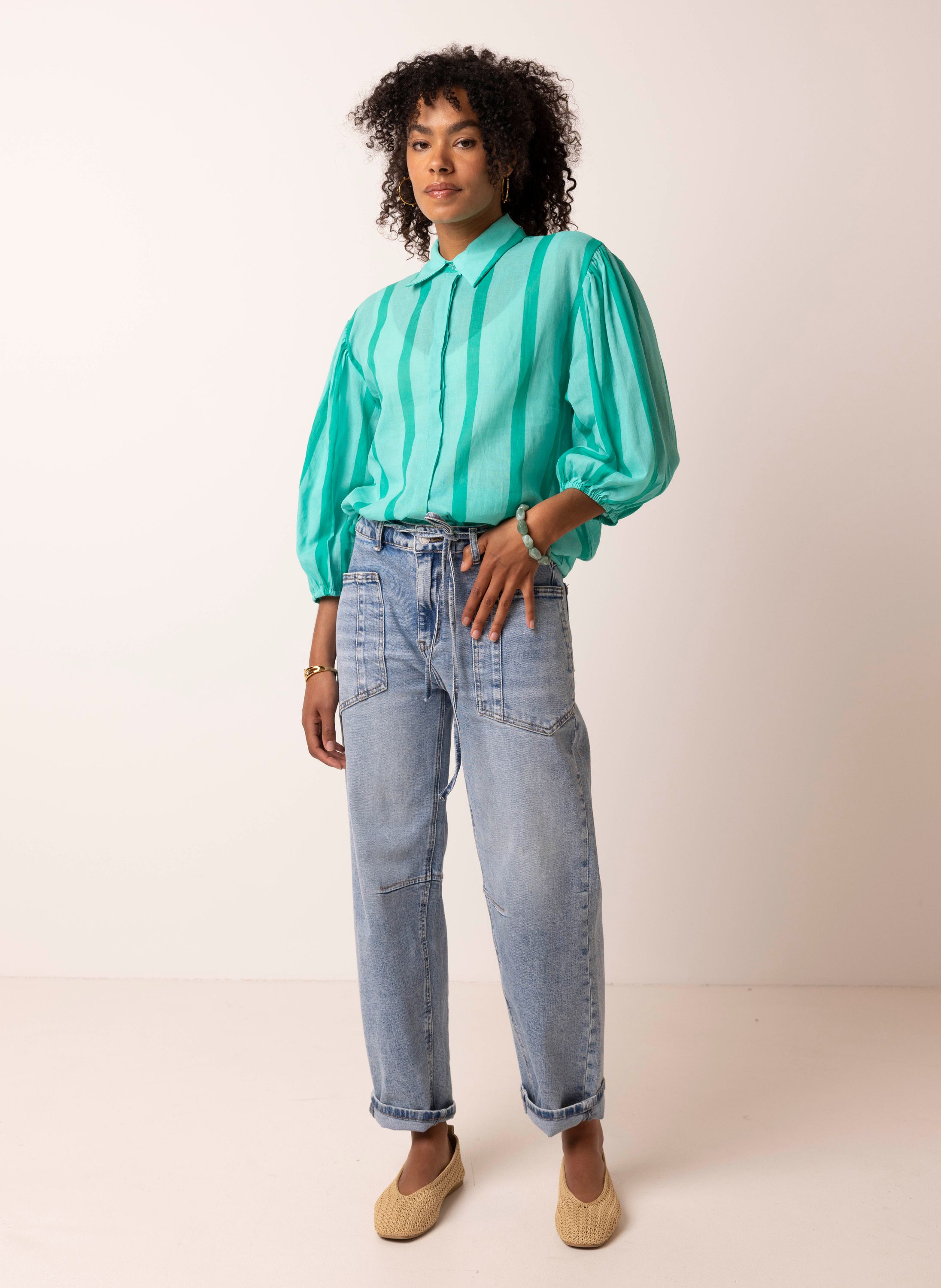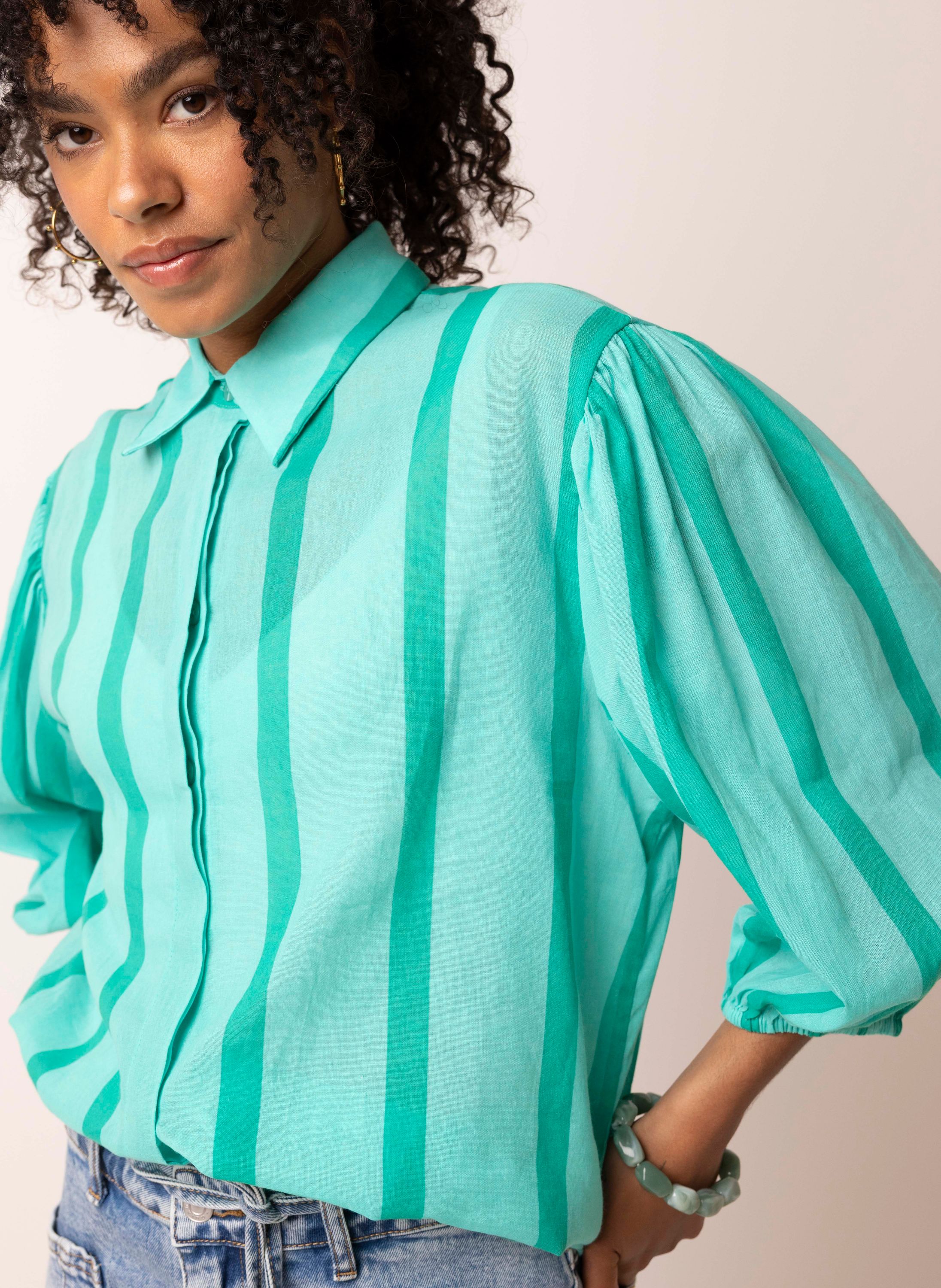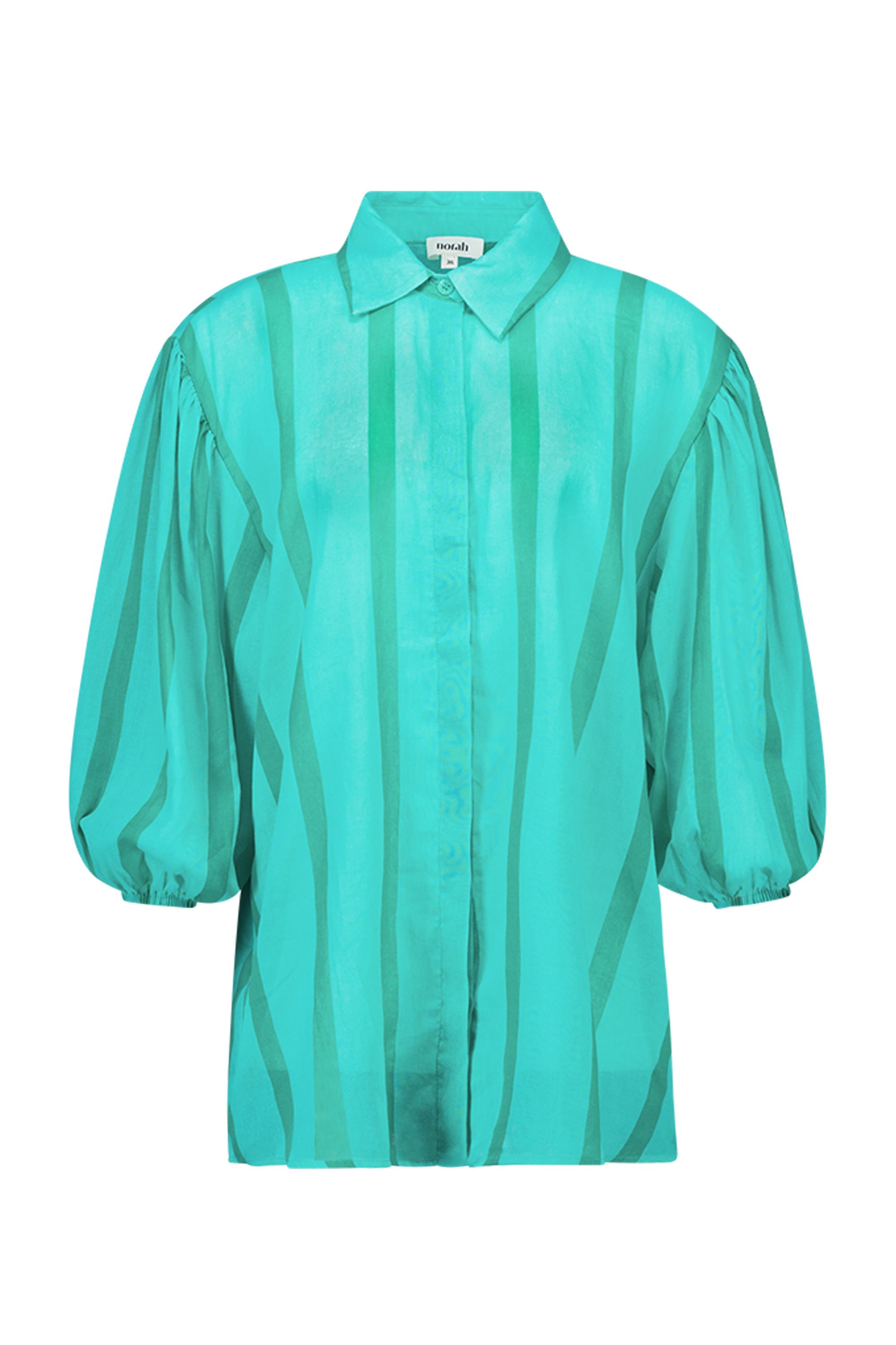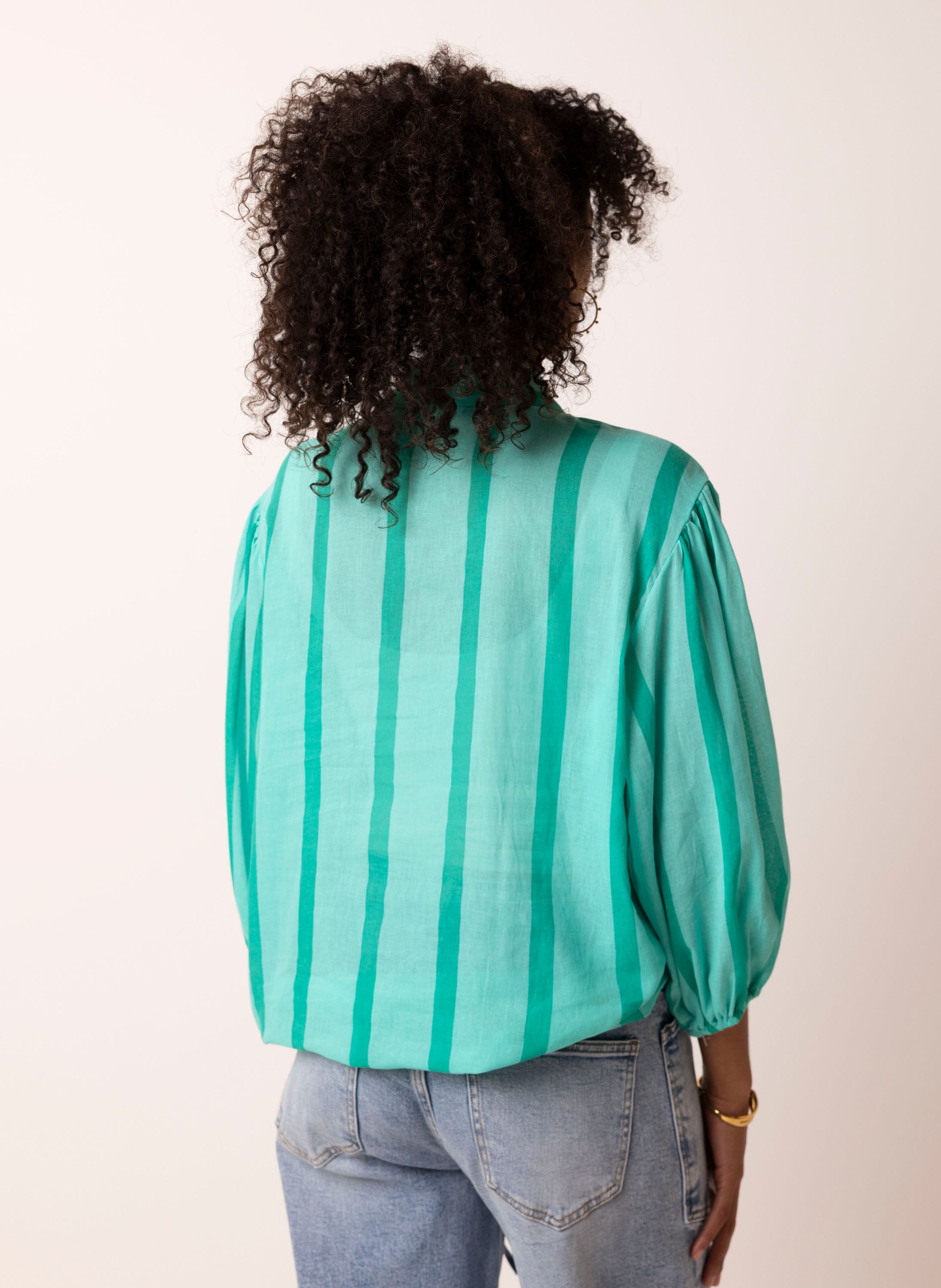 Deze katoenen blouse met klassieke kraag, knoopsluiting en driekwart pofmouwen heeft een vrouwelijke uitstraling.